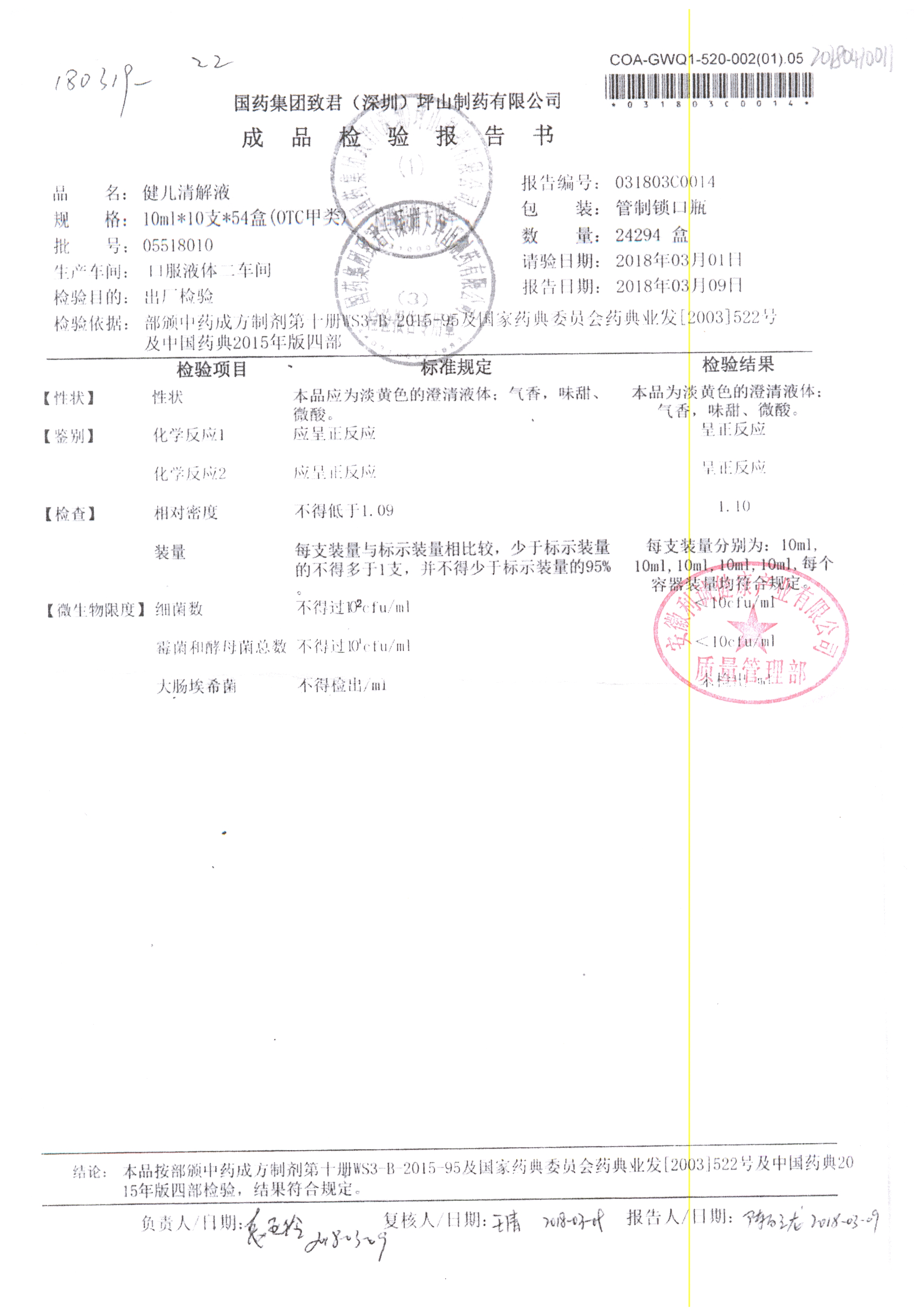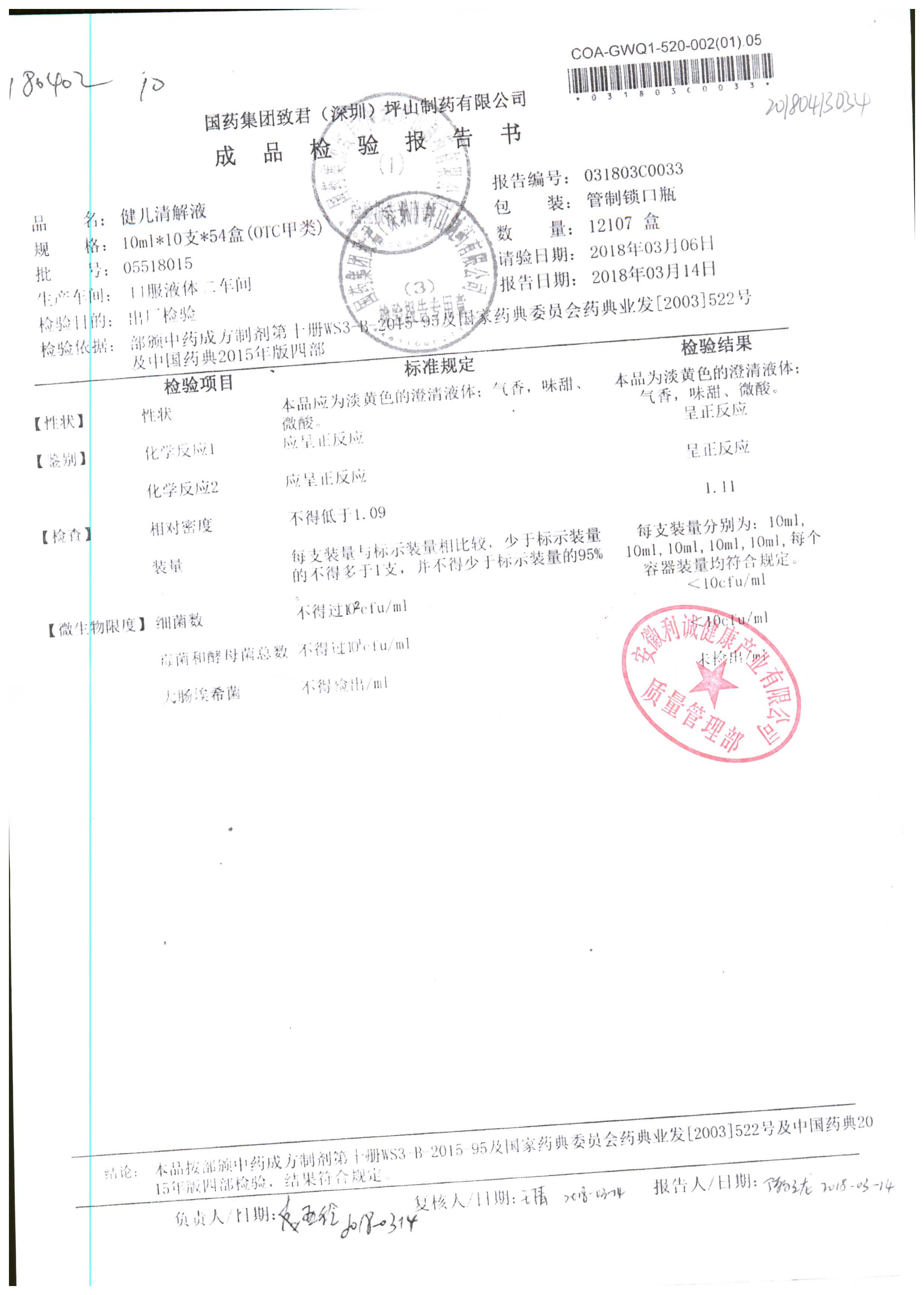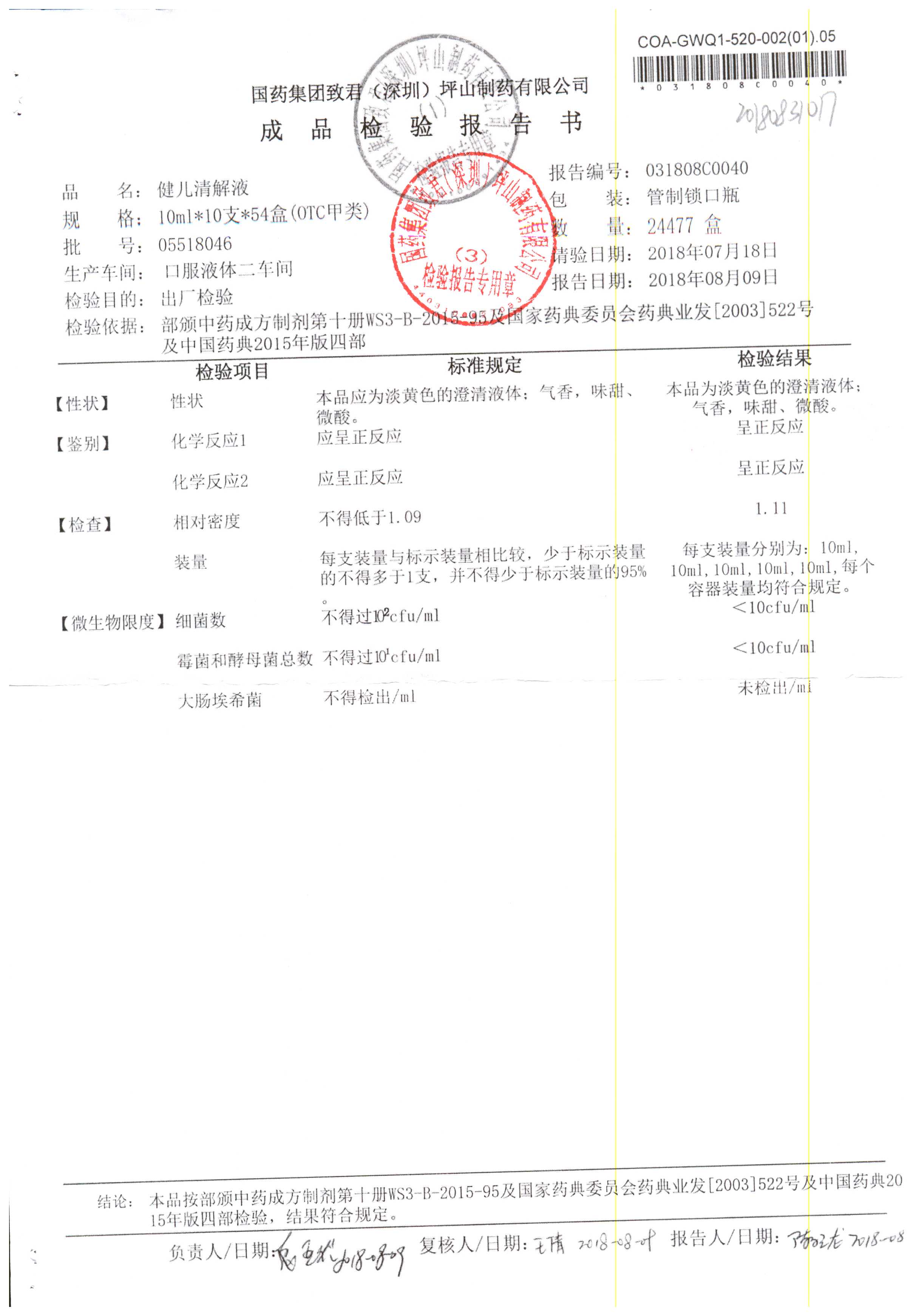| 名稱 | 規(guī)格 | 批號 | 藥檢報(bào)告 |