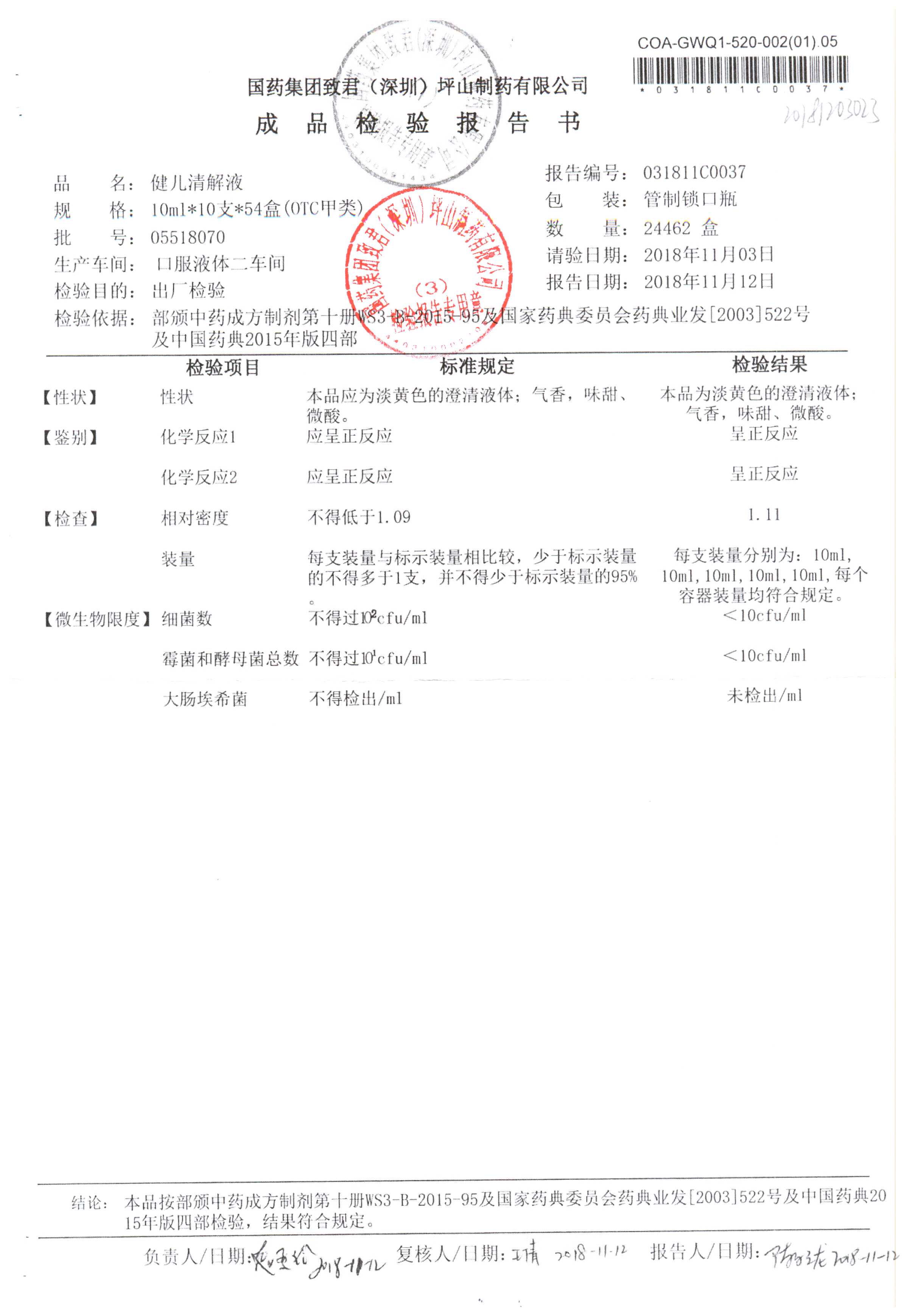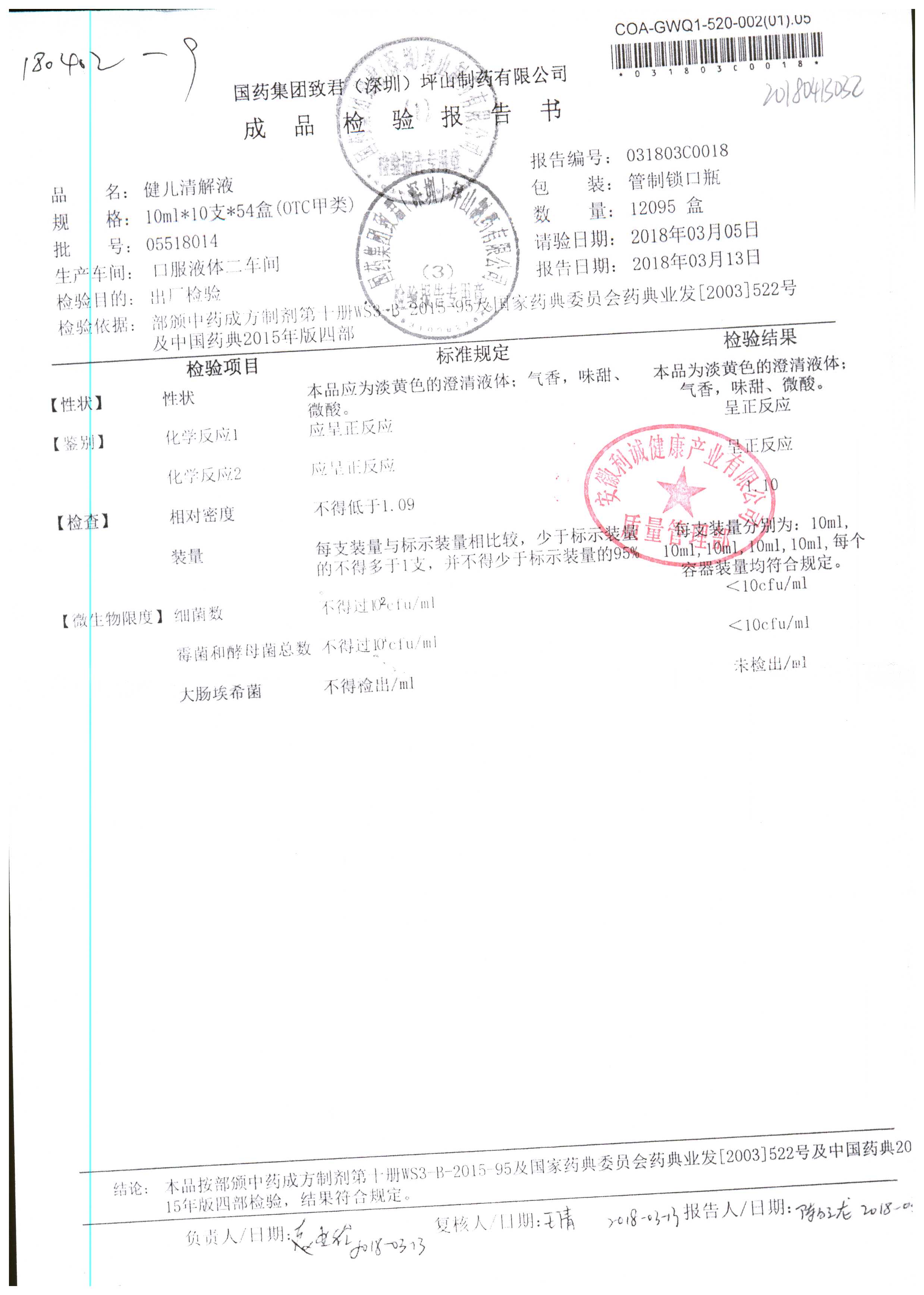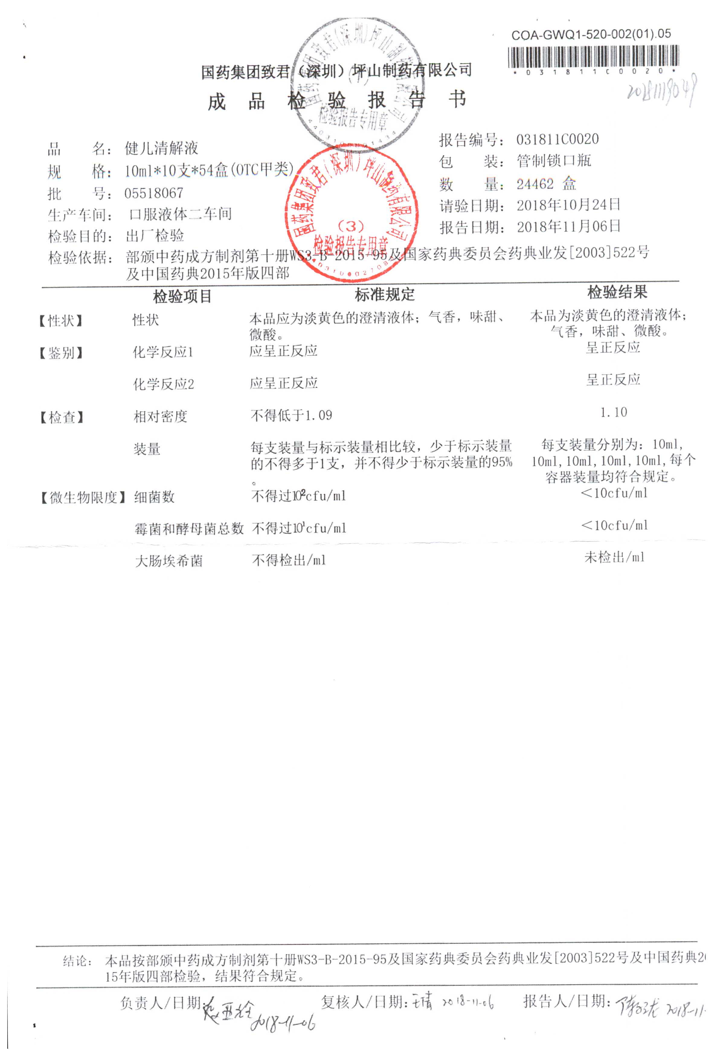 | 名稱 | 規(guī)格 | 批號 | 藥檢報(bào)告 |