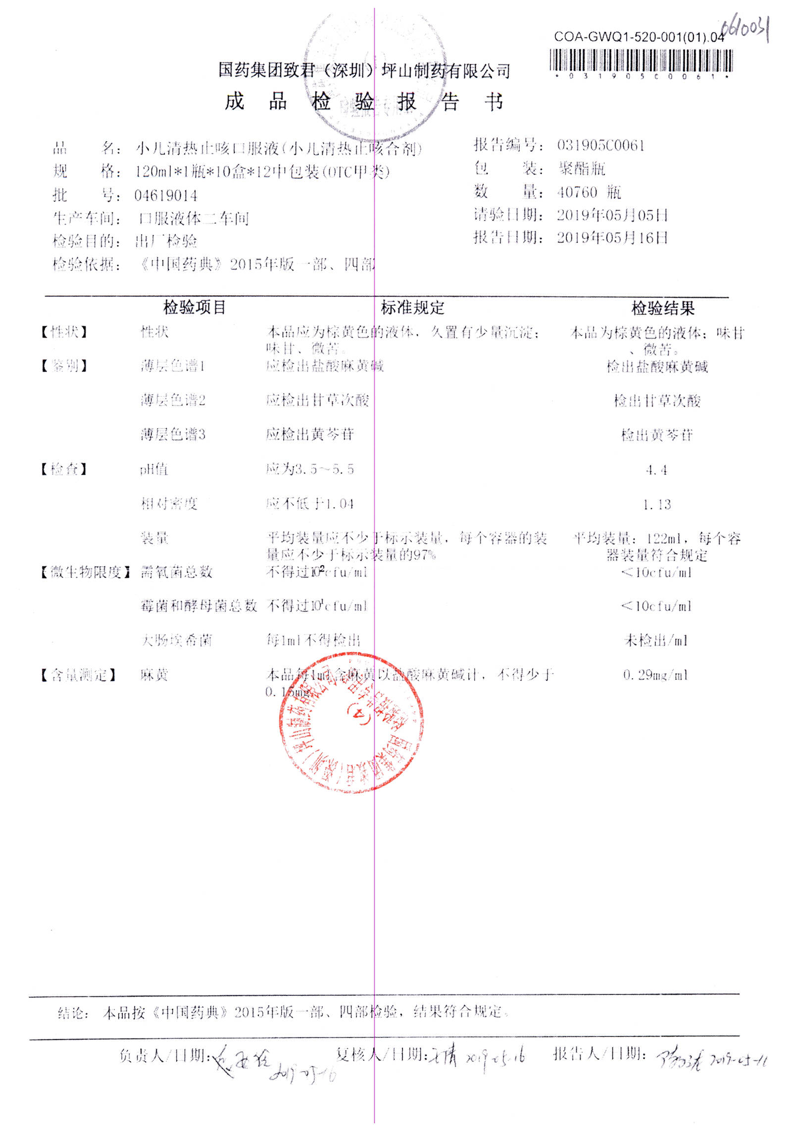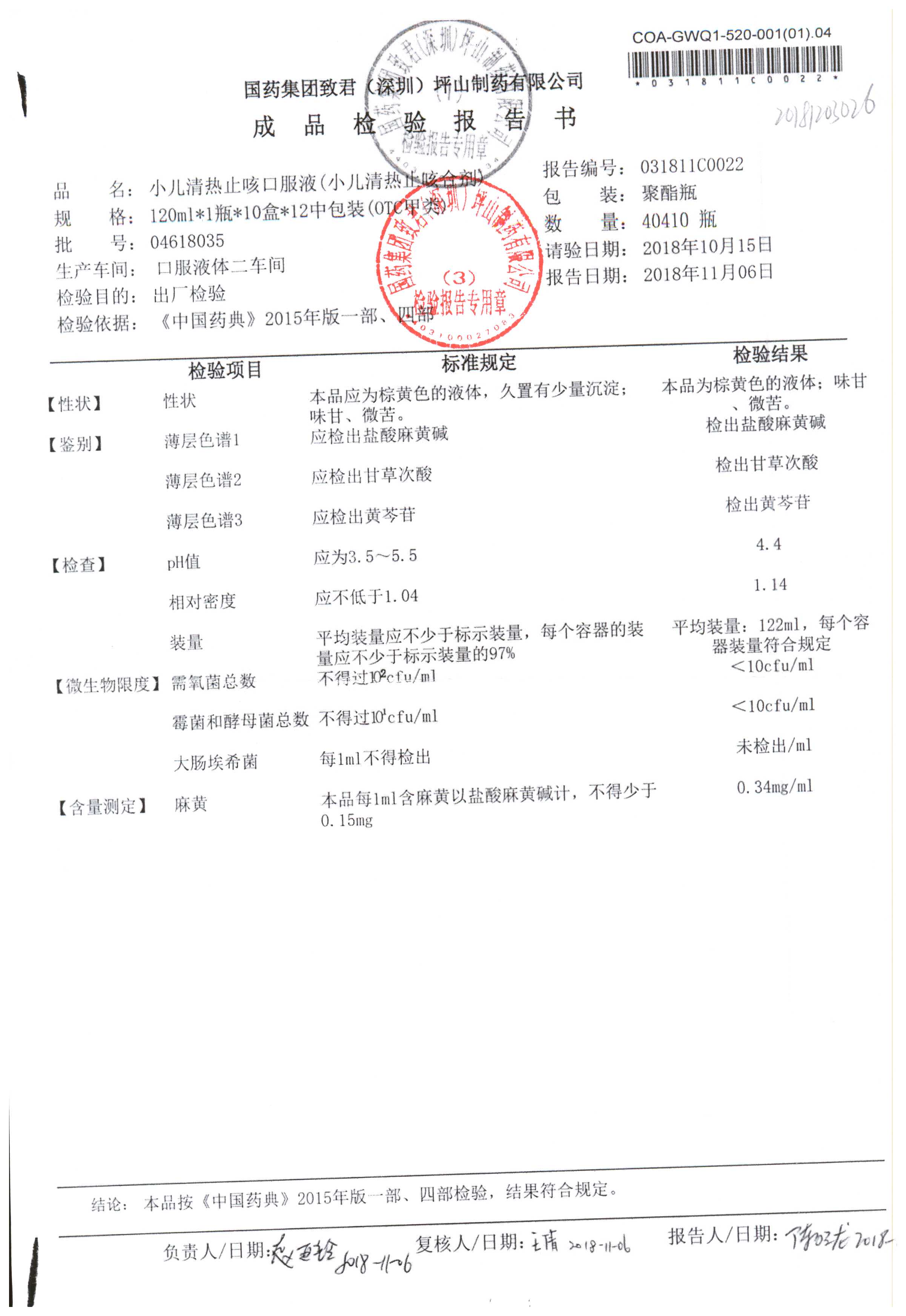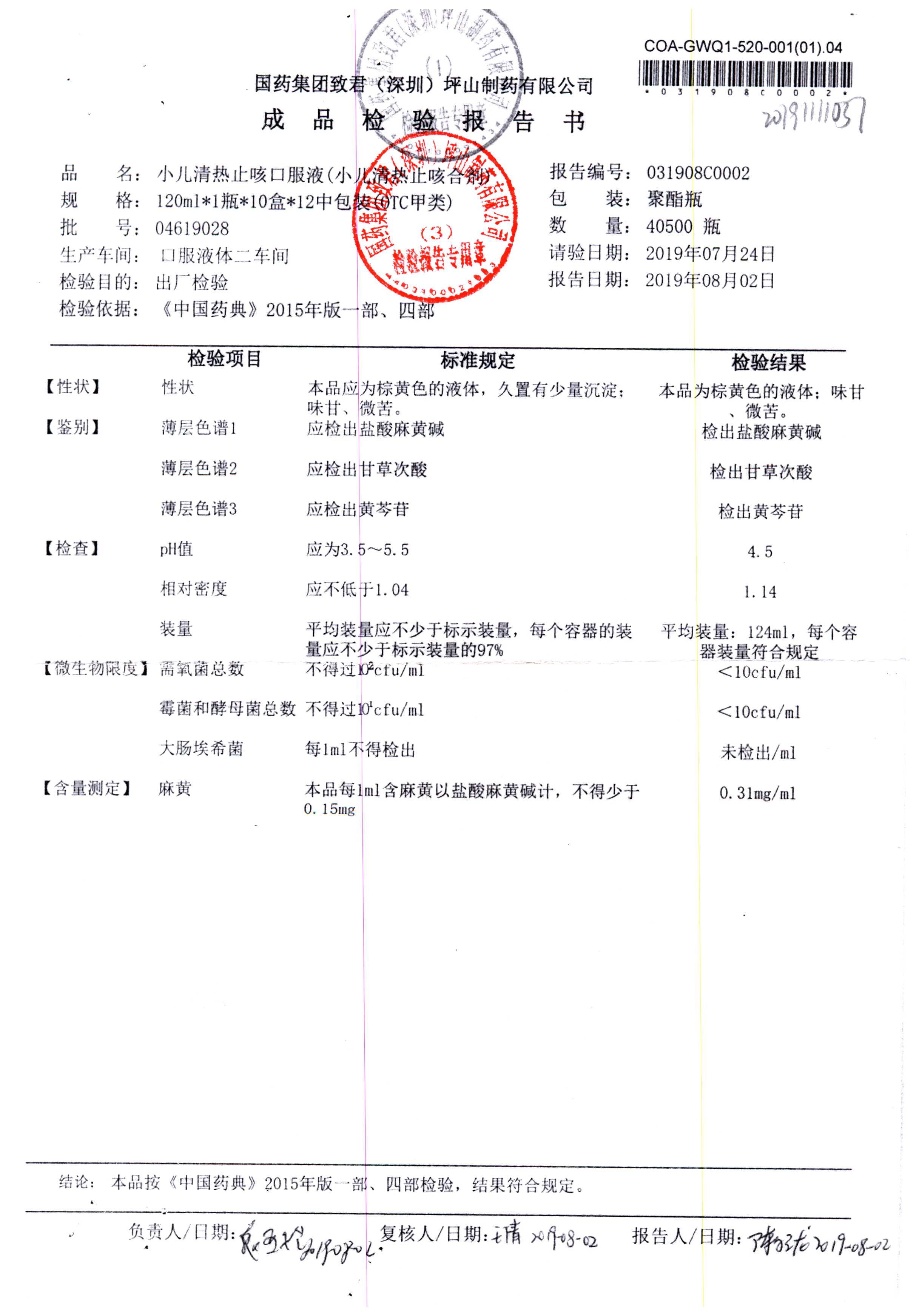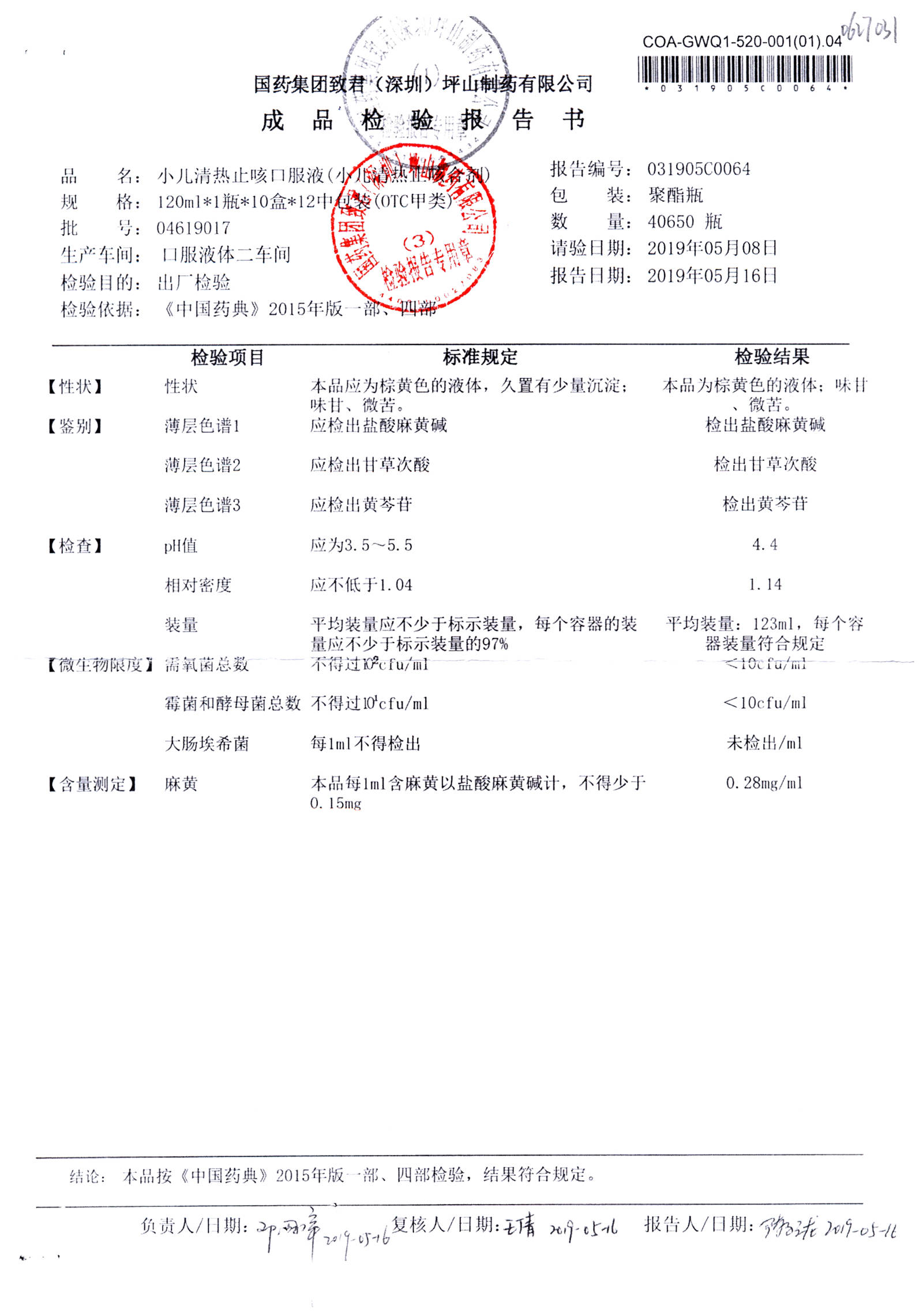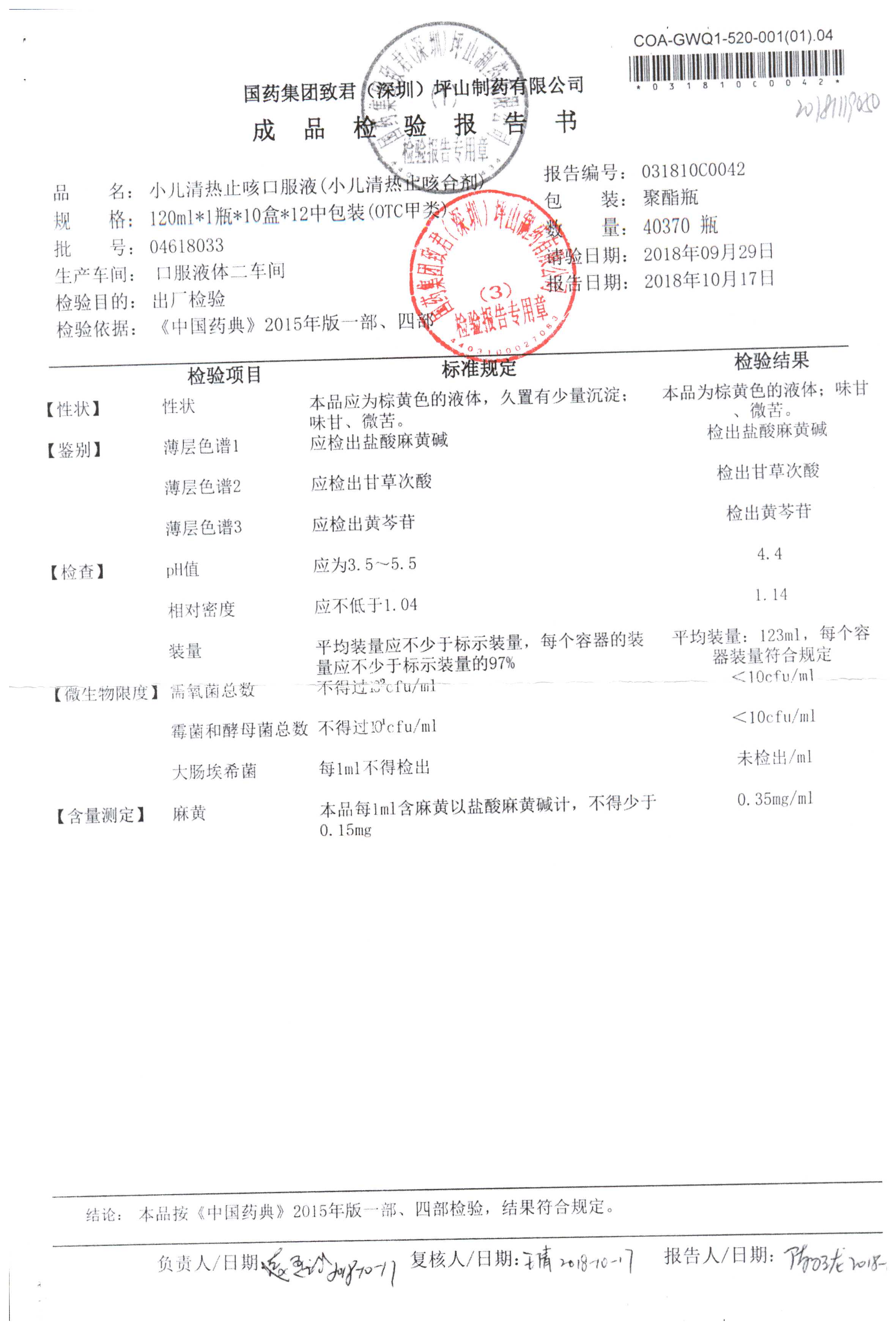 | 小兒清熱止咳口服液 | 120ml | 04618036 | 查看詳情 |