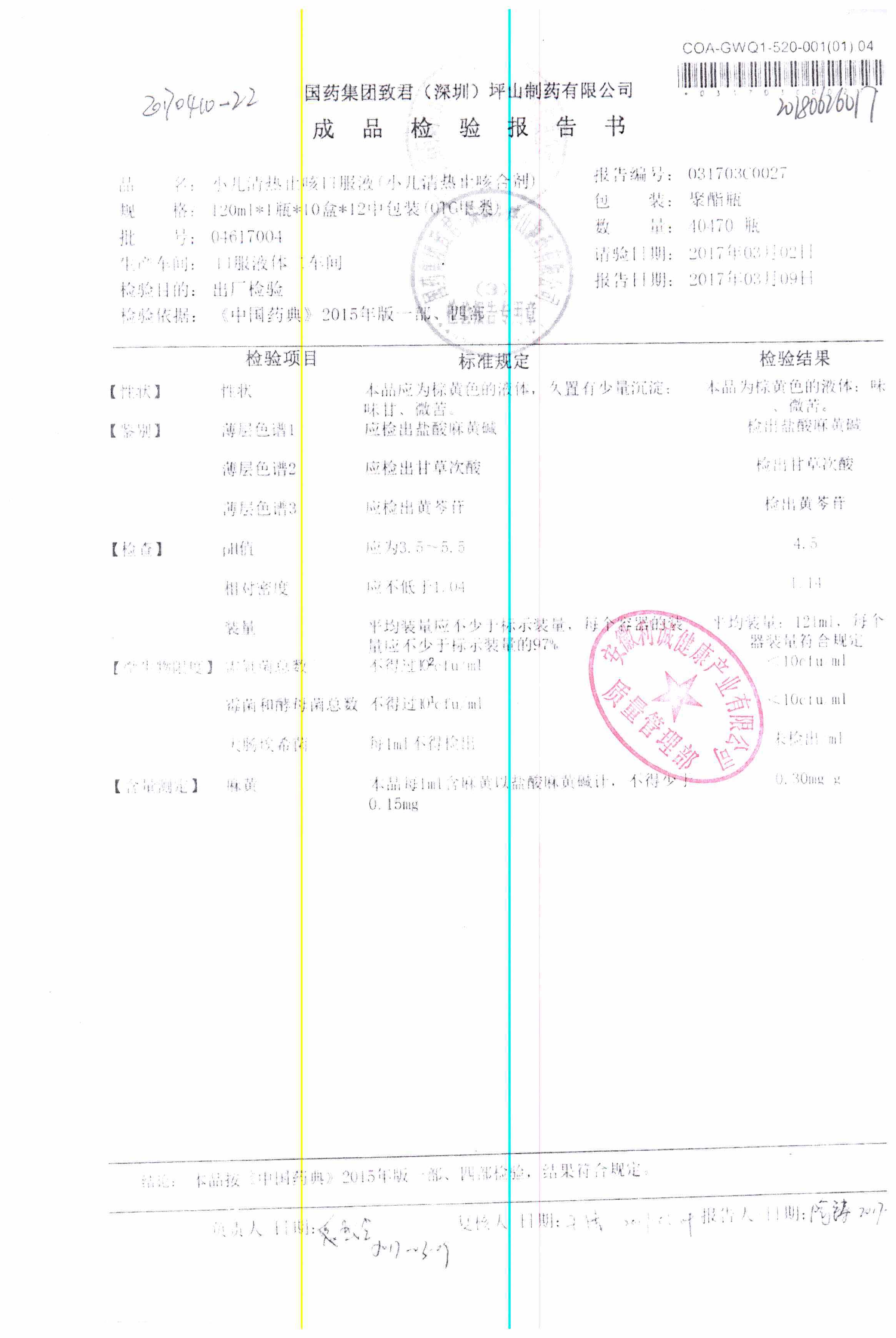 | 小兒清熱止咳口服液 | 120ml | 04618033 | 查看詳情 |