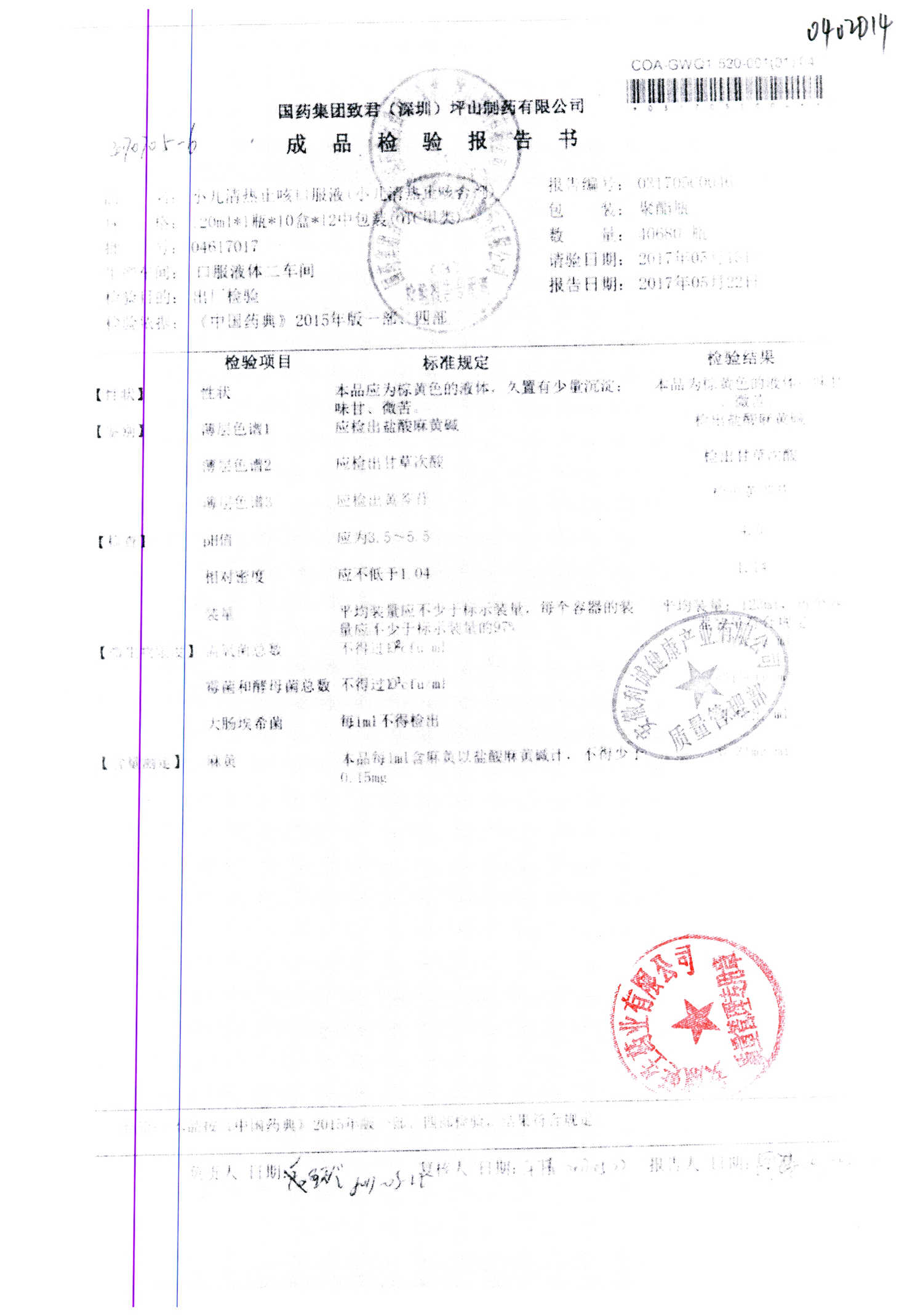 | 小兒清熱止咳口服液 | 120ml | 04618035 | 查看詳情 |