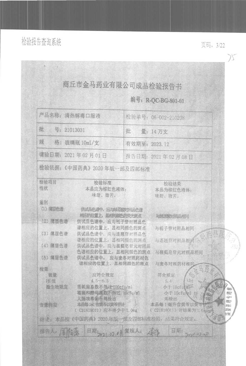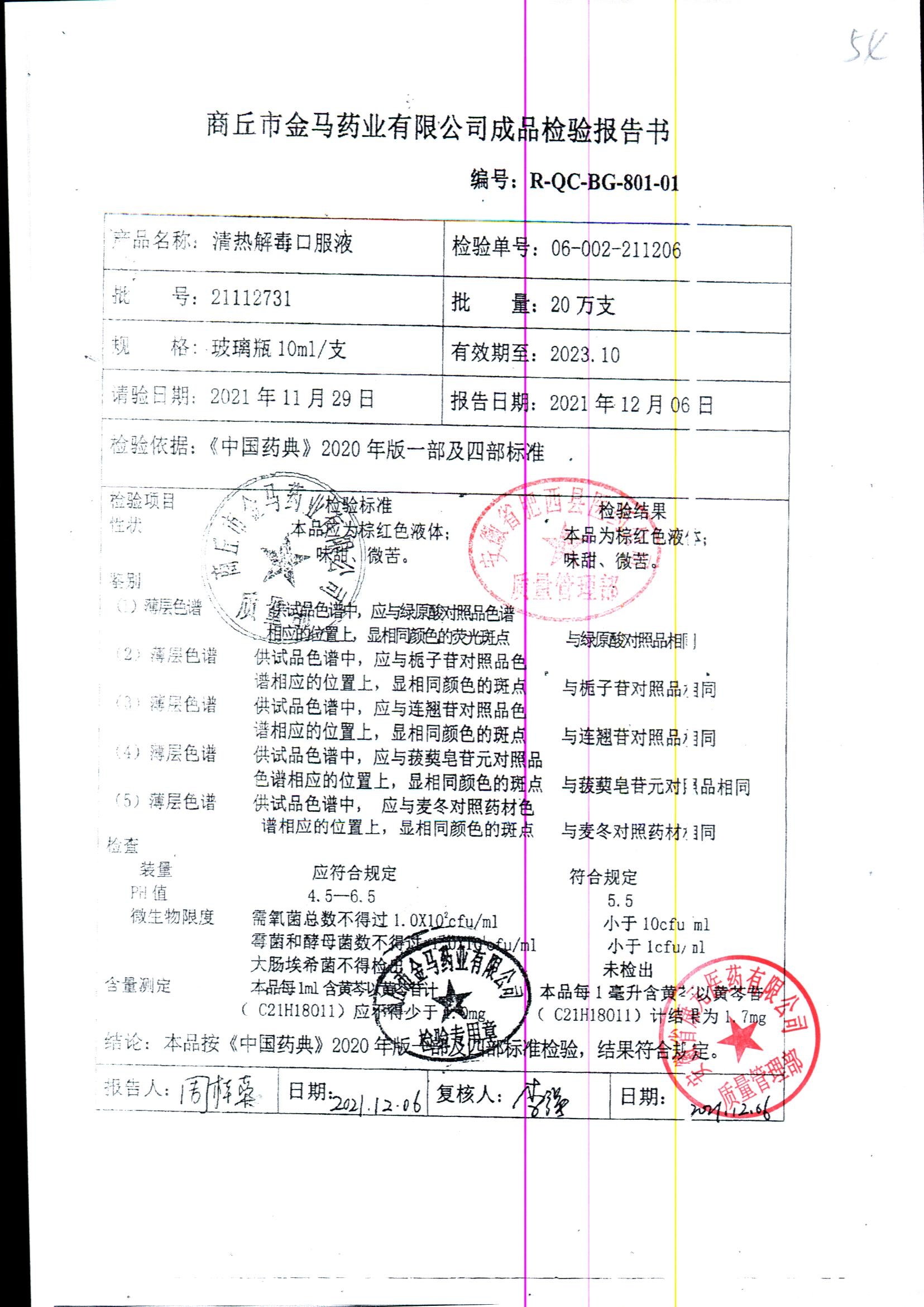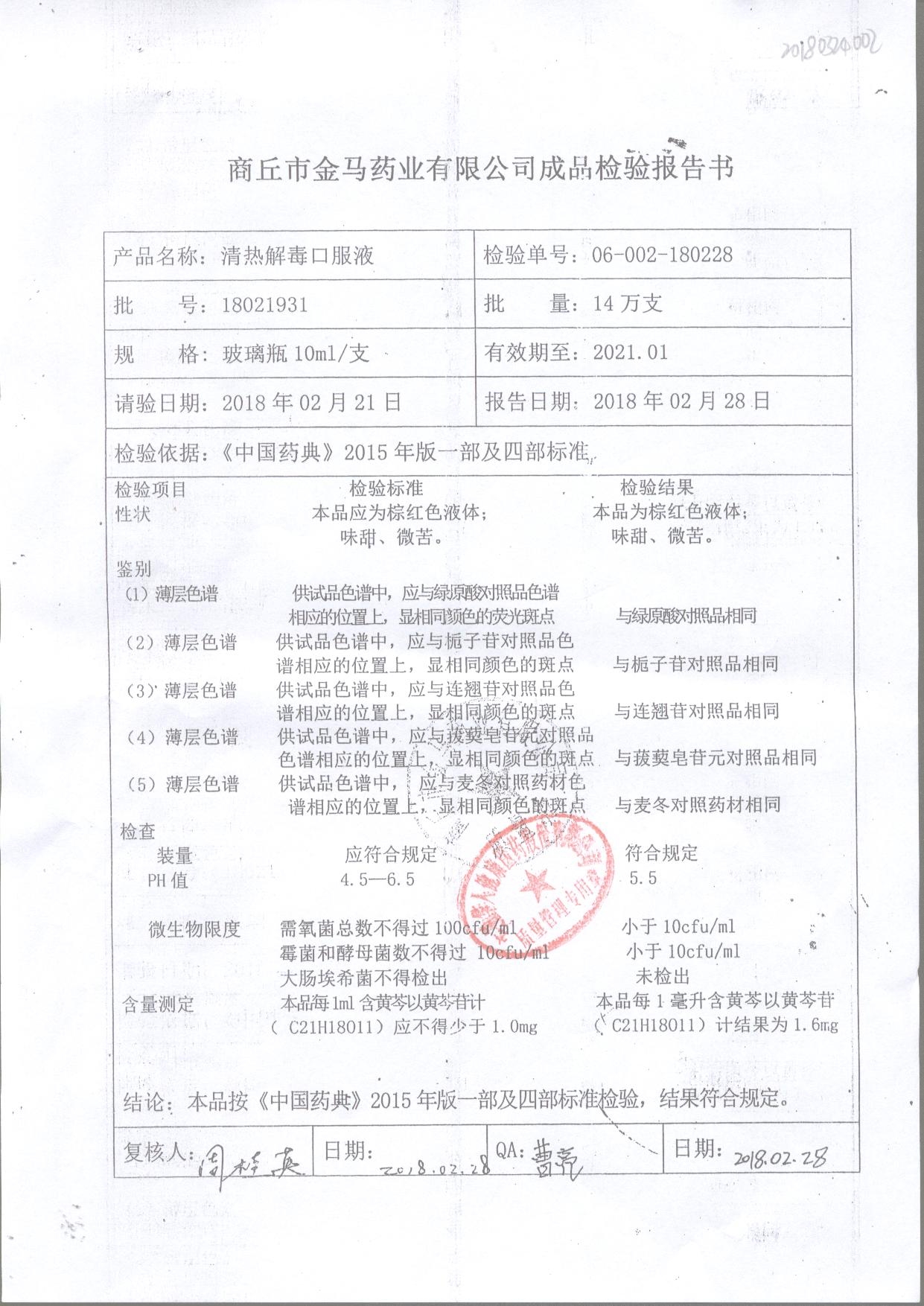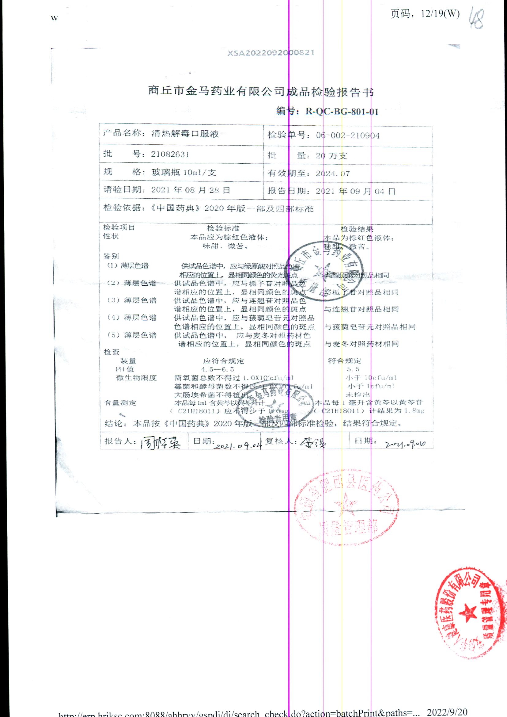 | 清熱解毒口服液 | 10ml | 21051231 | 查看詳情 |