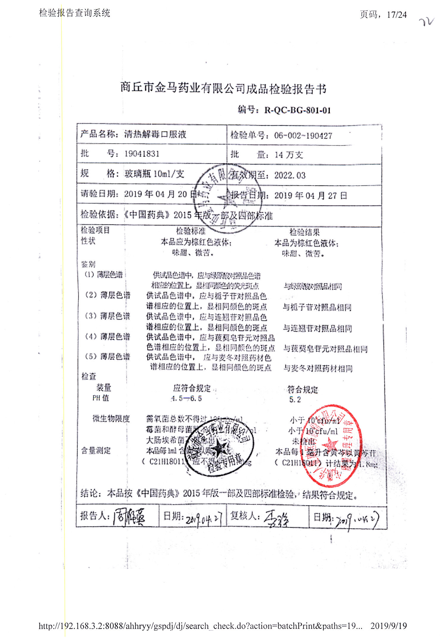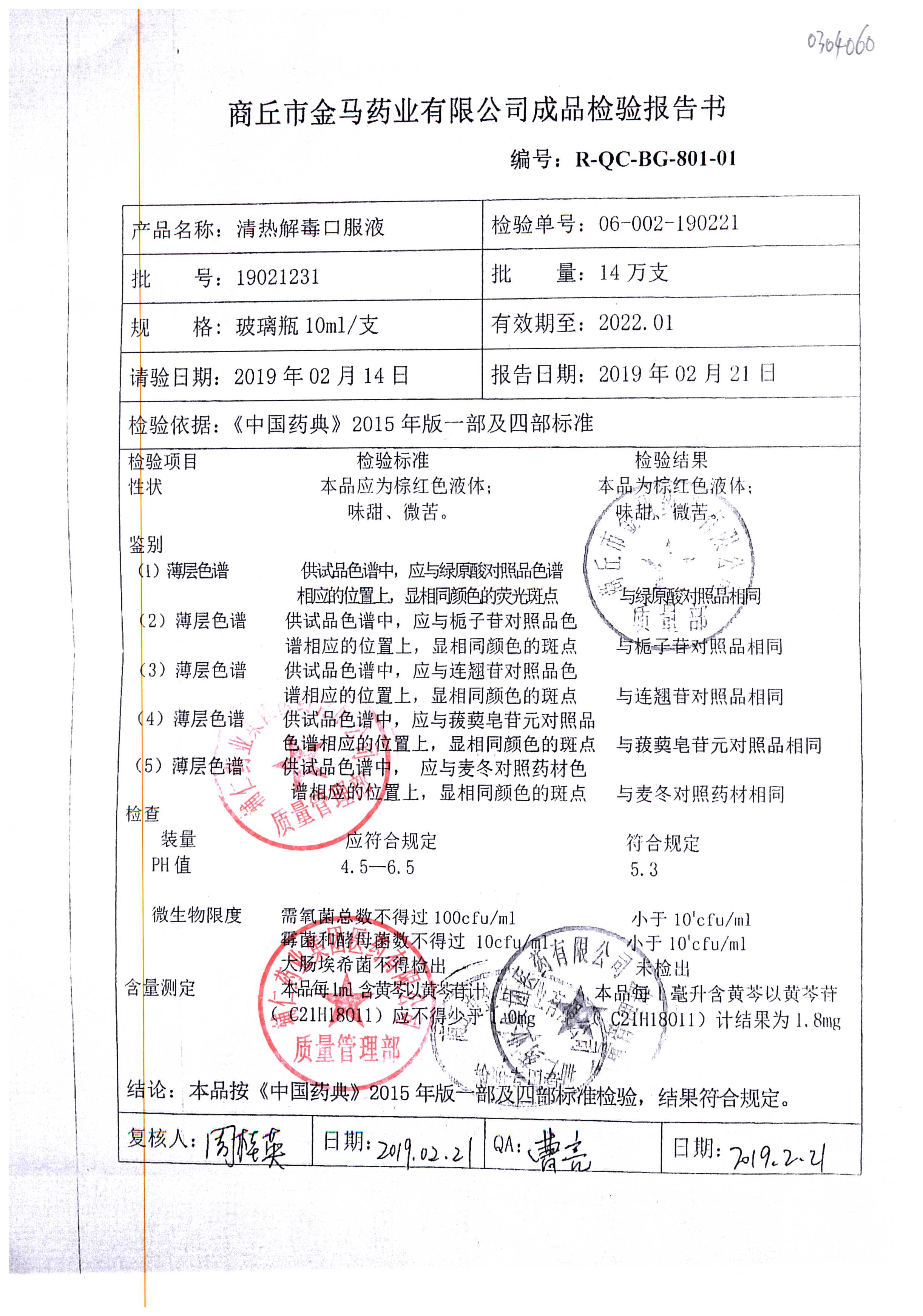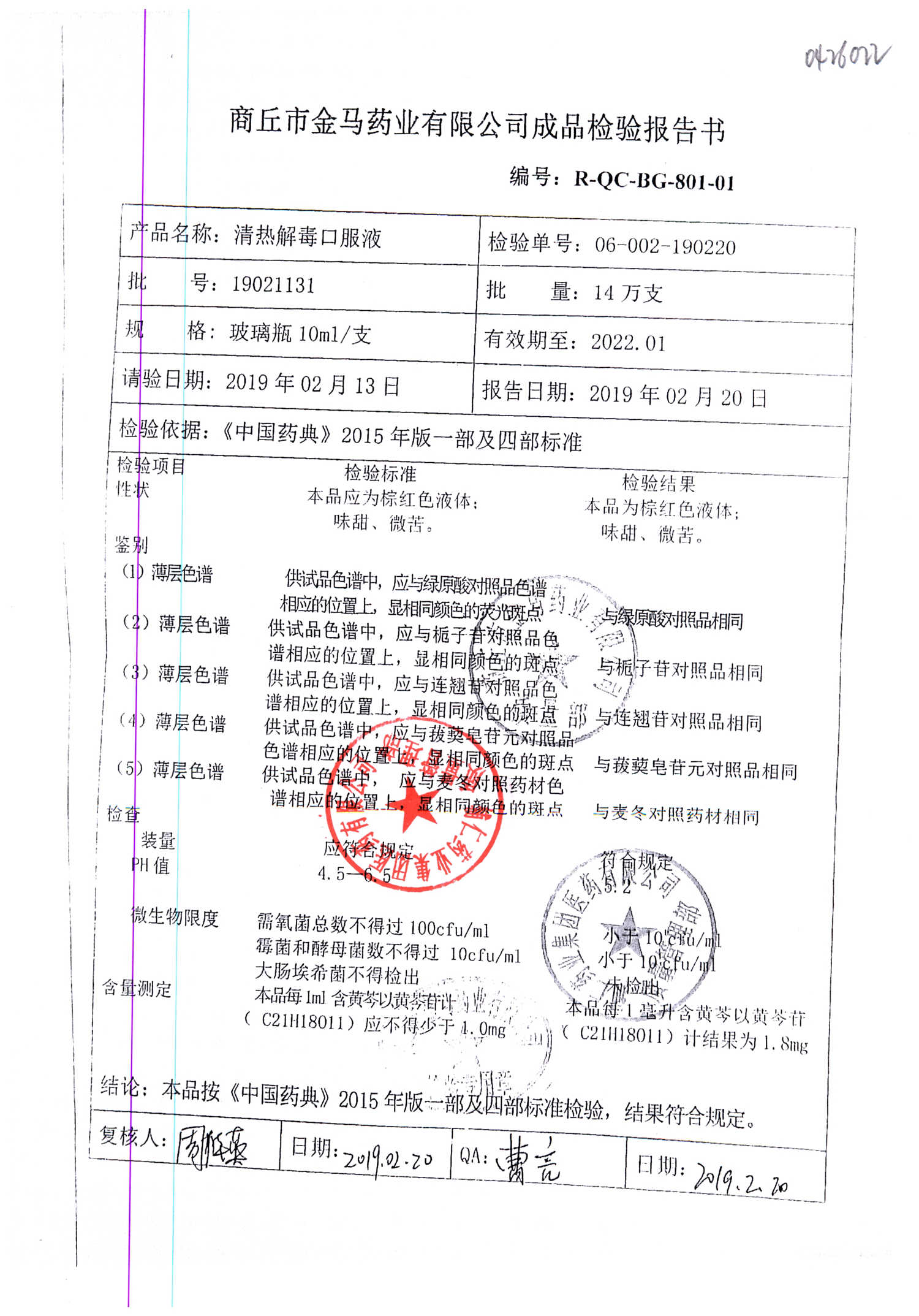 | 清熱解毒口服液 | 10ml | 19021231 | 查看詳情 |
