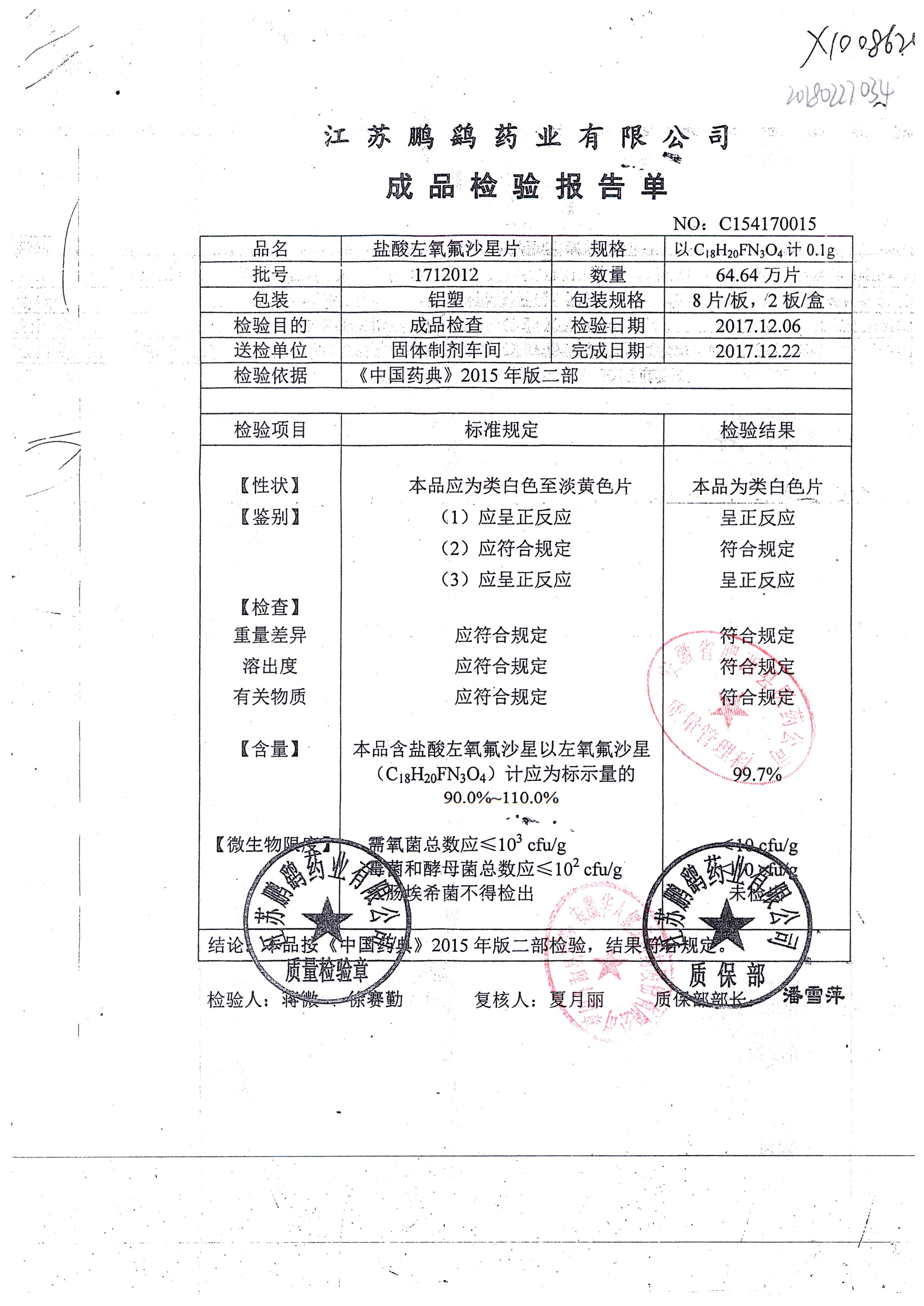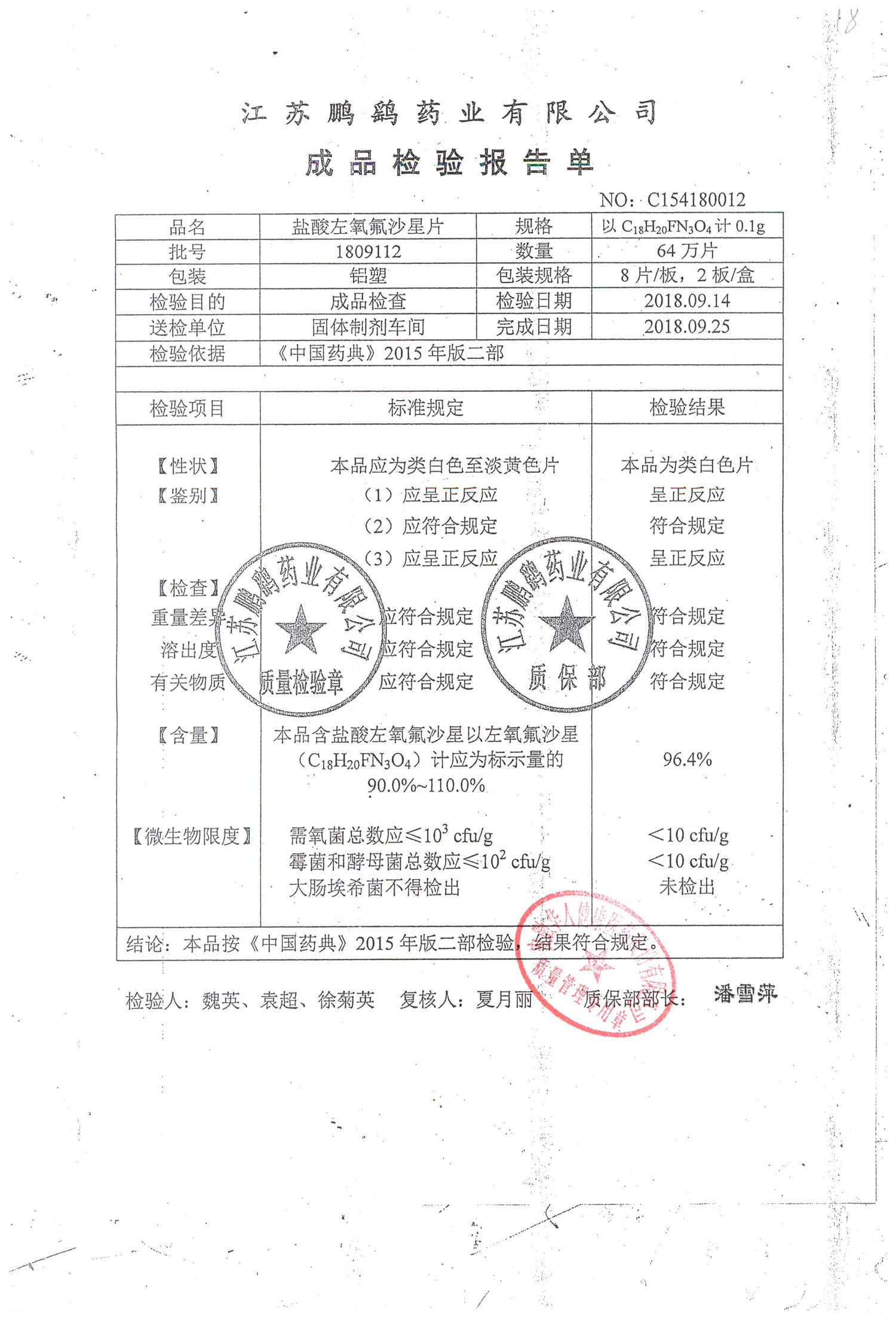 | 鹽酸左氧氟沙星片 | 16s | 1802021 | 查看詳情 |