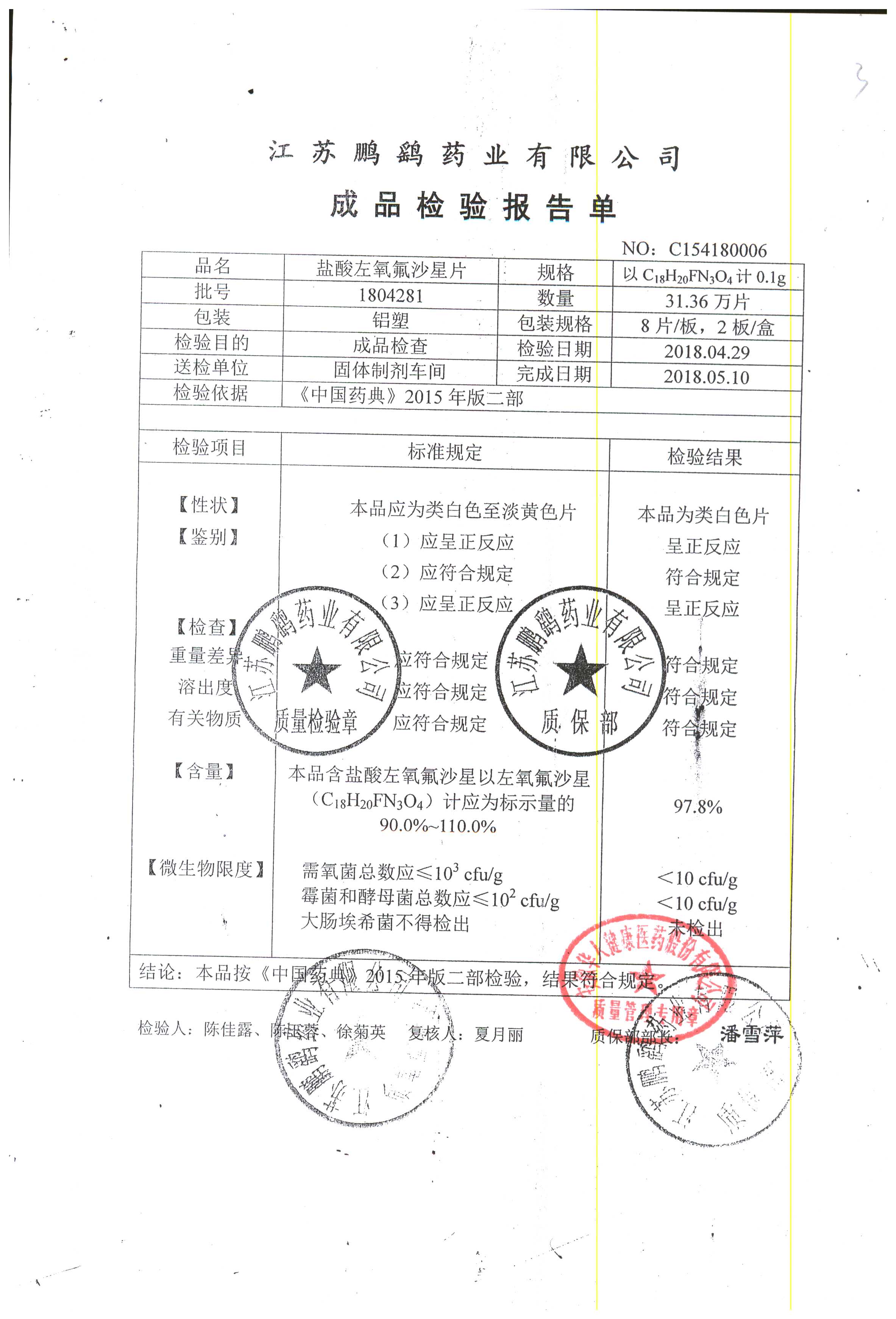 | 鹽酸左氧氟沙星片 | 16s | 1803051 | 查看詳情 |