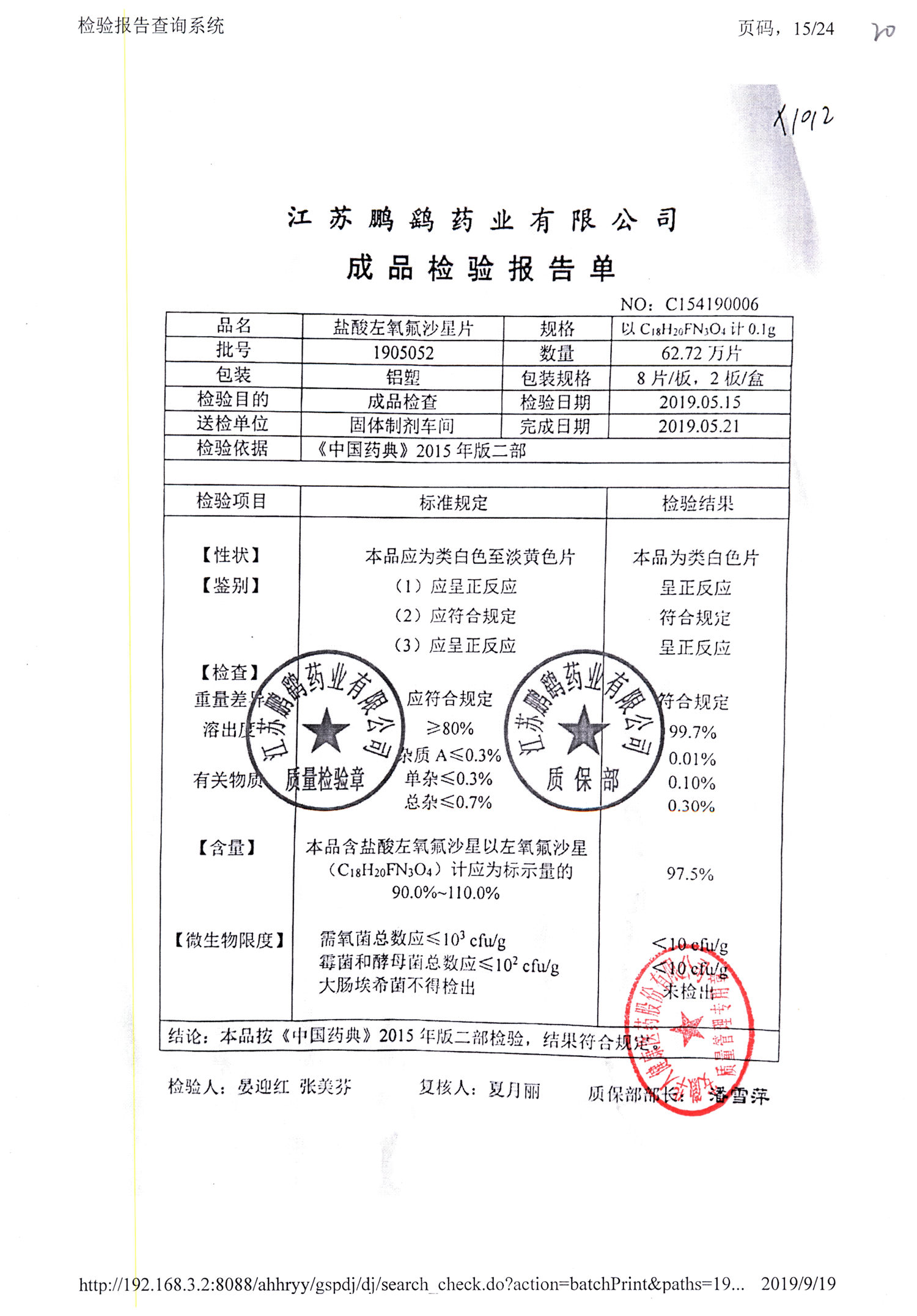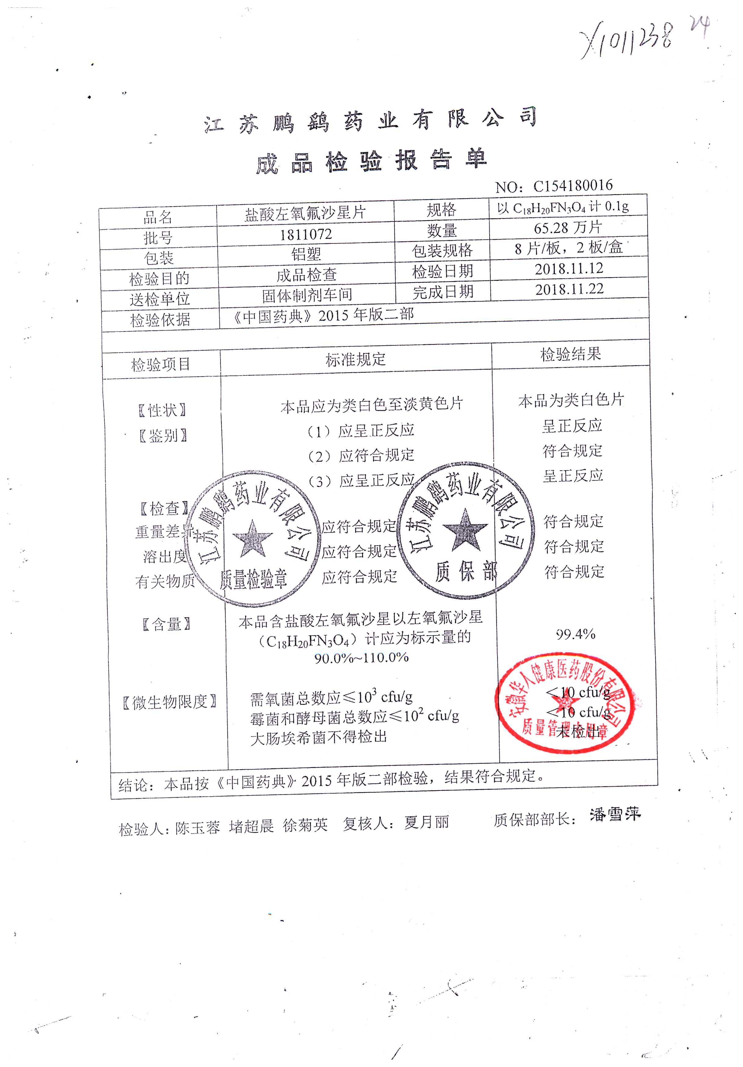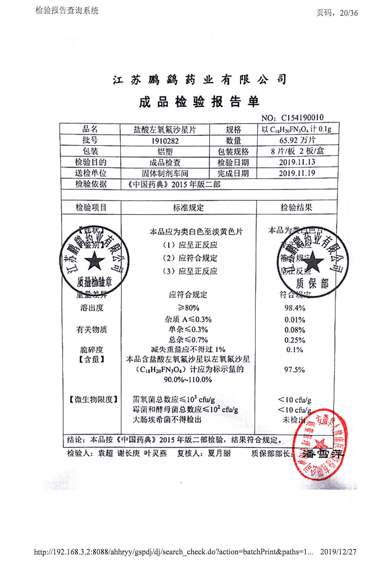 | 鹽酸左氧氟沙星片 | 16s | 1905052 | 查看詳情 |