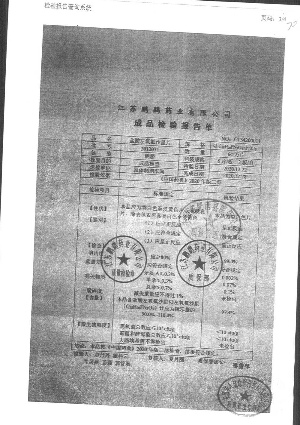 | 鹽酸左氧氟沙星片 | 16s | 2102021 | 查看詳情 |