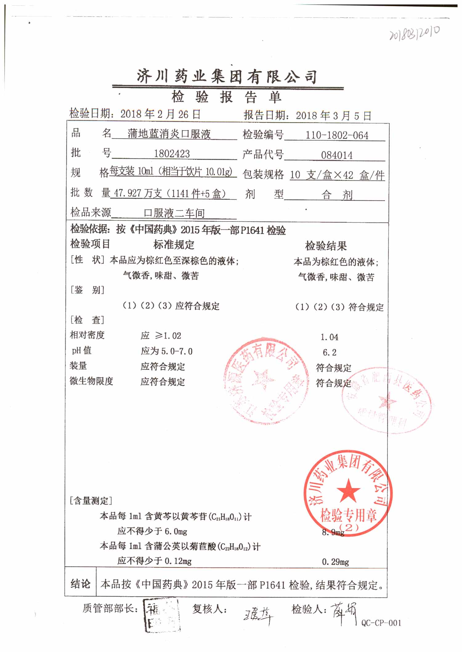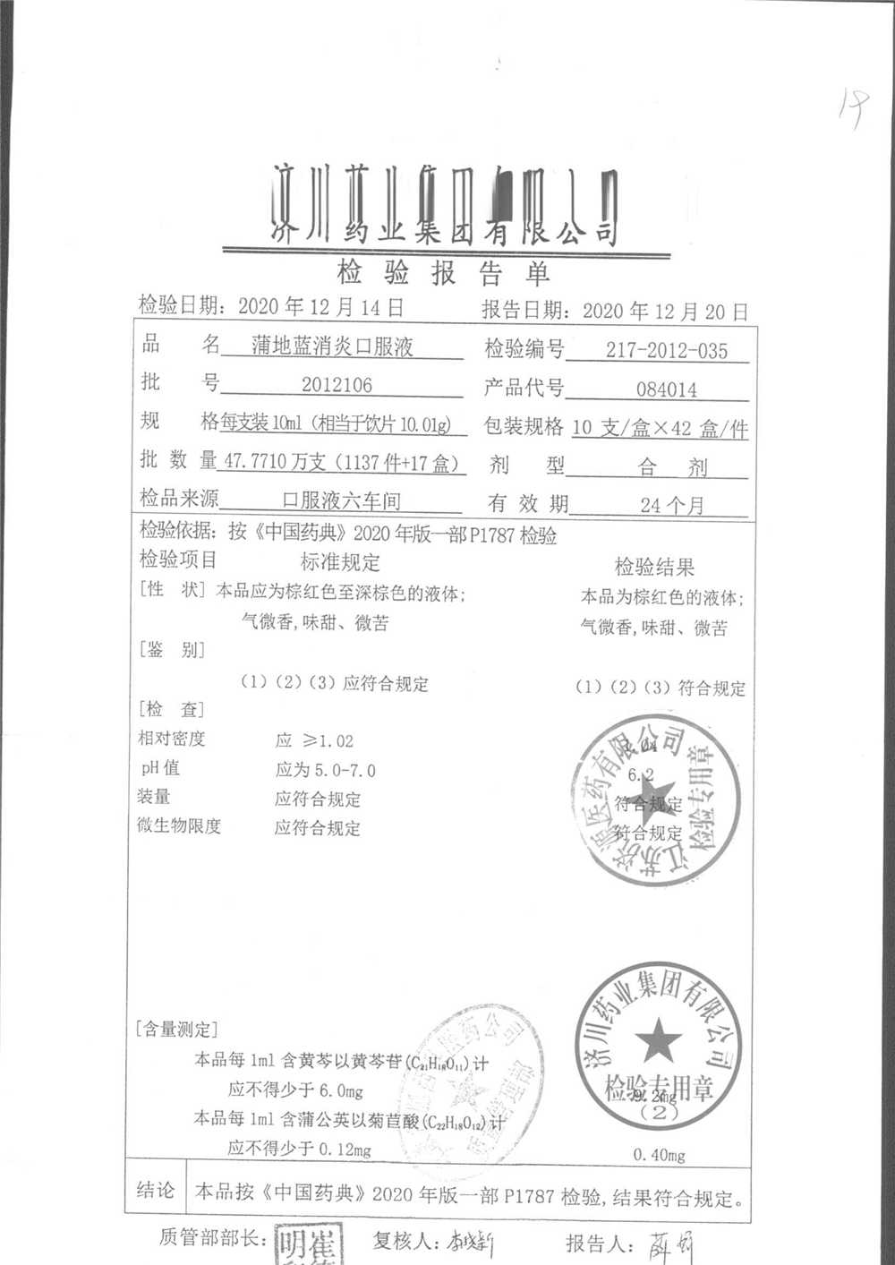 | 蒲地藍消炎口服液 | 10ml*10支 | 2012106 | 查看詳情 |