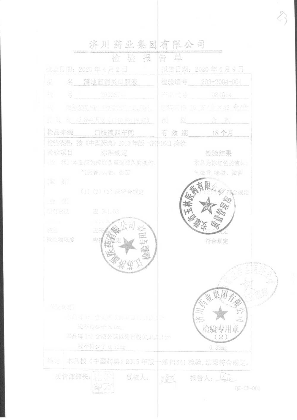 | 名稱 | 規格 | 批號 | 藥檢報告 |