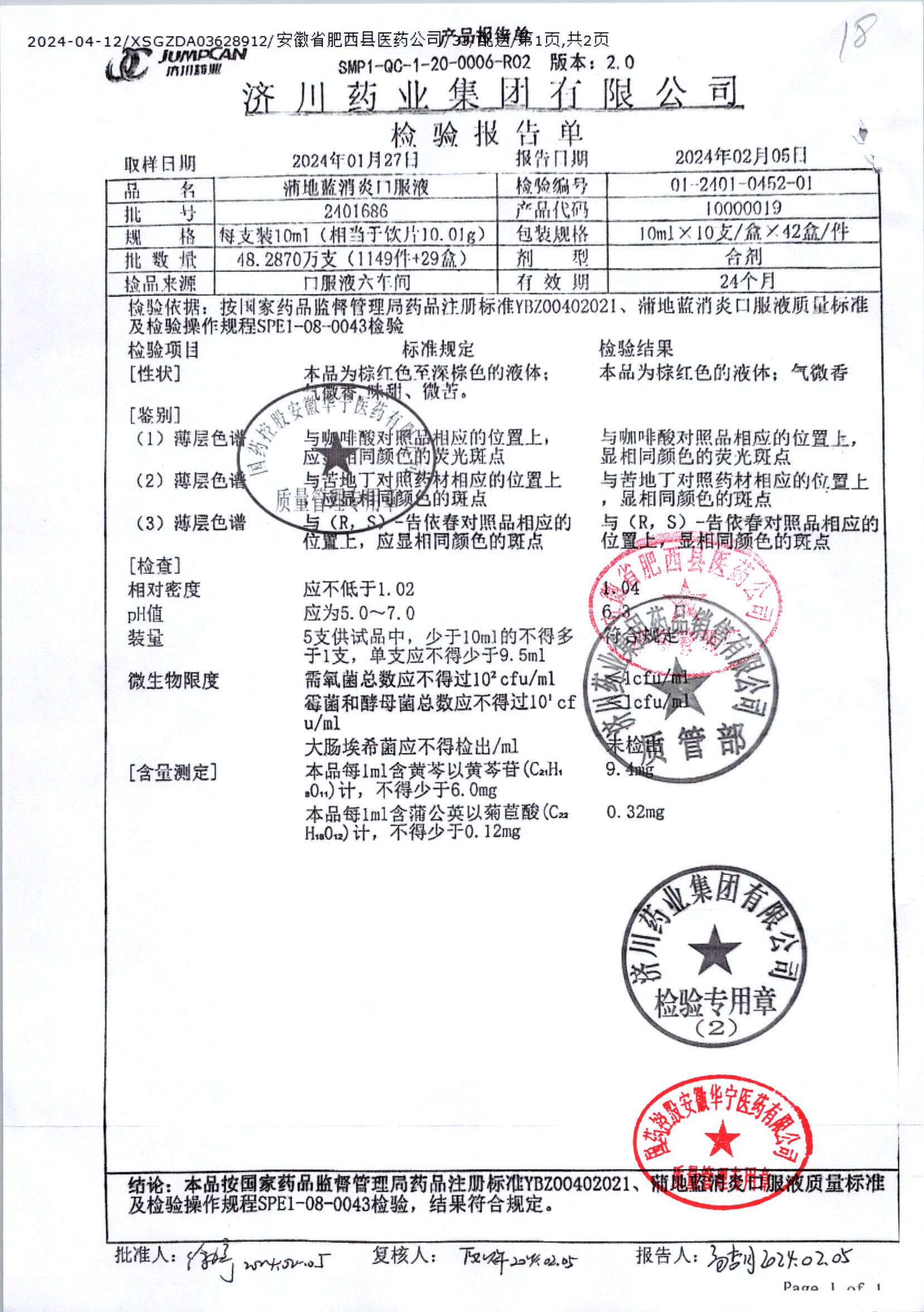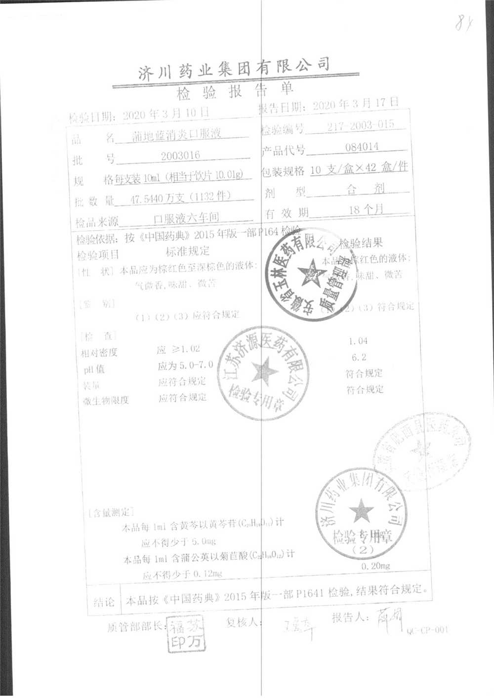 | 蒲地藍消炎口服液 | 10ml*10支 | 2010224 | 查看詳情 |