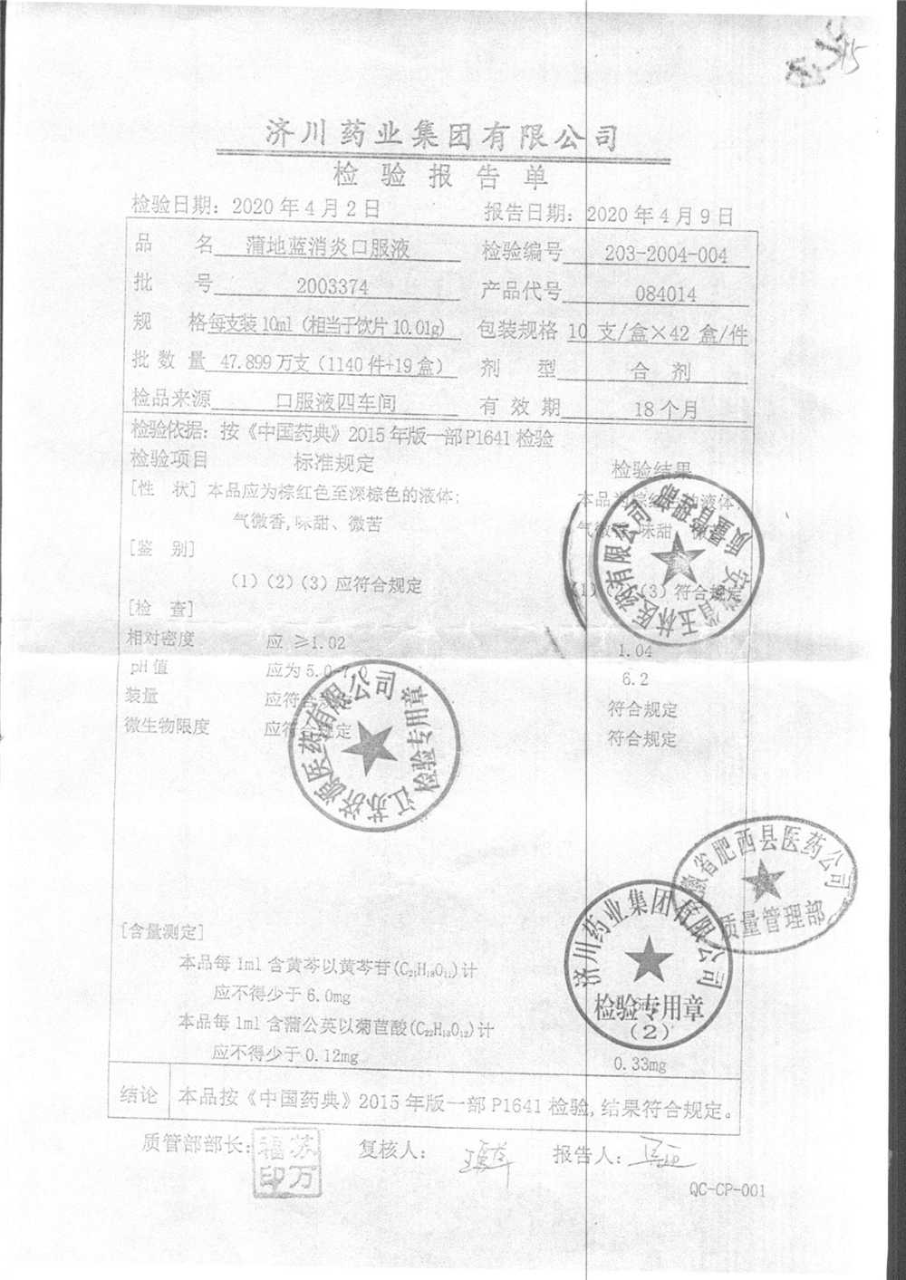 | 蒲地藍消炎口服液 | 10ml*10支 | 1801532 | 查看詳情 |