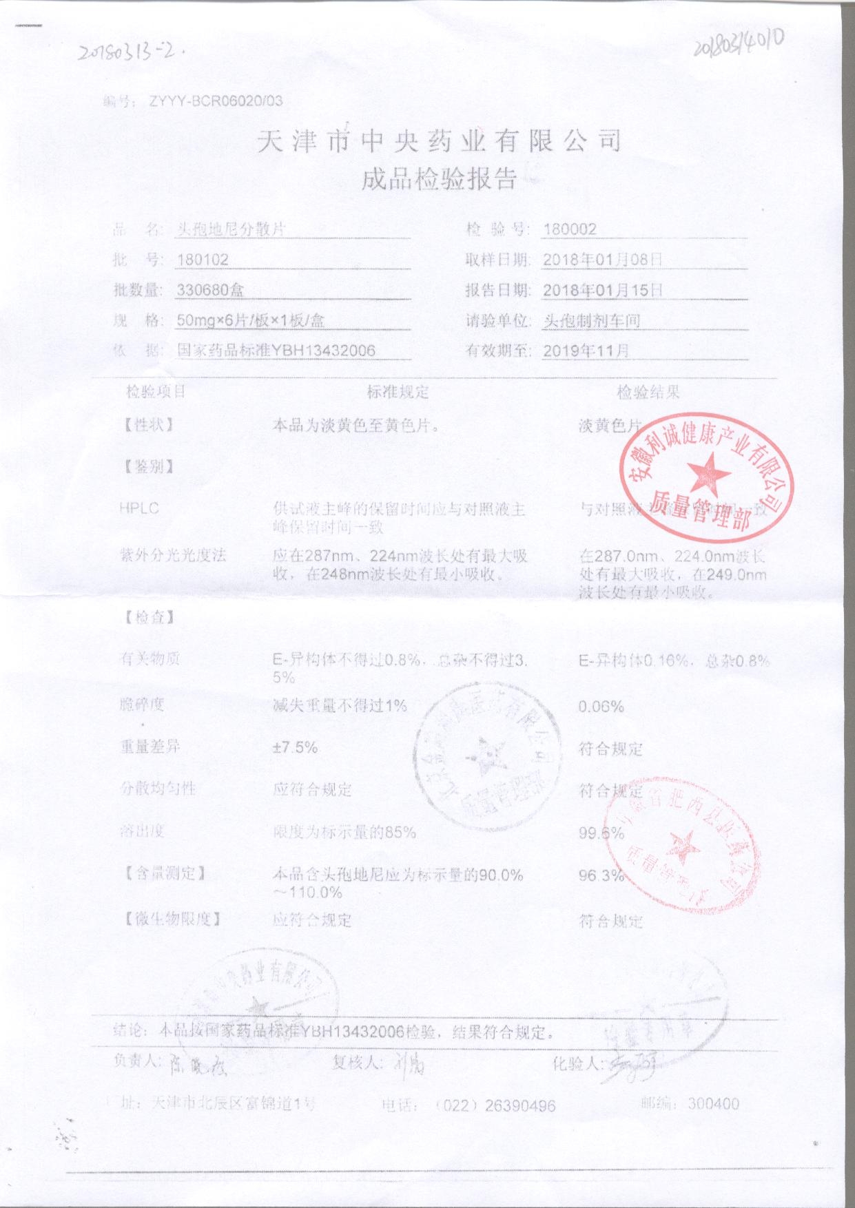 | 頭孢地尼分散片 | 50mg*6s | 180201 | 查看詳情 |