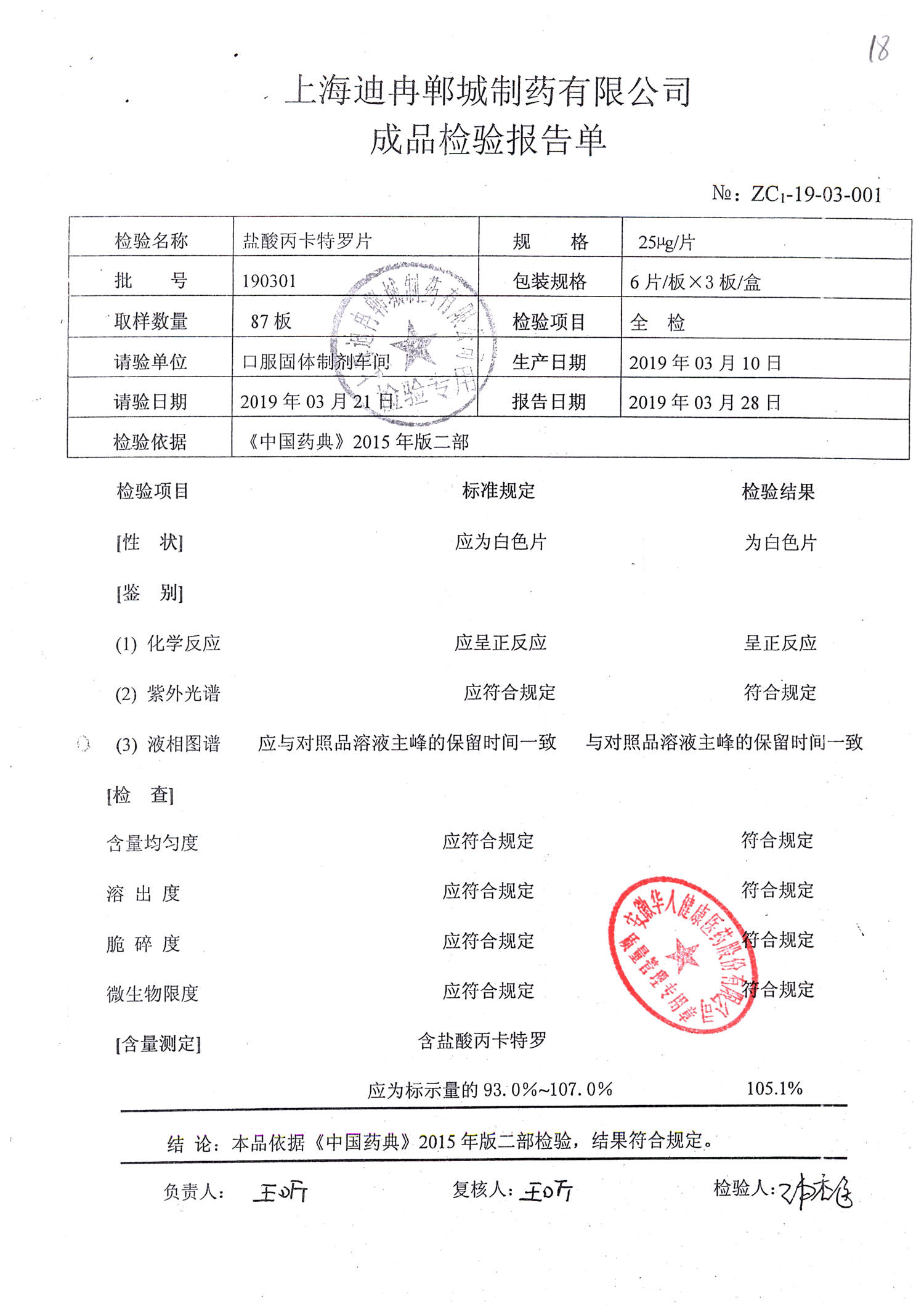 | 鹽酸丙卡特羅片 | 25ug*18s | 180101 | 查看詳情 |
