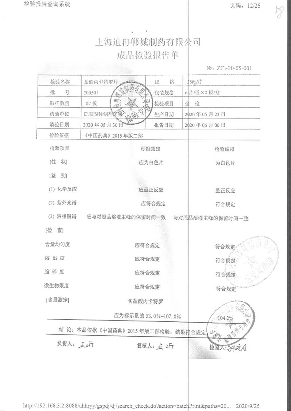 | 鹽酸丙卡特羅片 | 25ug*18s | 191201 | 查看詳情 |
