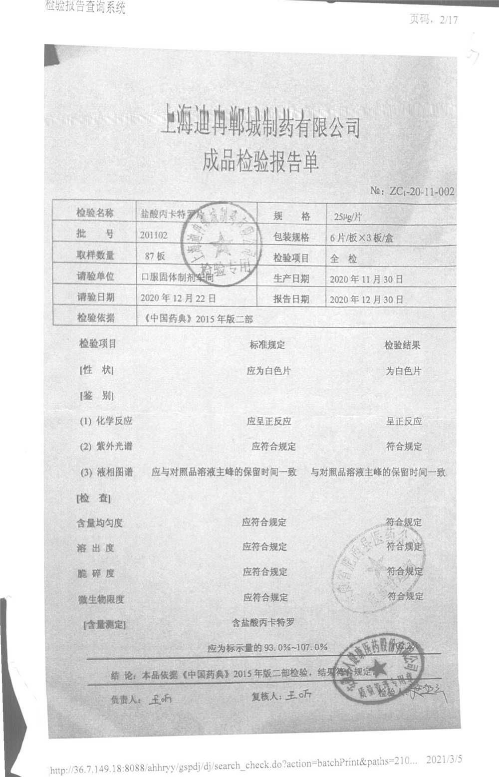| 鹽酸丙卡特羅片 | 25ug*18s | 201102 | 查看詳情 |
