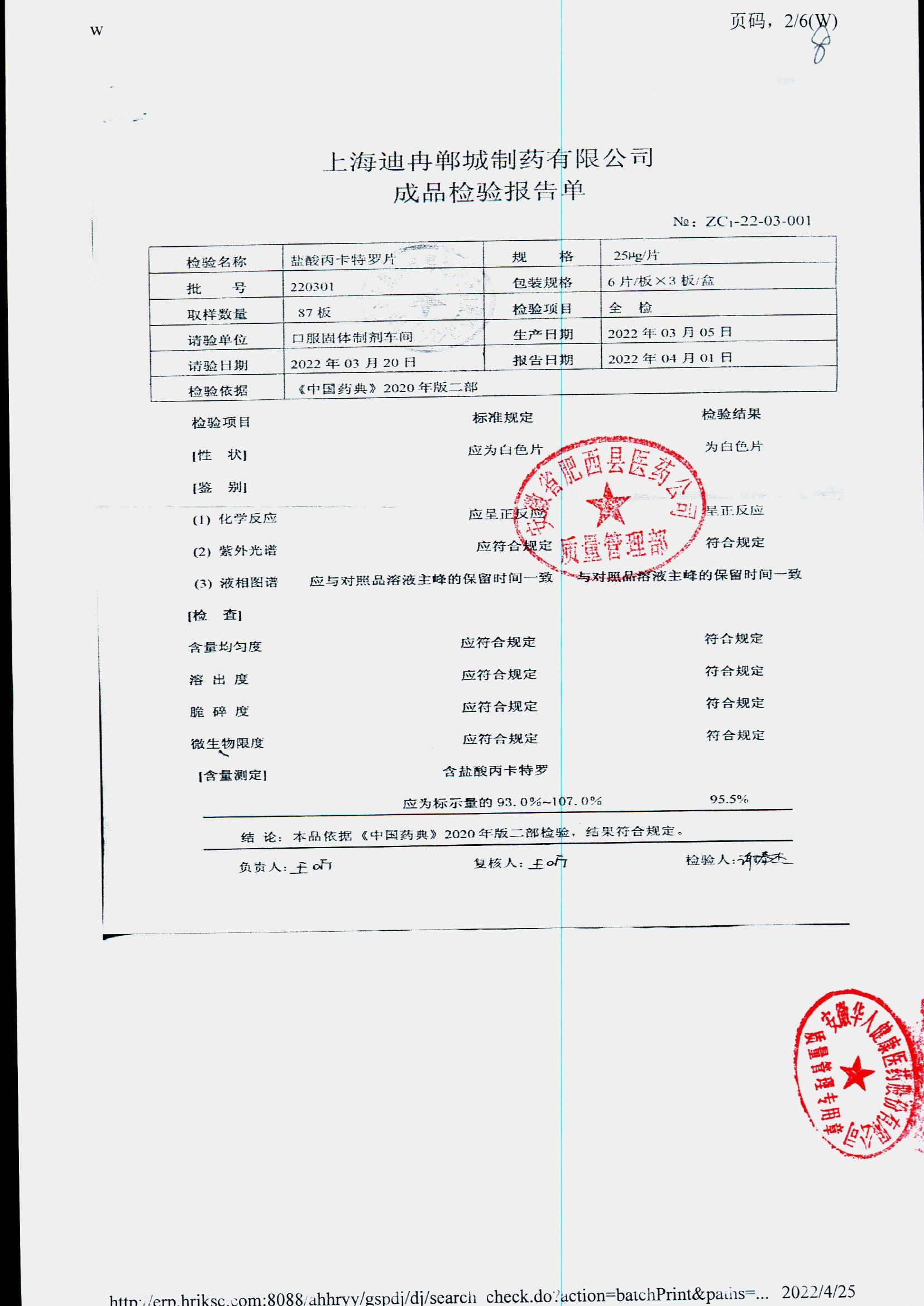 | 鹽酸丙卡特羅片 | 25ug*18s | 220301 | 查看詳情 |