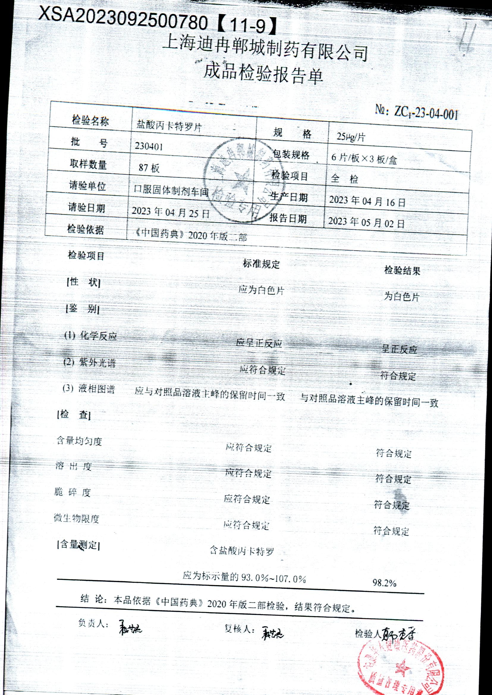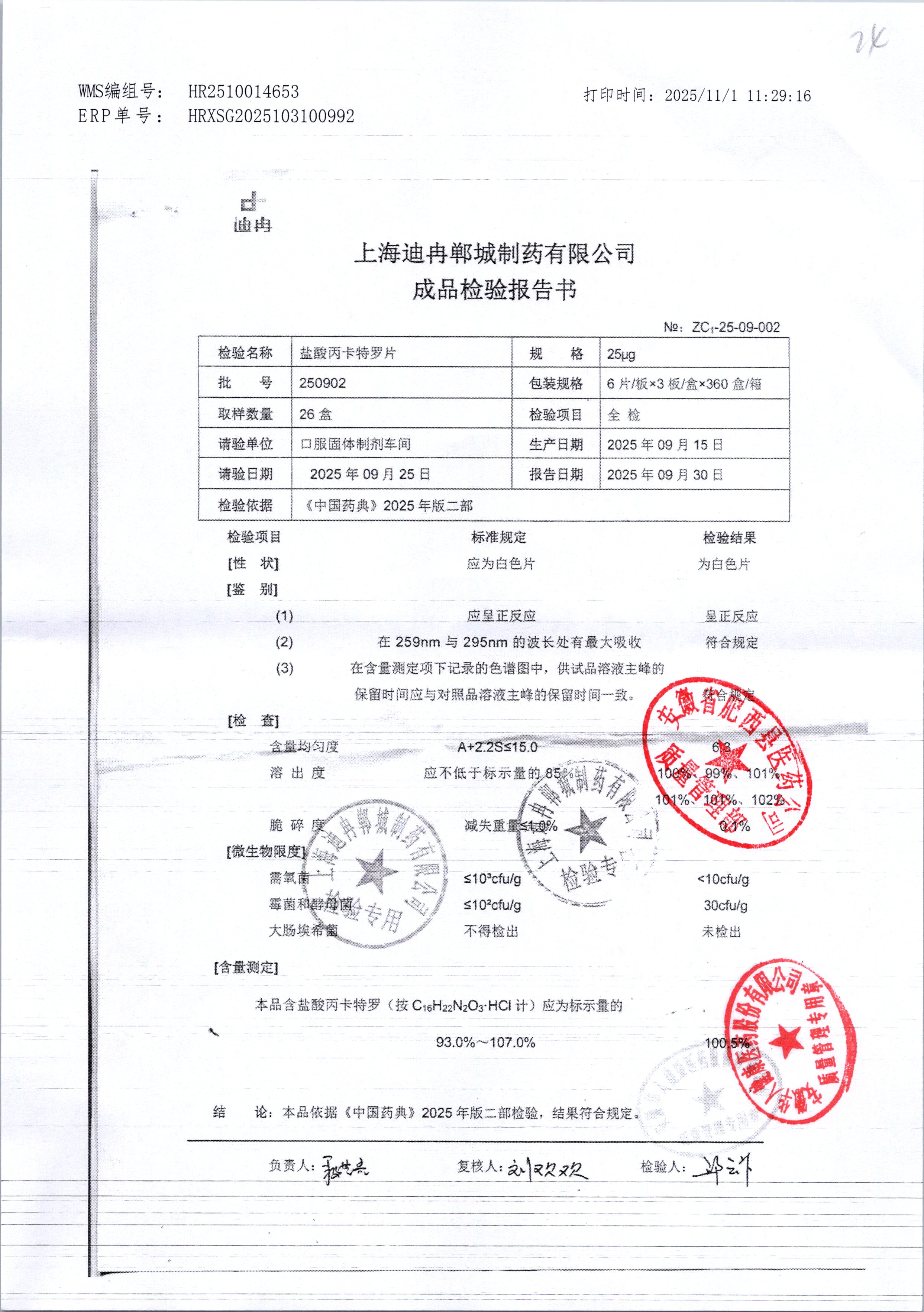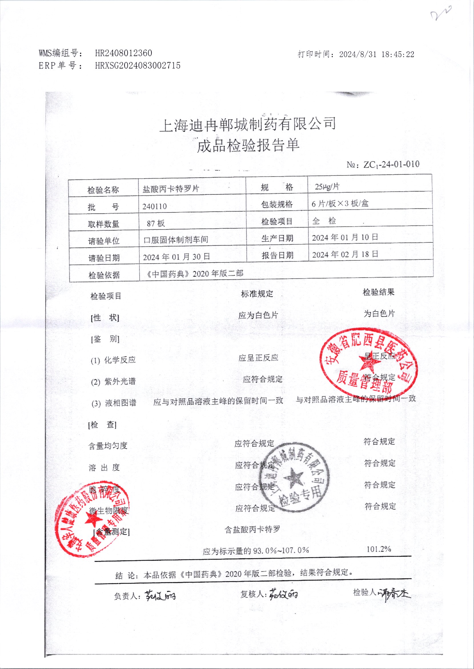 | 鹽酸丙卡特羅片 | 25ug*18s | 240110 | 查看詳情 |