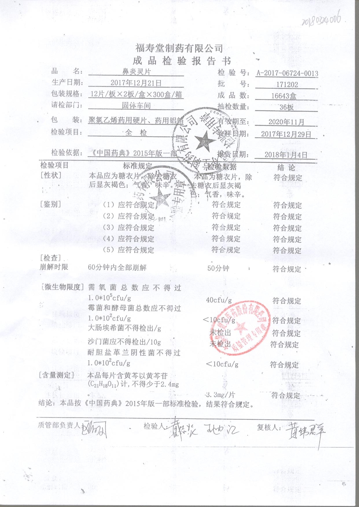 | 鼻炎靈片 | 24片 | 171202 | 查看詳情 |