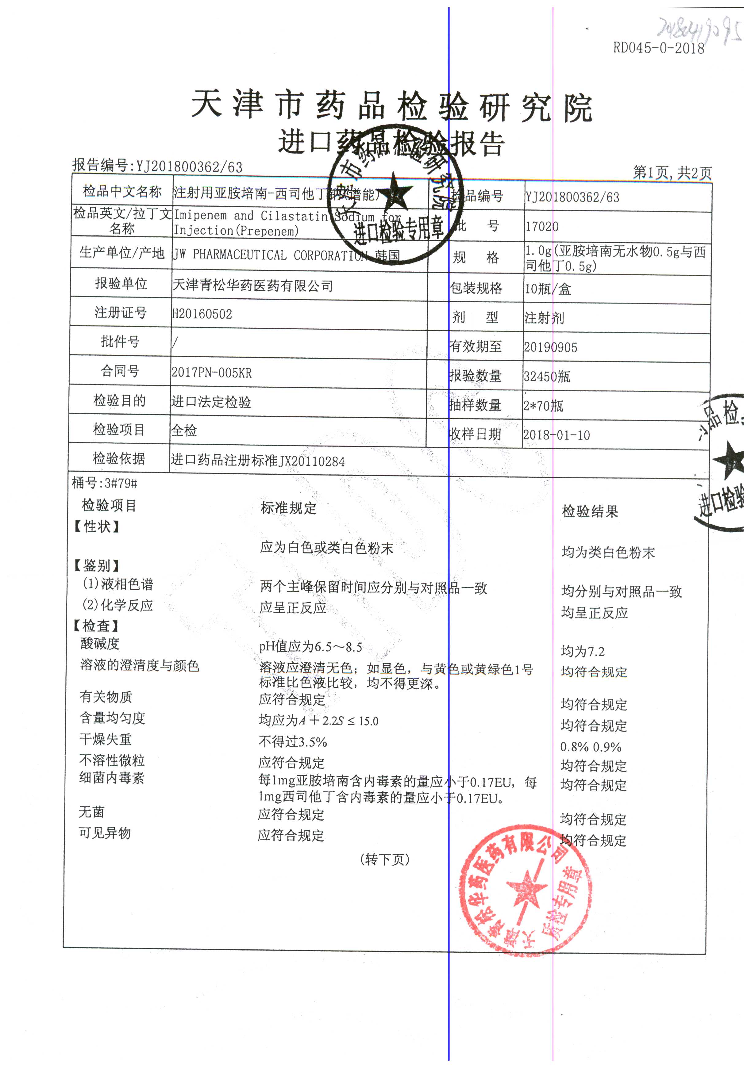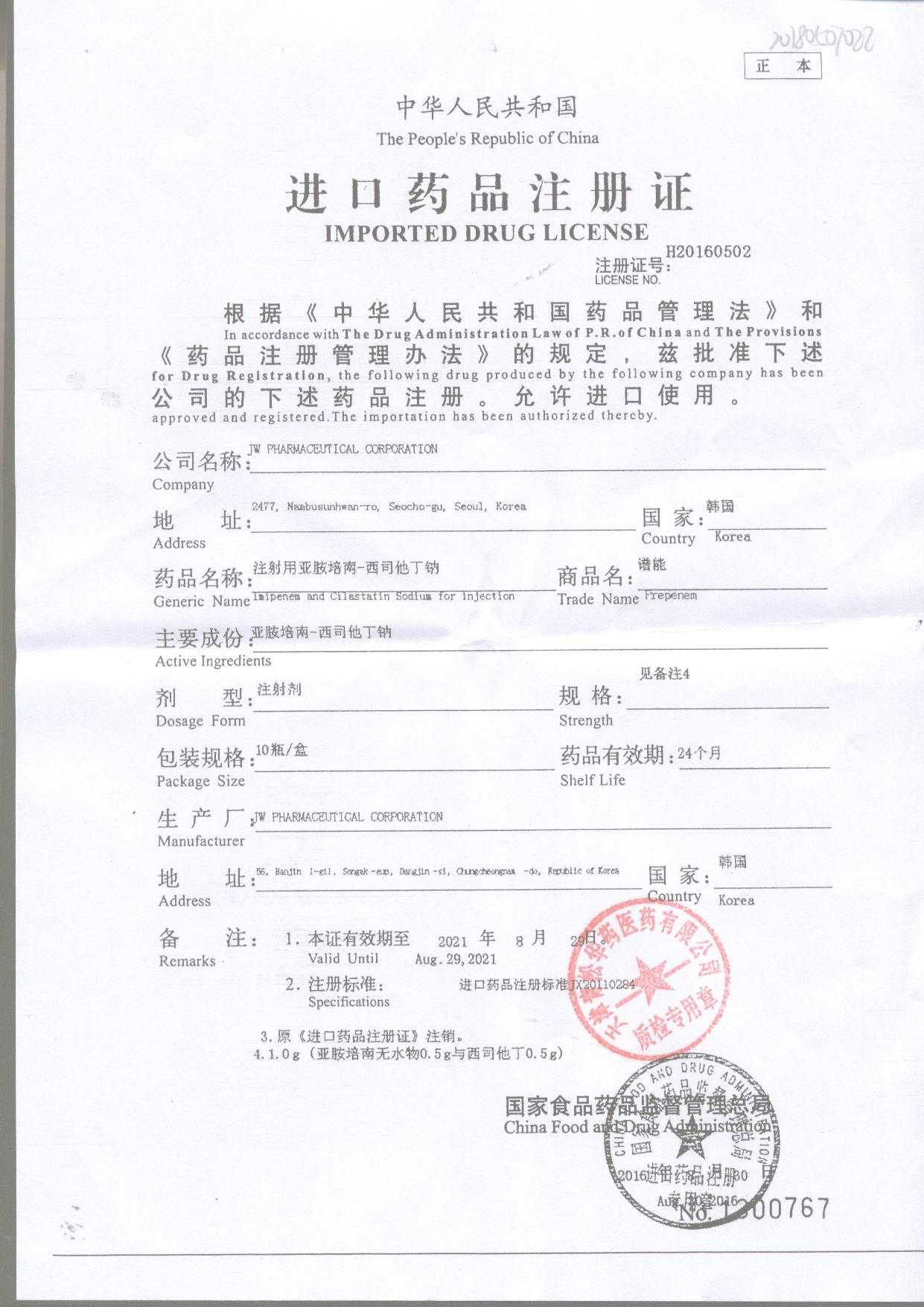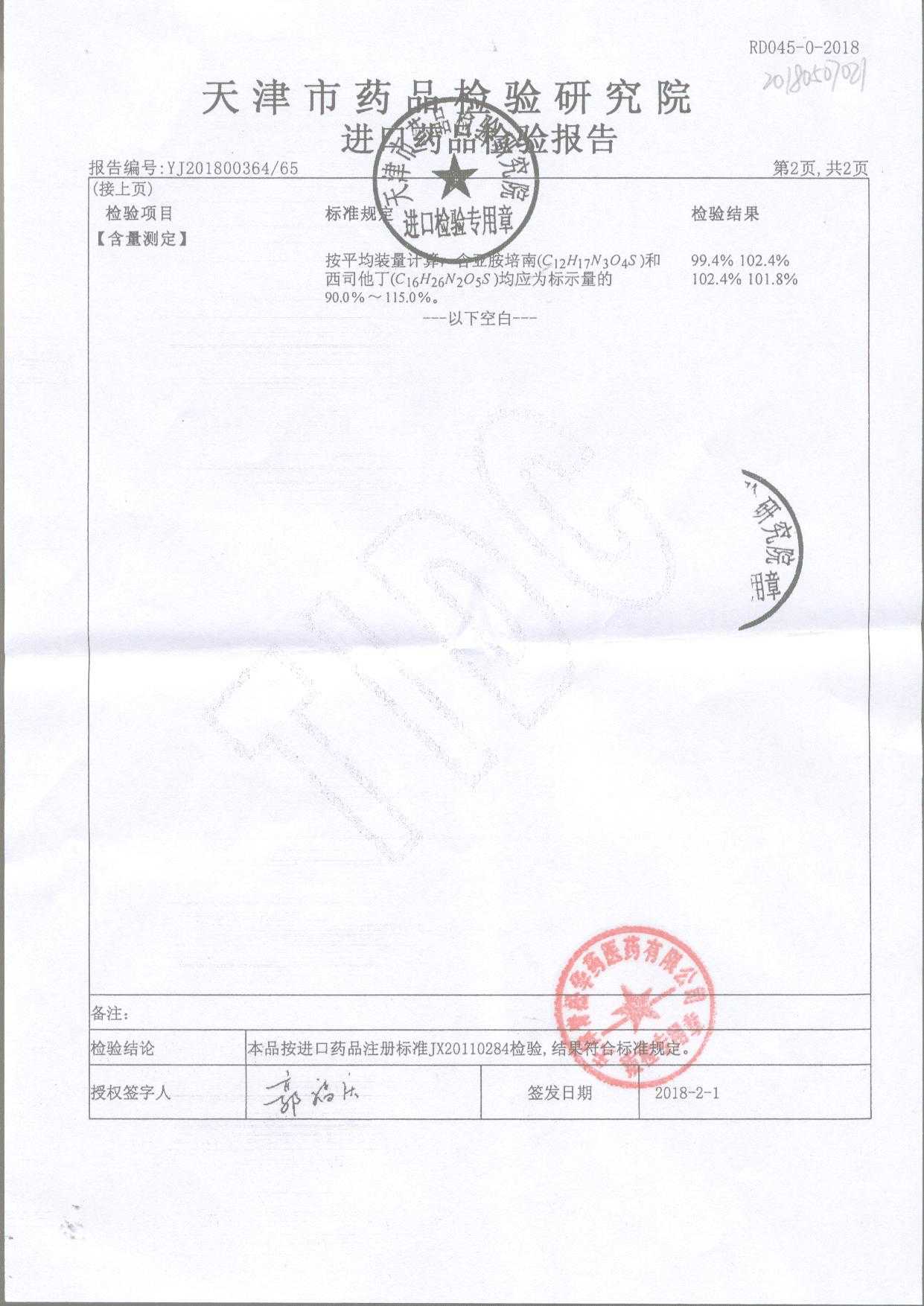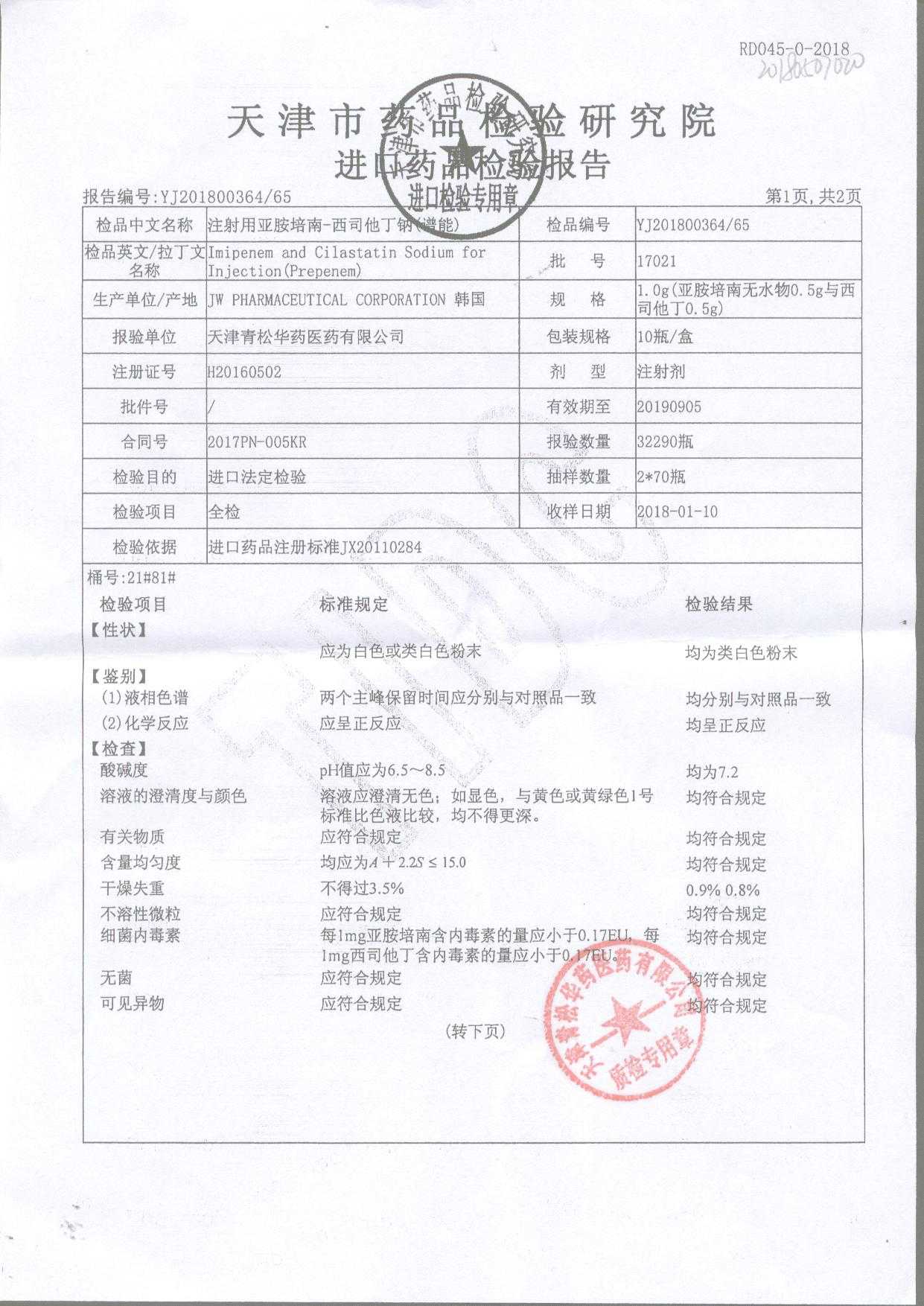 注射用亞胺培南-西司他丁鈉 1g*10瓶 17025(4/4) 查看詳情