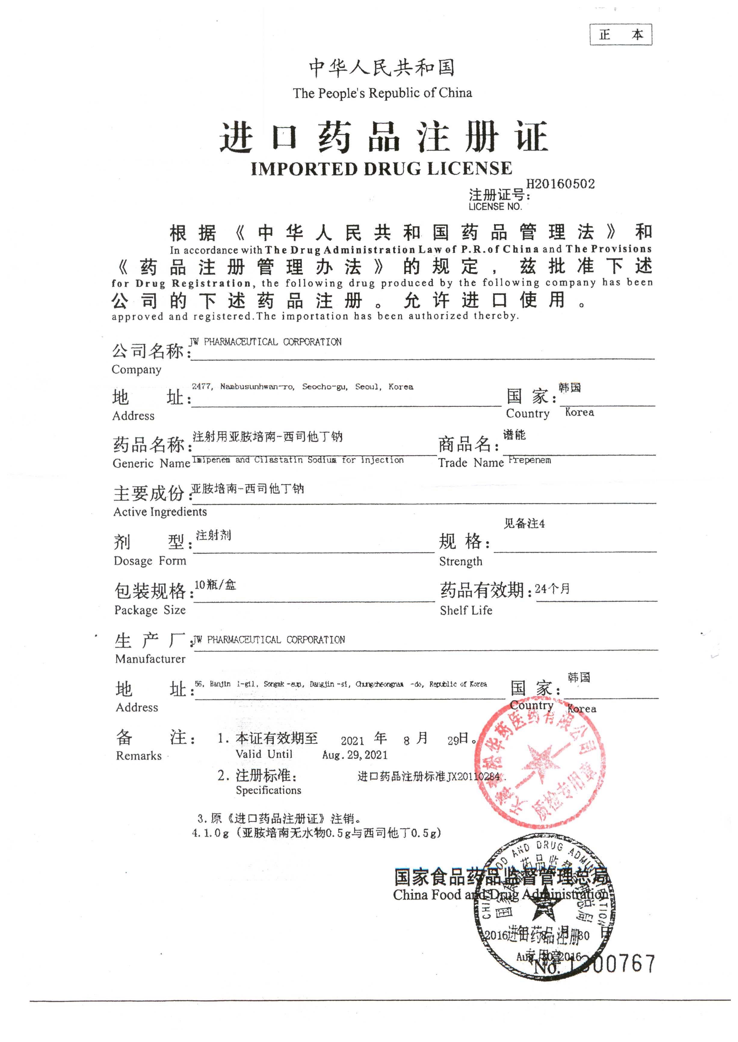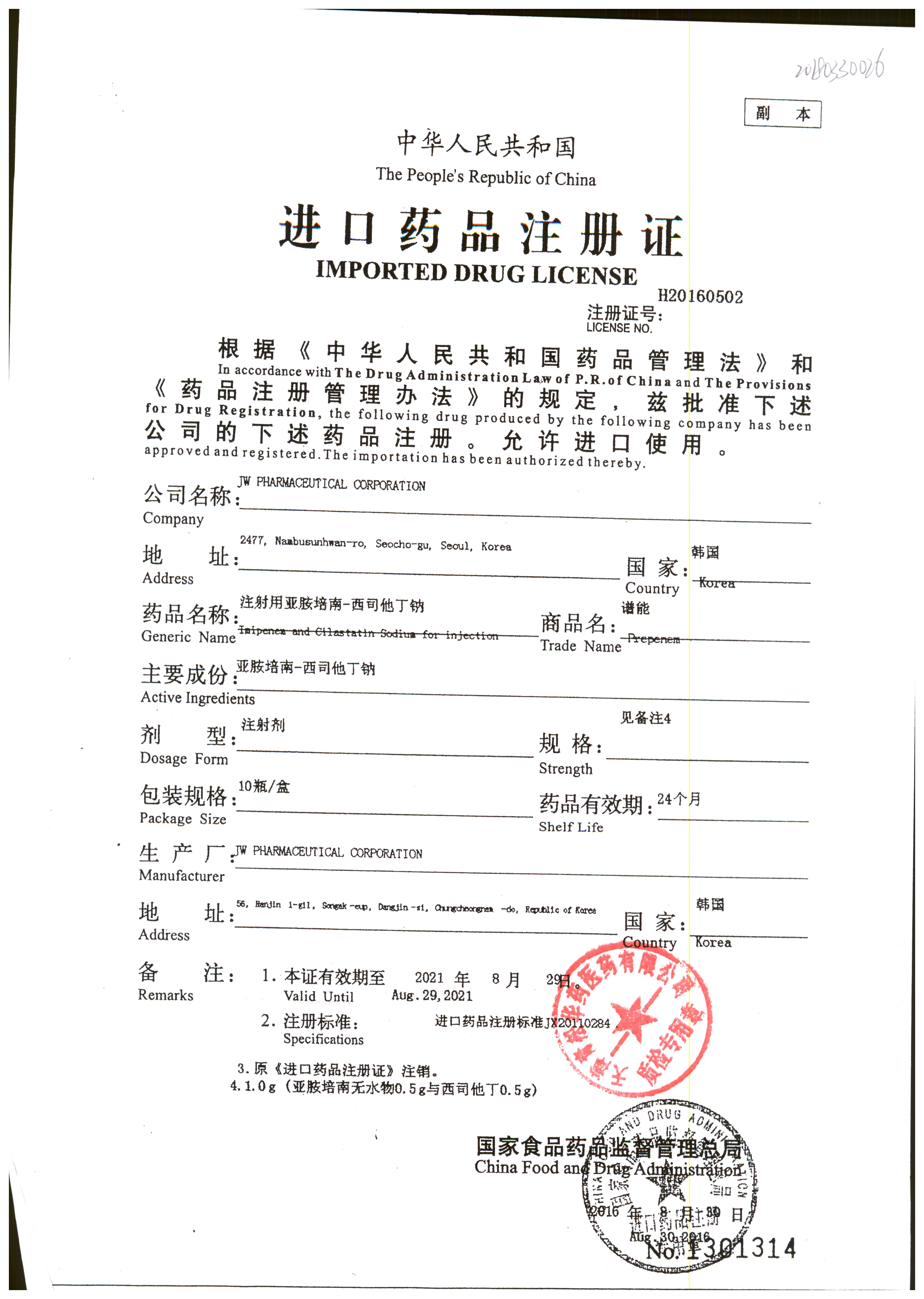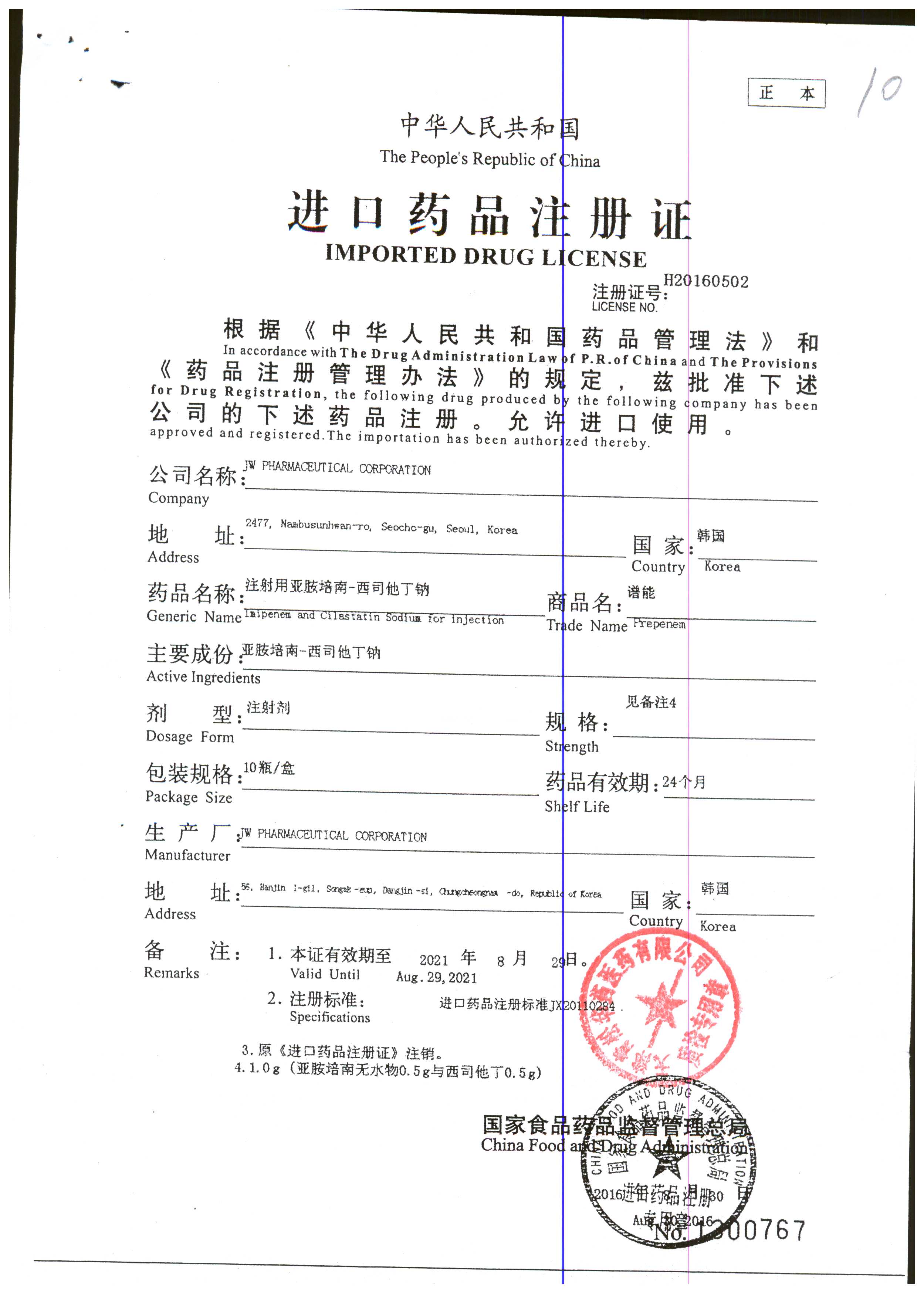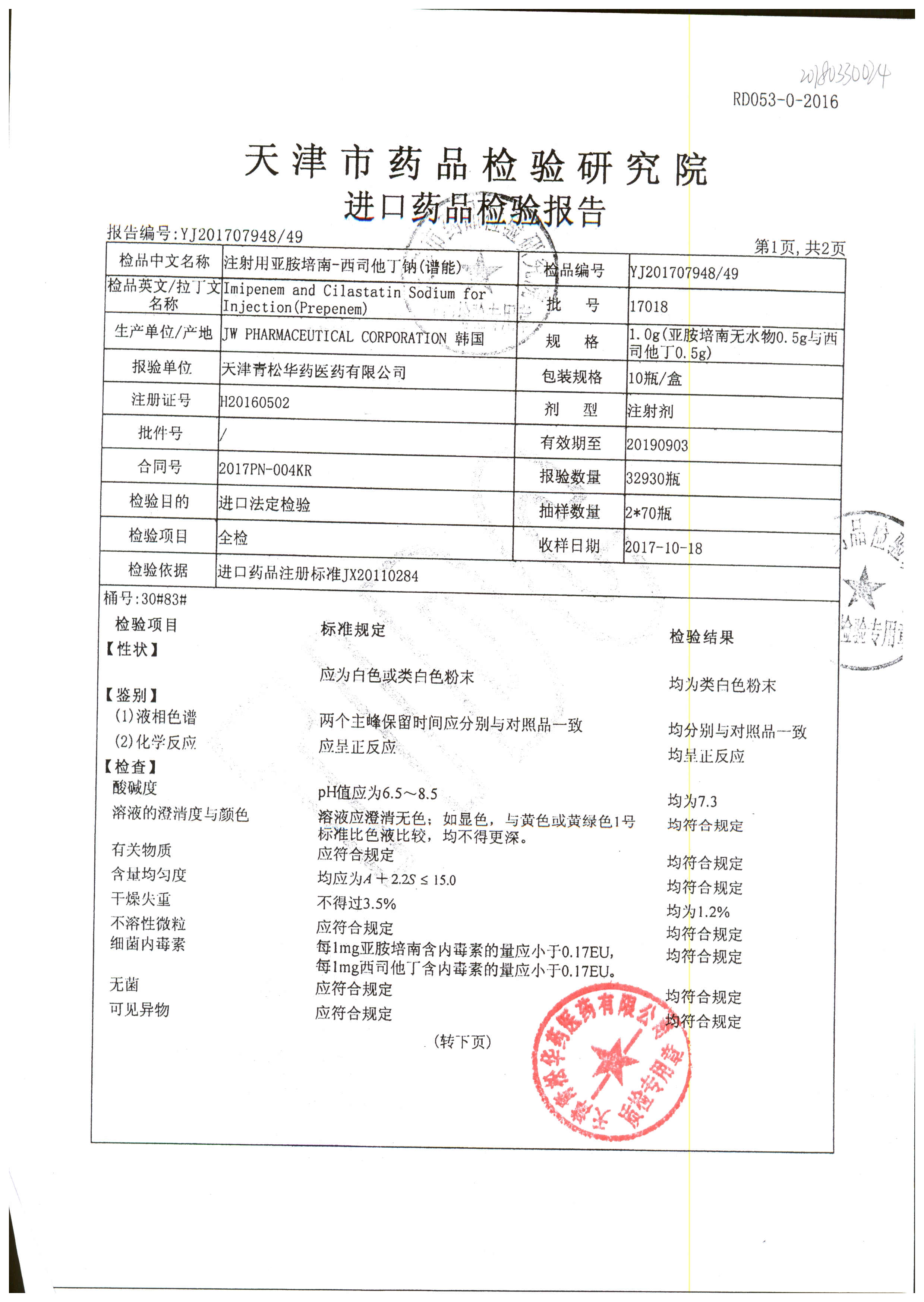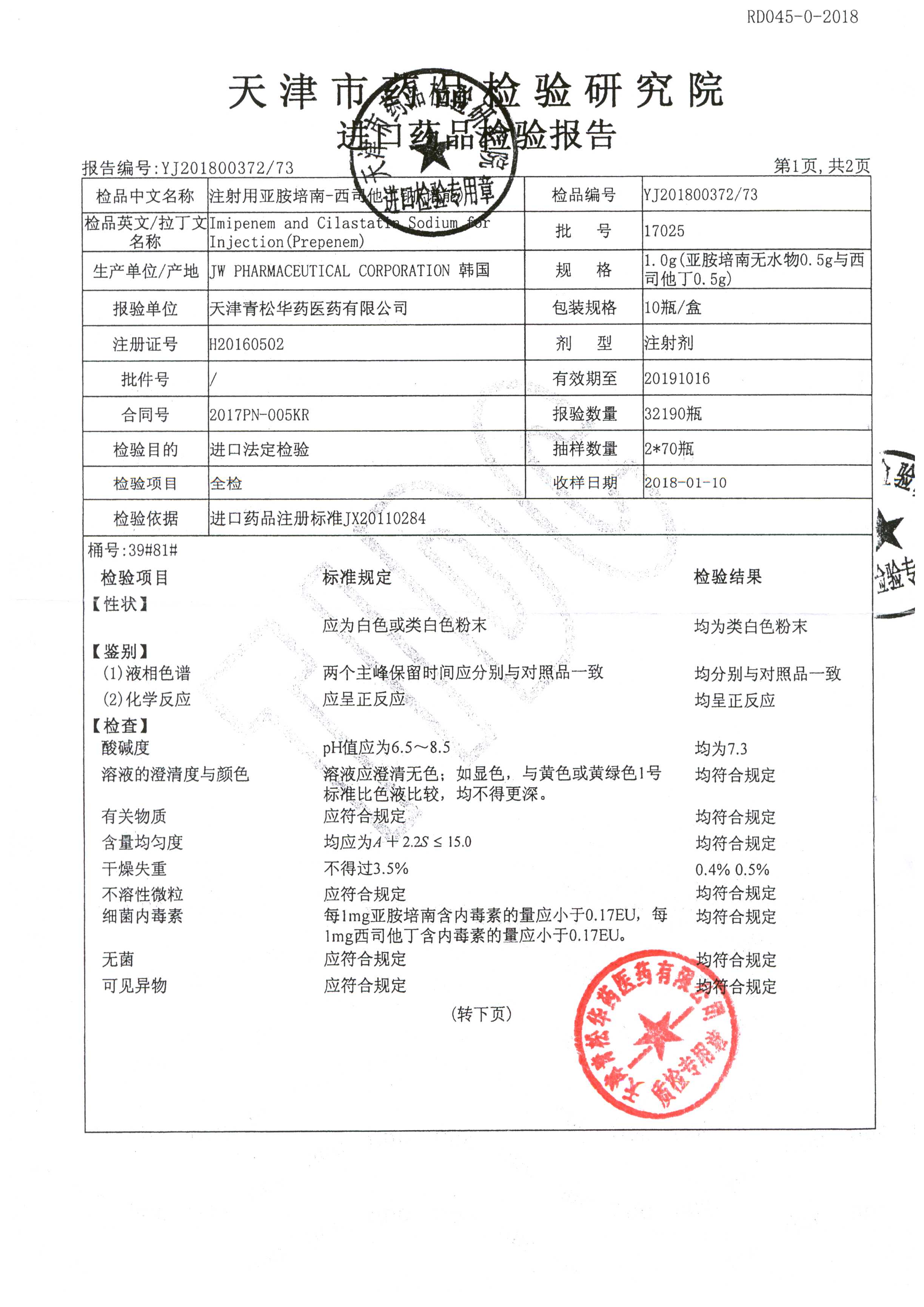 注射用亞胺培南-西司他丁鈉 1g*10瓶 17025(4/4) 查看詳情