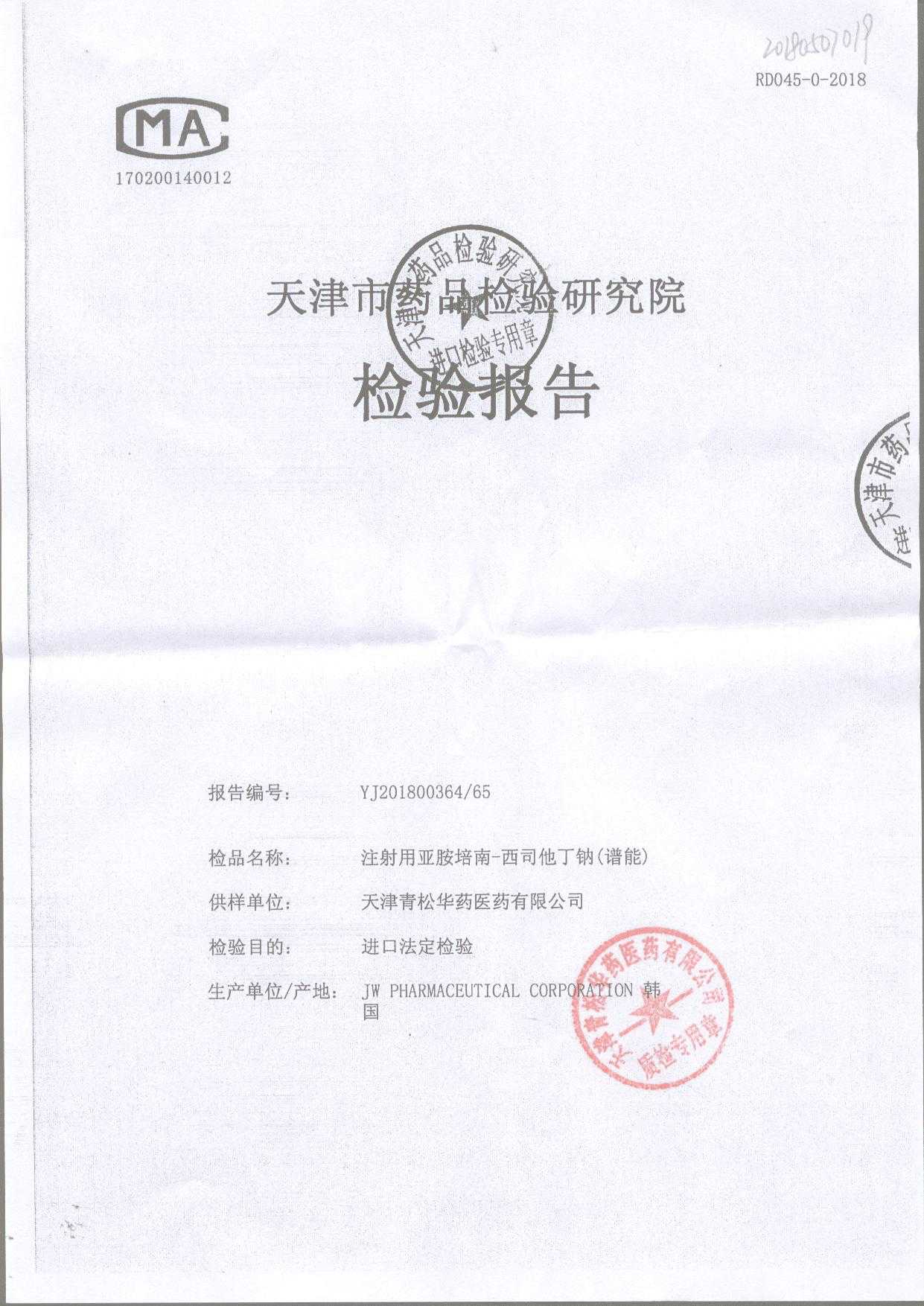 名稱 規格 批號 藥檢報告