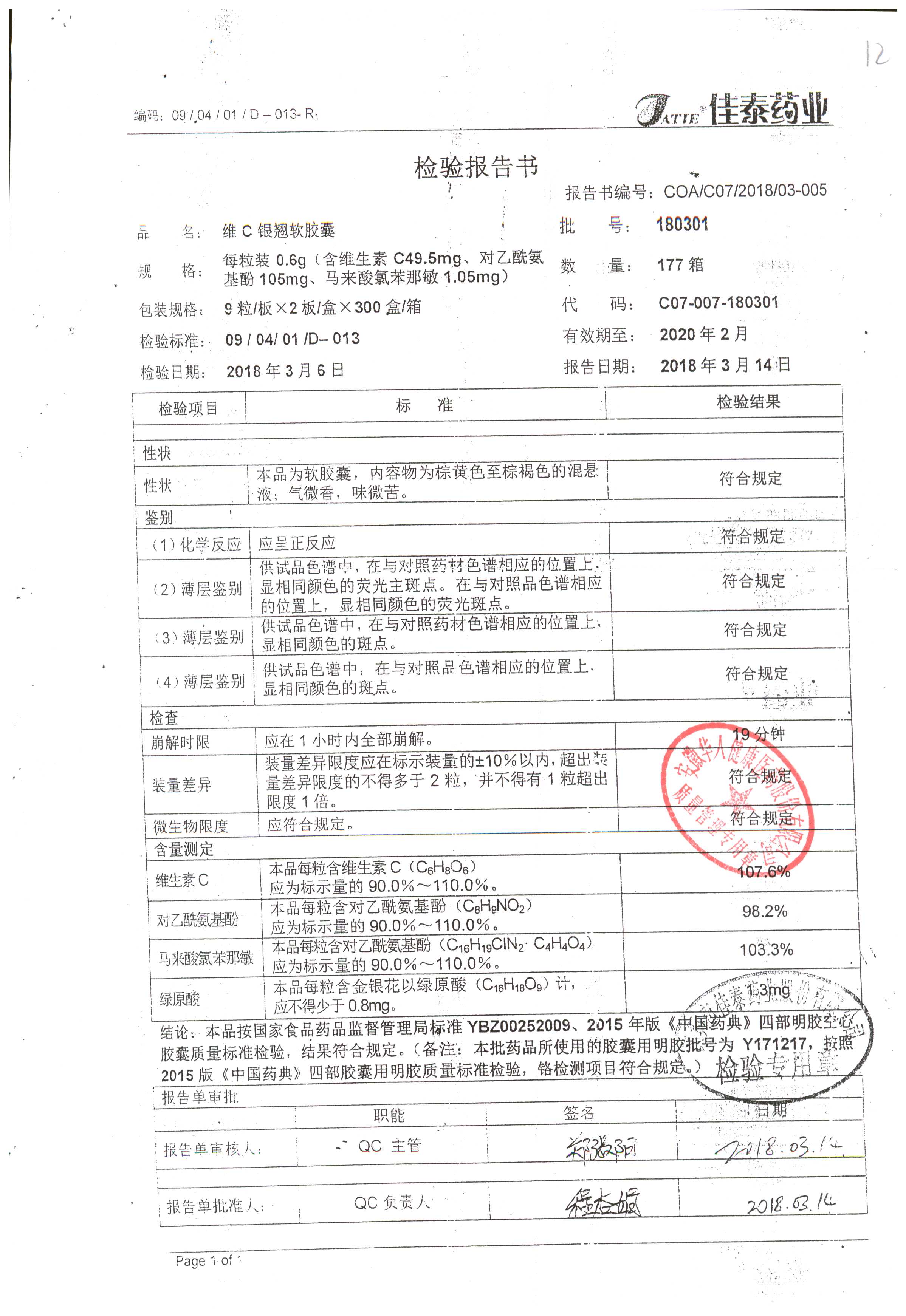 | 維C銀翹軟膠囊 | 0.6g*18s | 181101 | 查看詳情 |