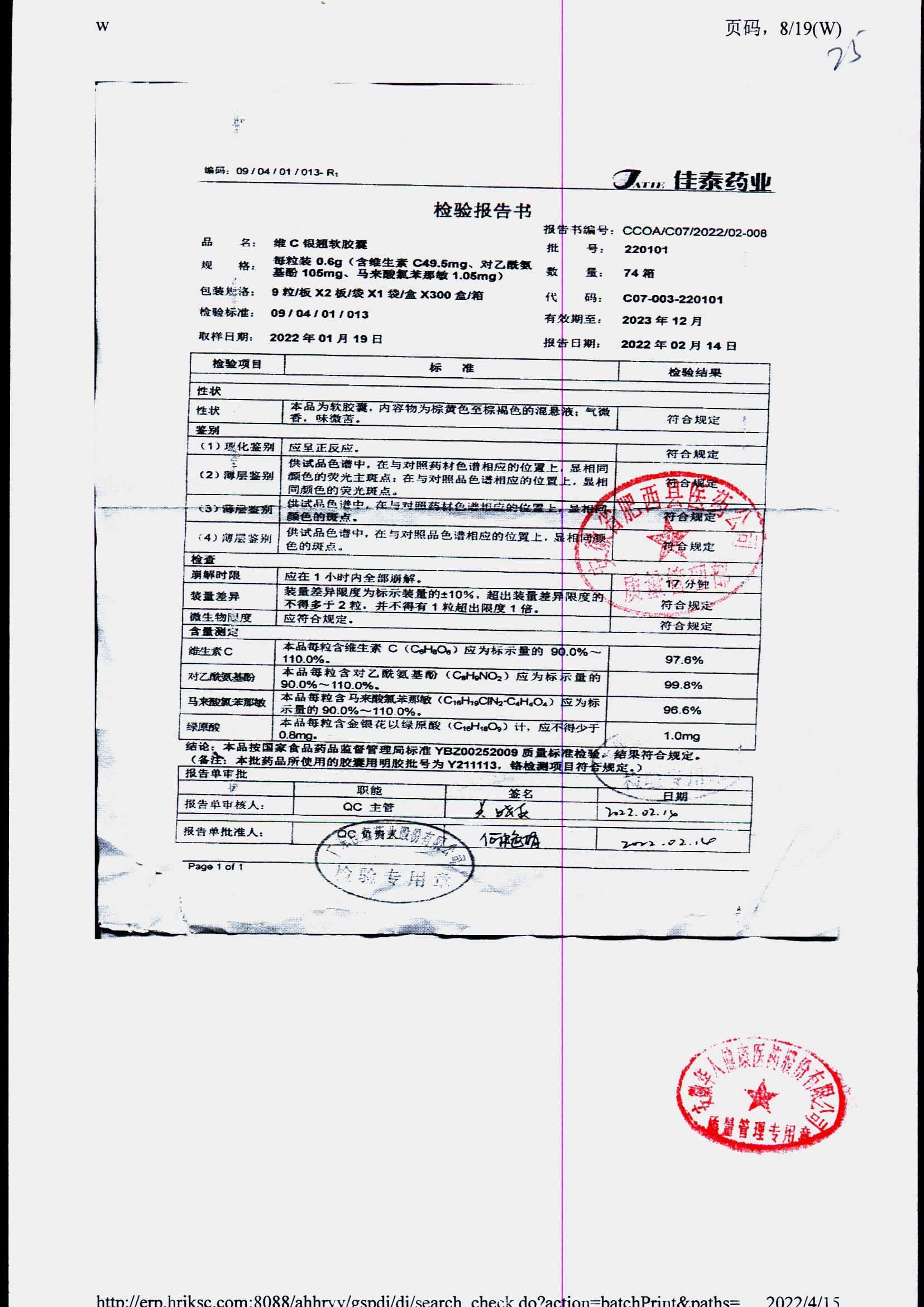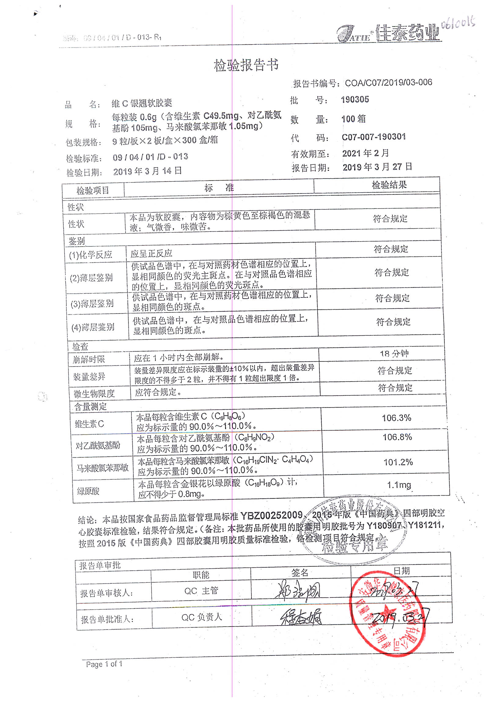 | 名稱 | 規格 | 批號 | 藥檢報告 |