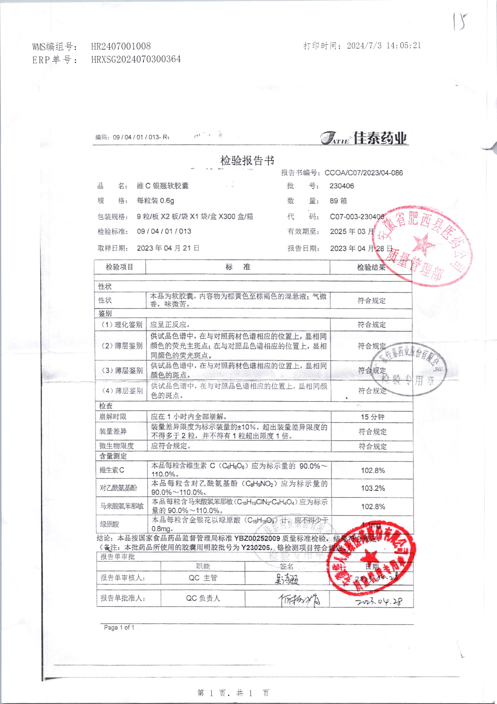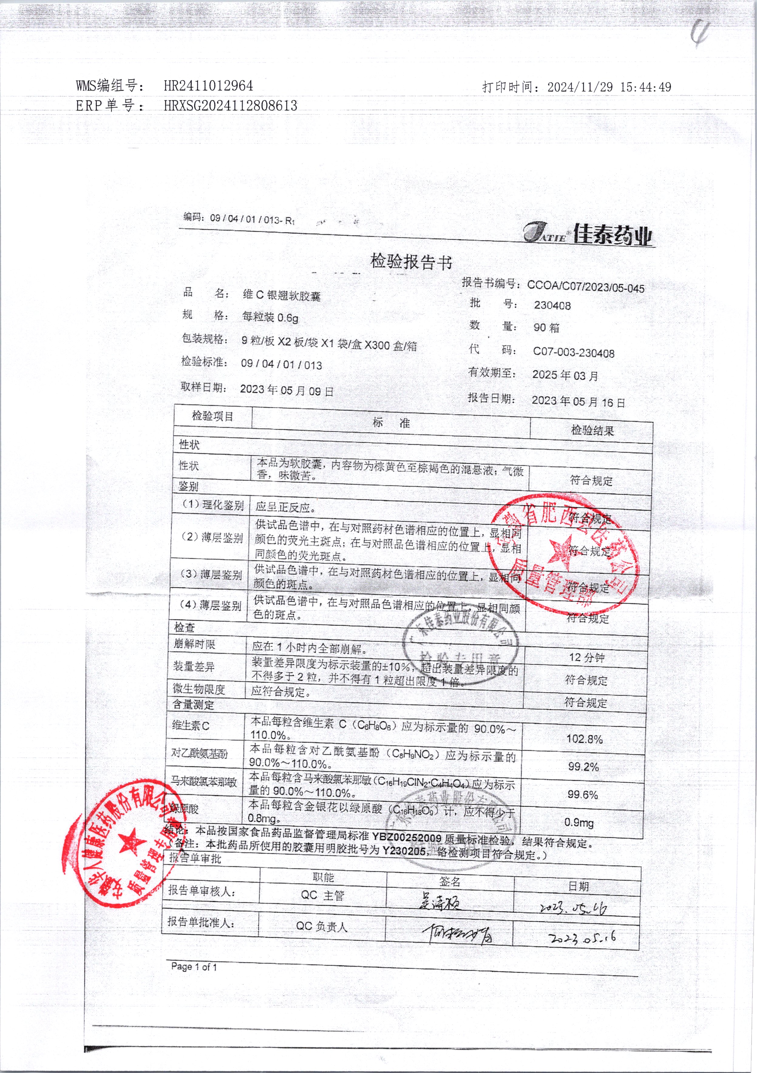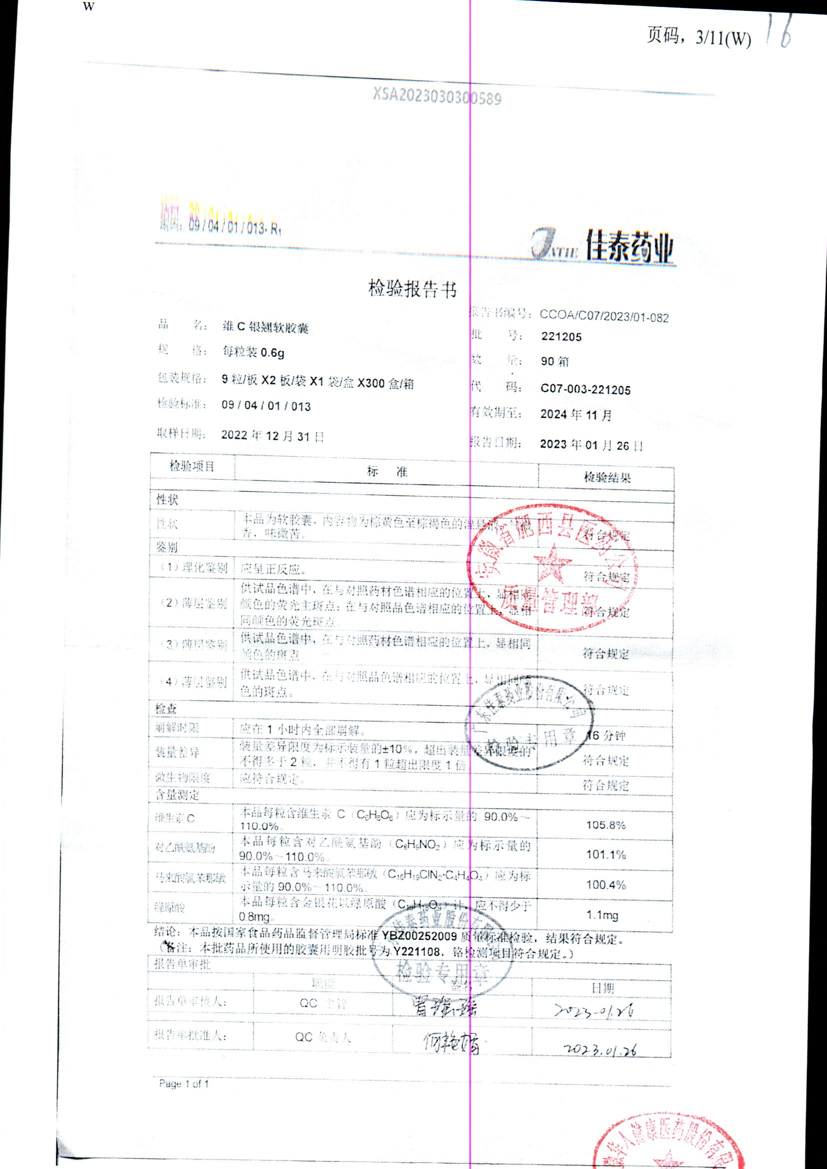 | 維C銀翹軟膠囊 | 0.6g*18s | 230408 | 查看詳情 |