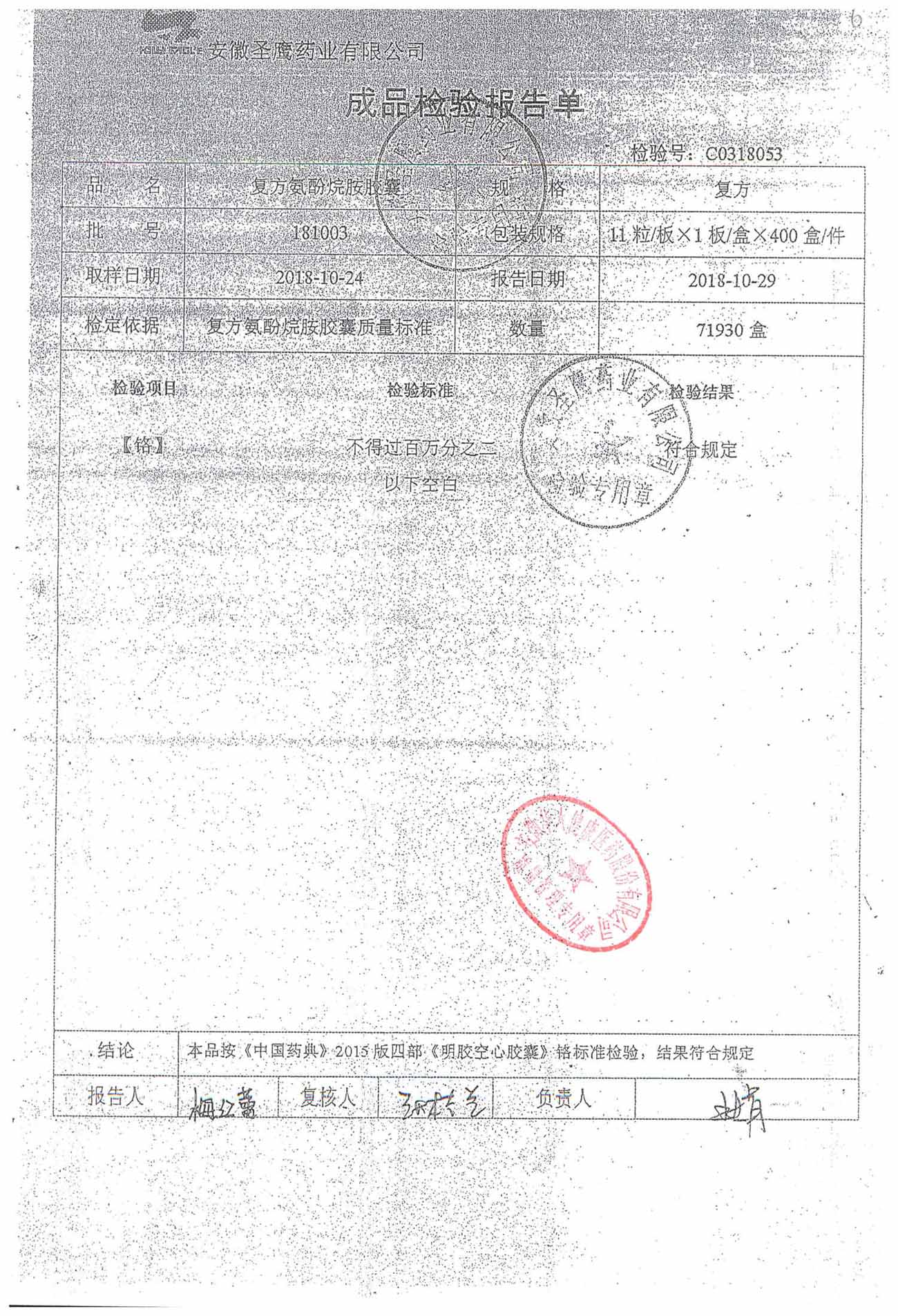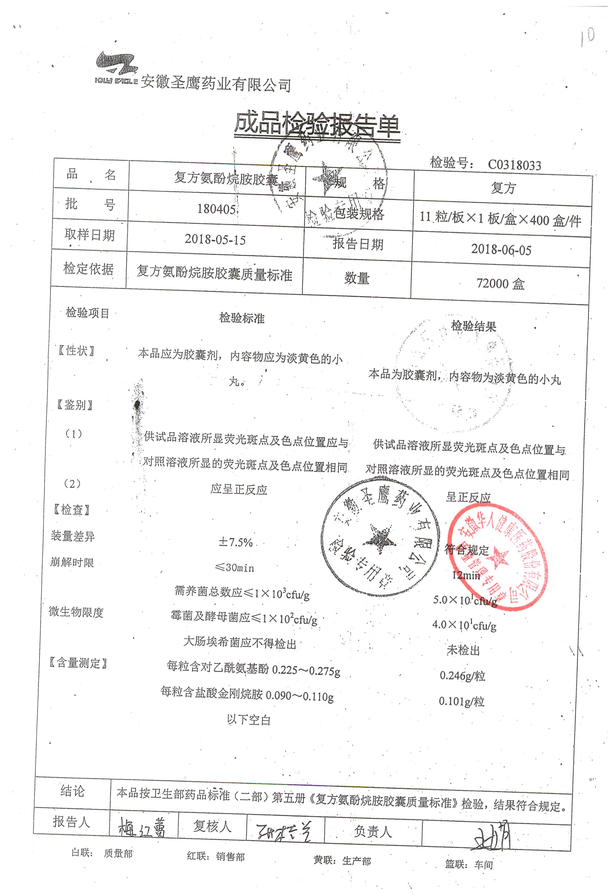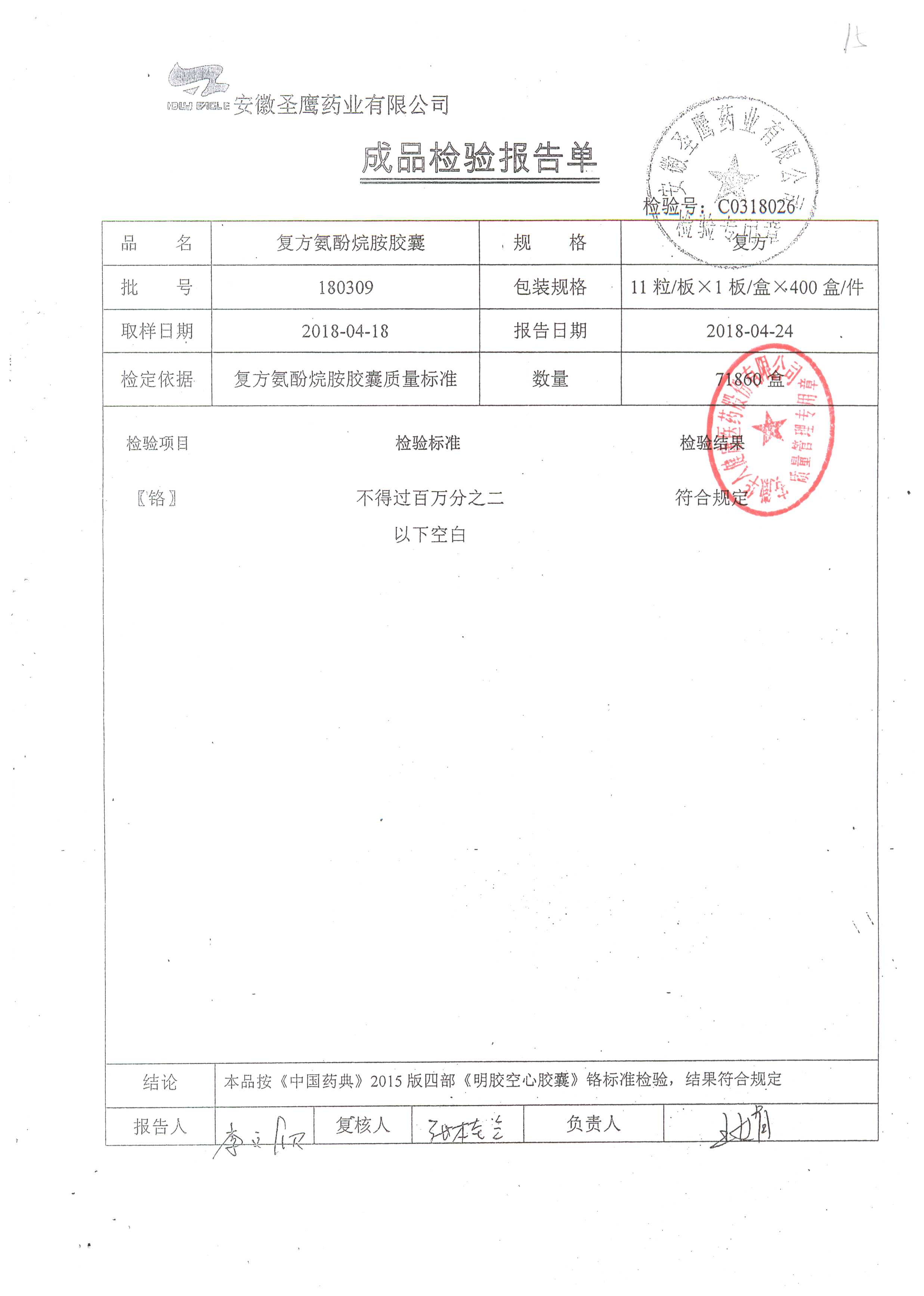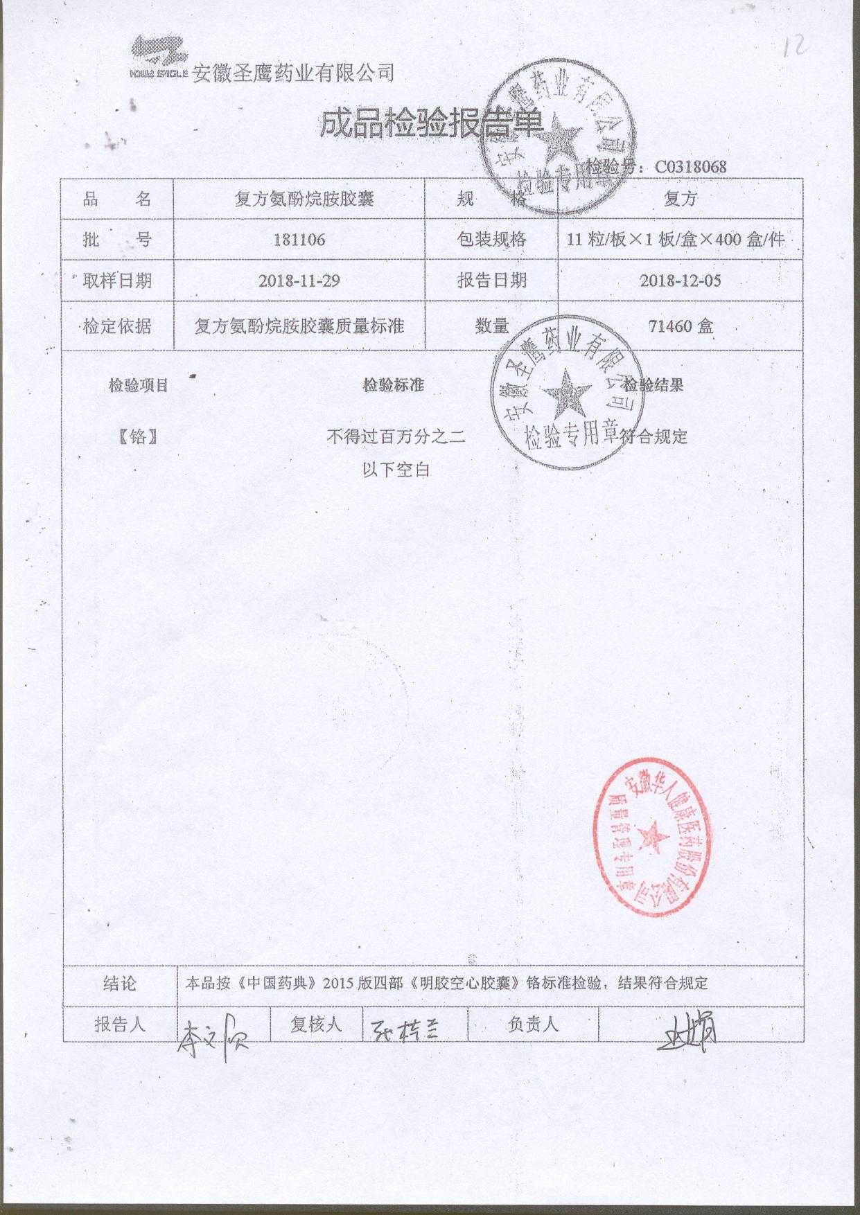 | 復方氨酚烷胺膠囊 | 11s*1 | 180309(鉻) | 查看詳情 |