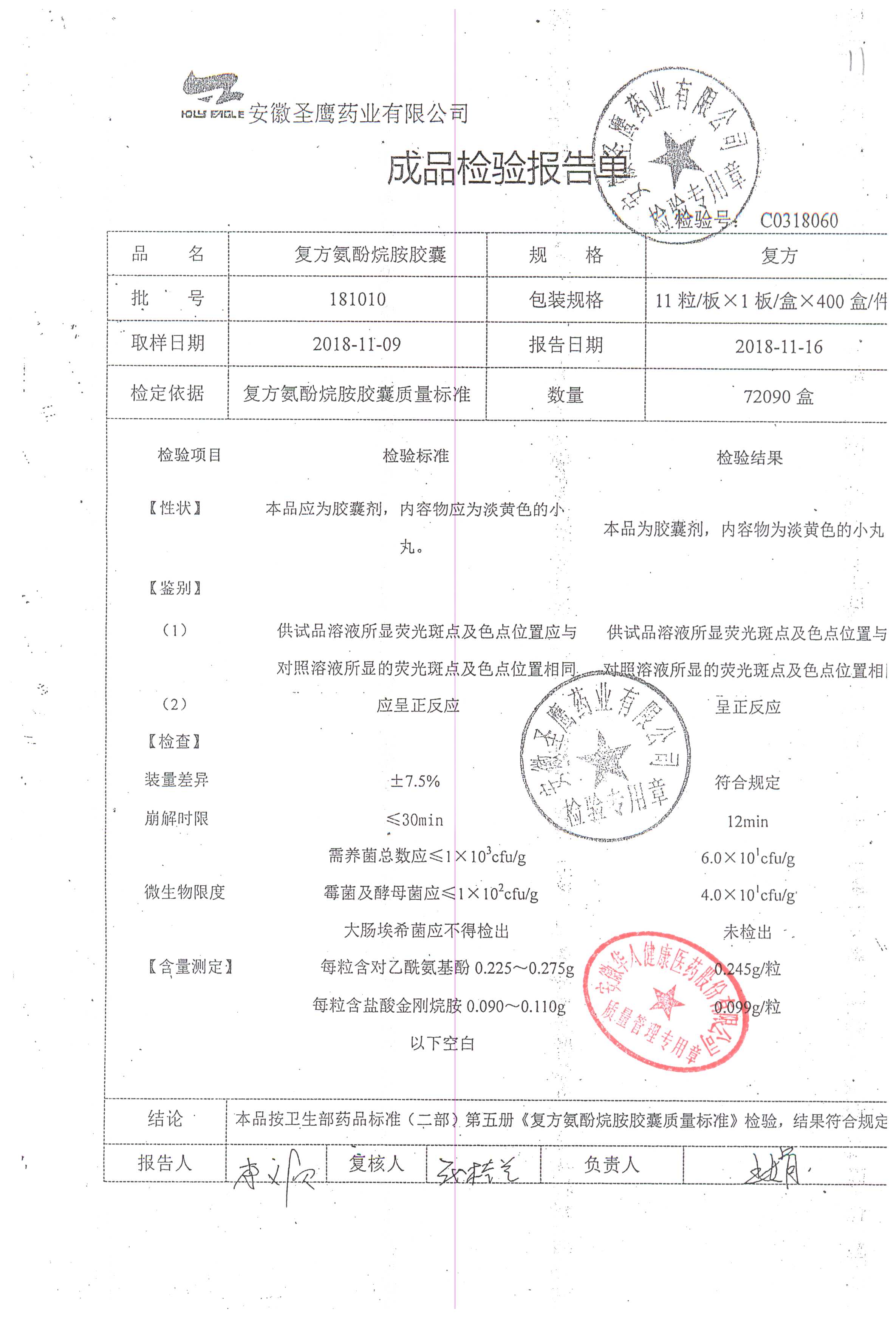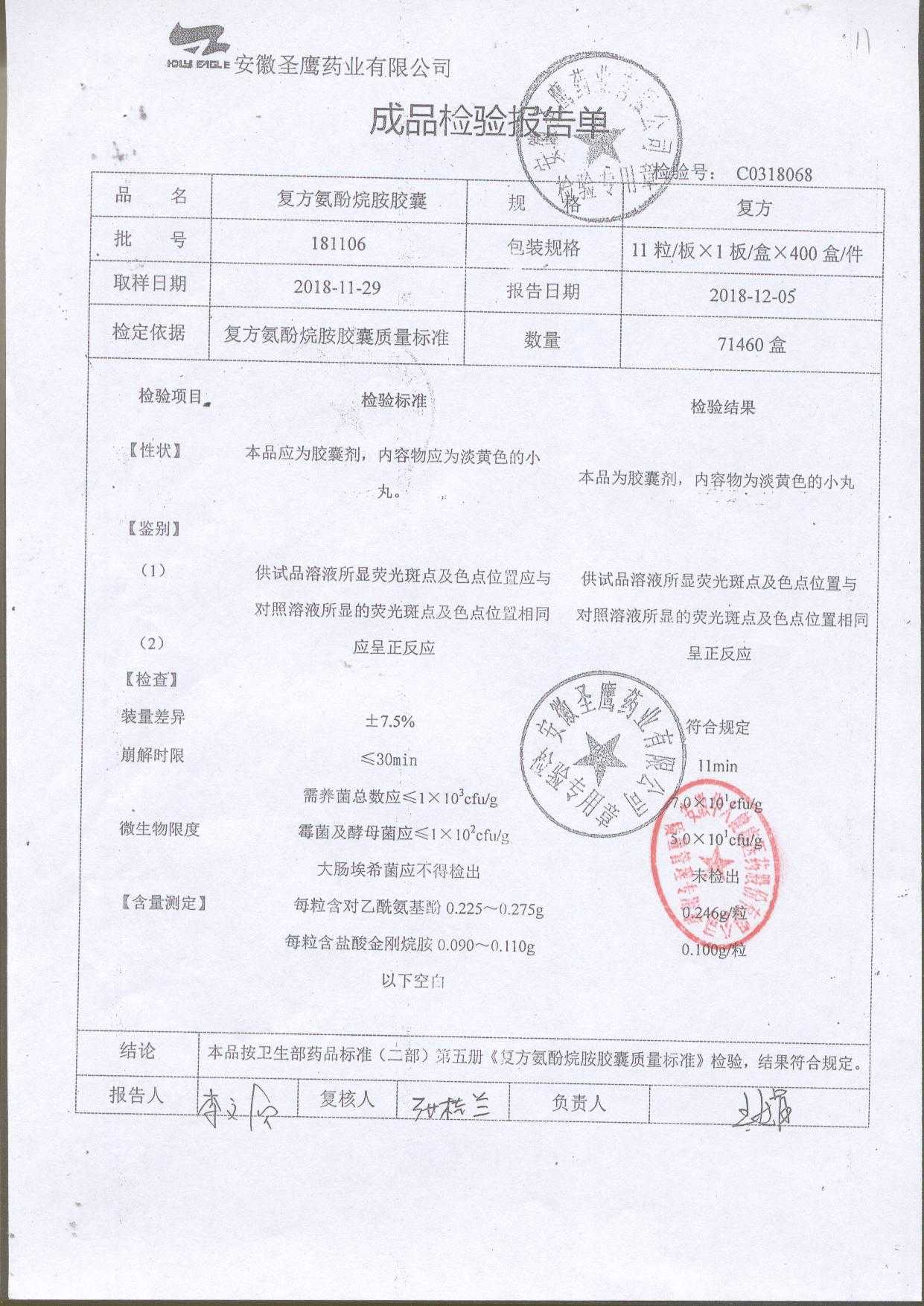 | 復方氨酚烷胺膠囊 | 11s*1 | 181106(1/2) | 查看詳情 |