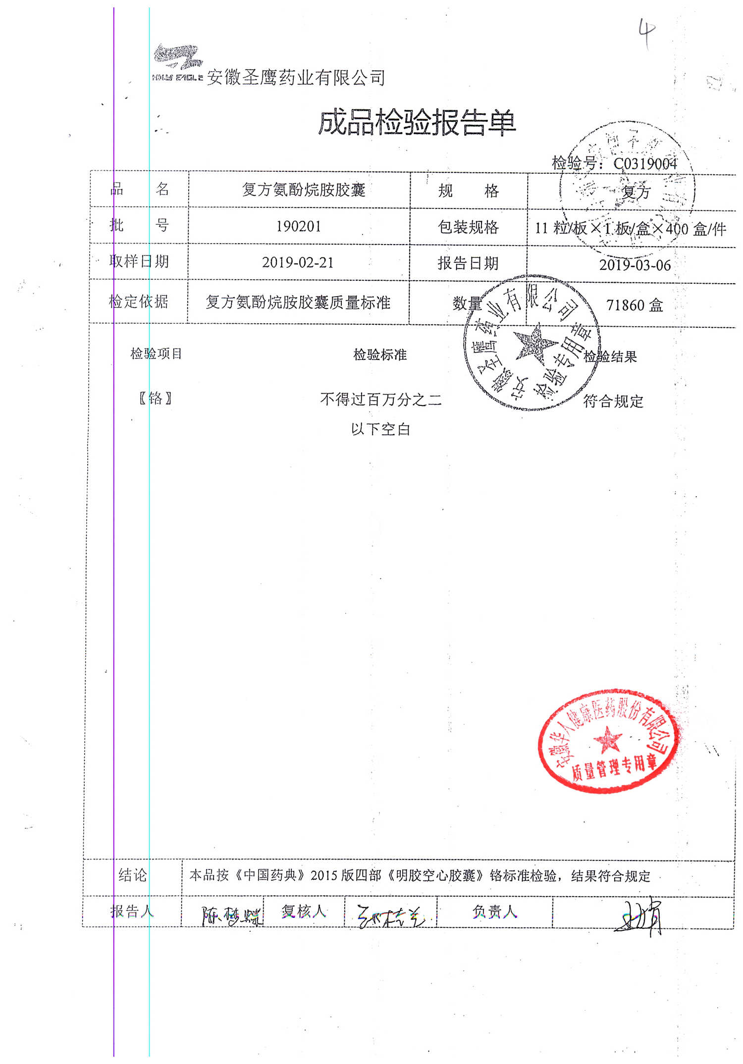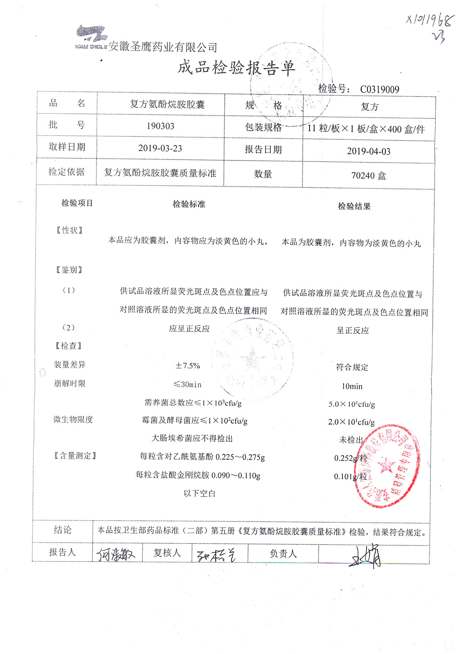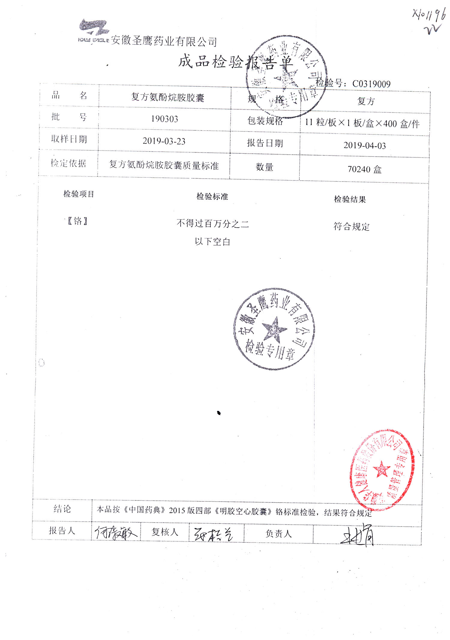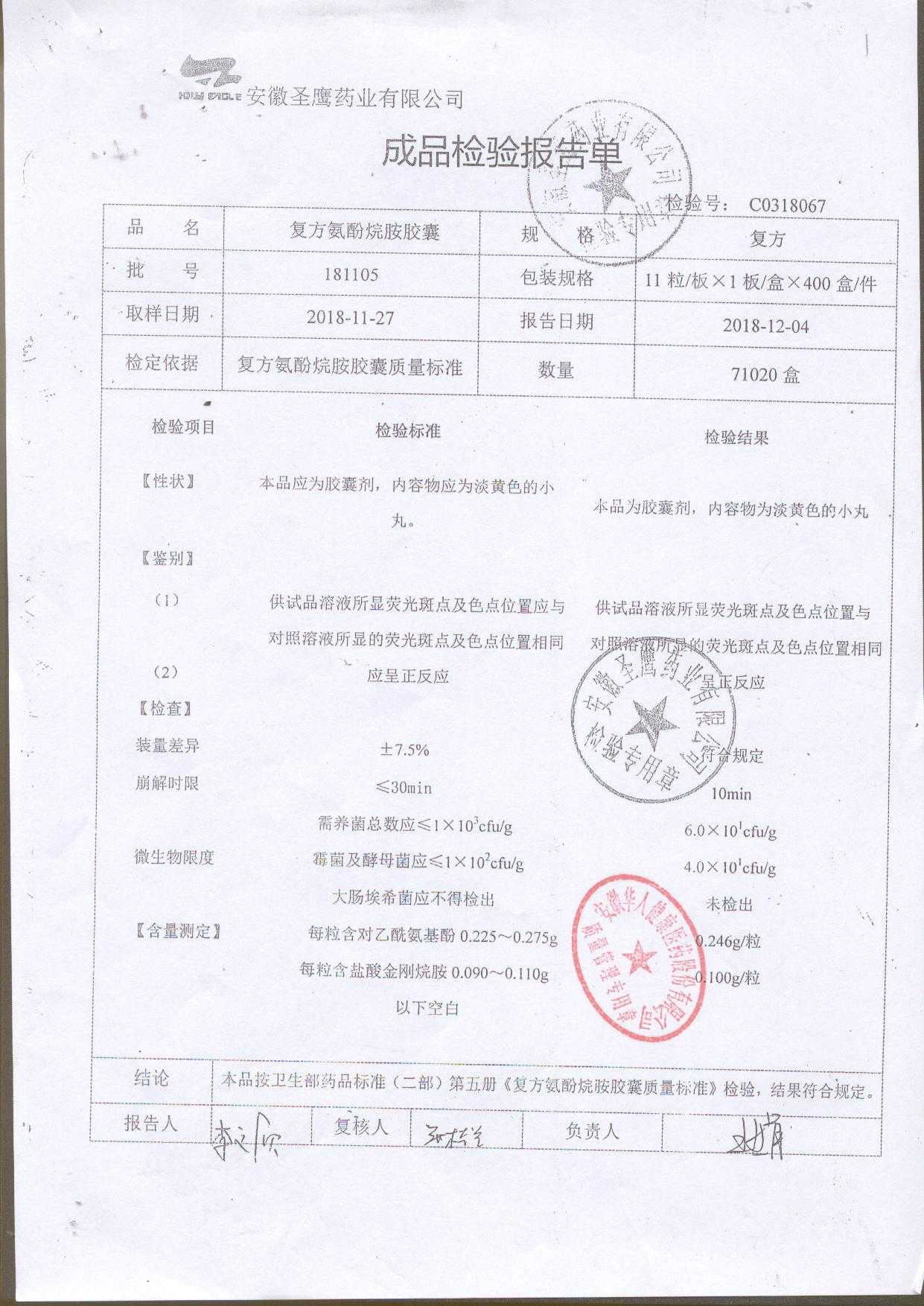 | 復方氨酚烷胺膠囊 | 11s*1 | 190502 | 查看詳情 |