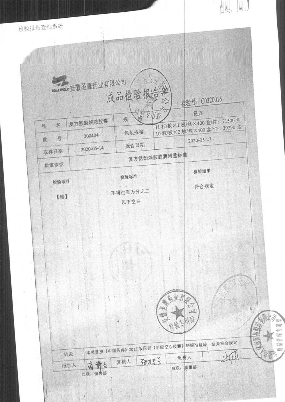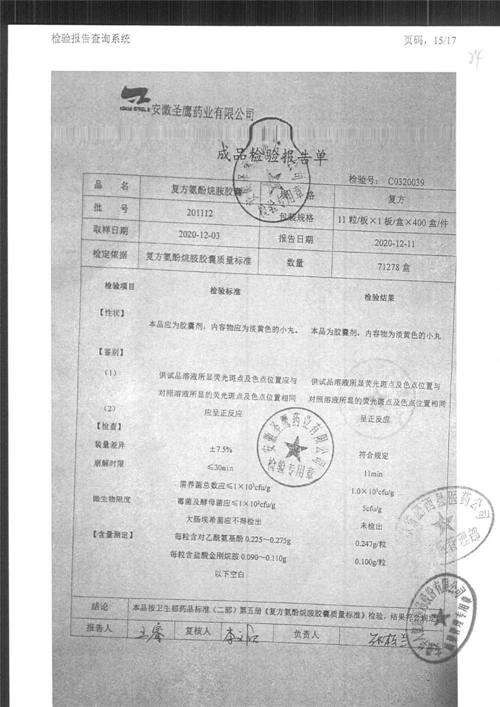 | 復方氨酚烷胺膠囊 | 11s*1 | 230411/2 | 查看詳情 |