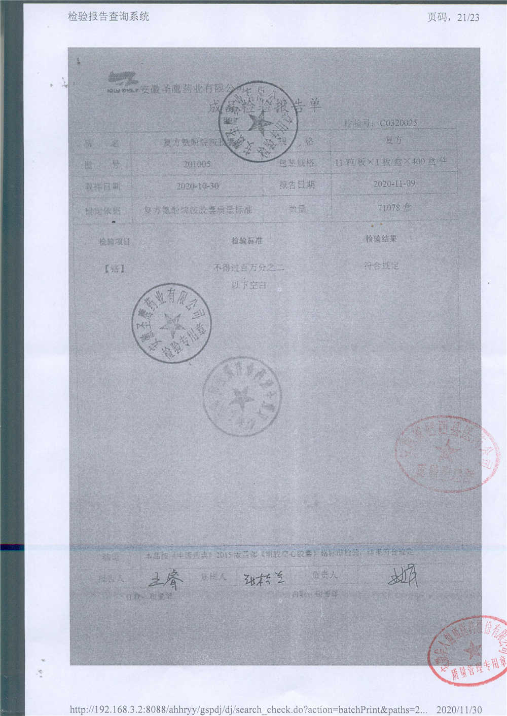 | 復方氨酚烷胺膠囊 | 11s*1 | 201112(2/2) | 查看詳情 |