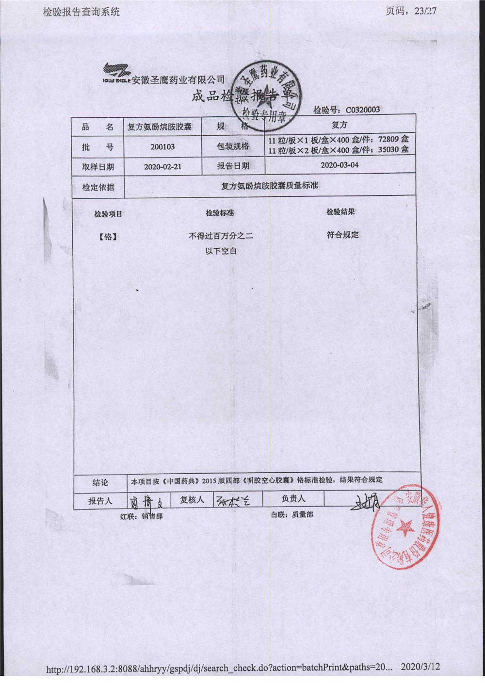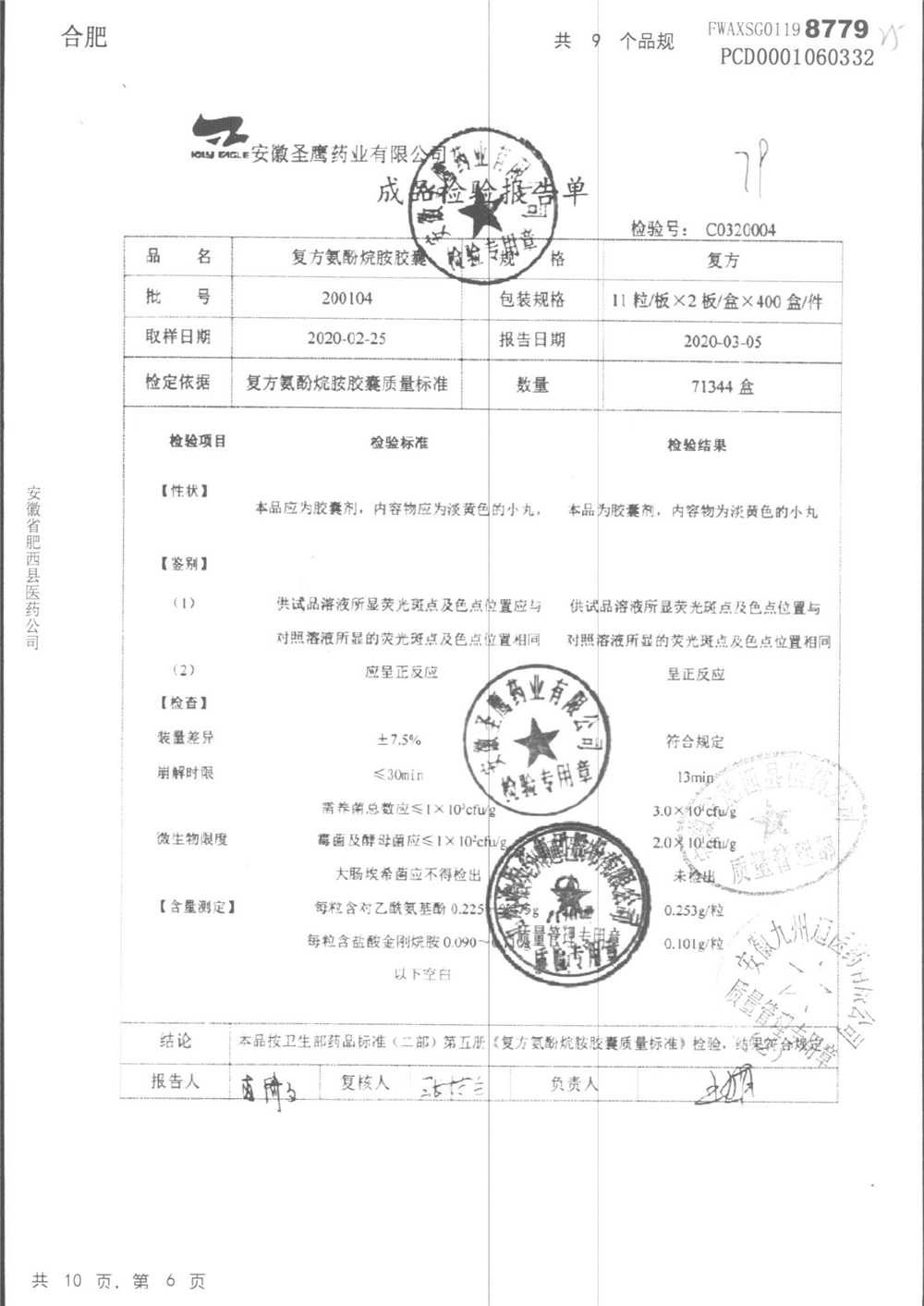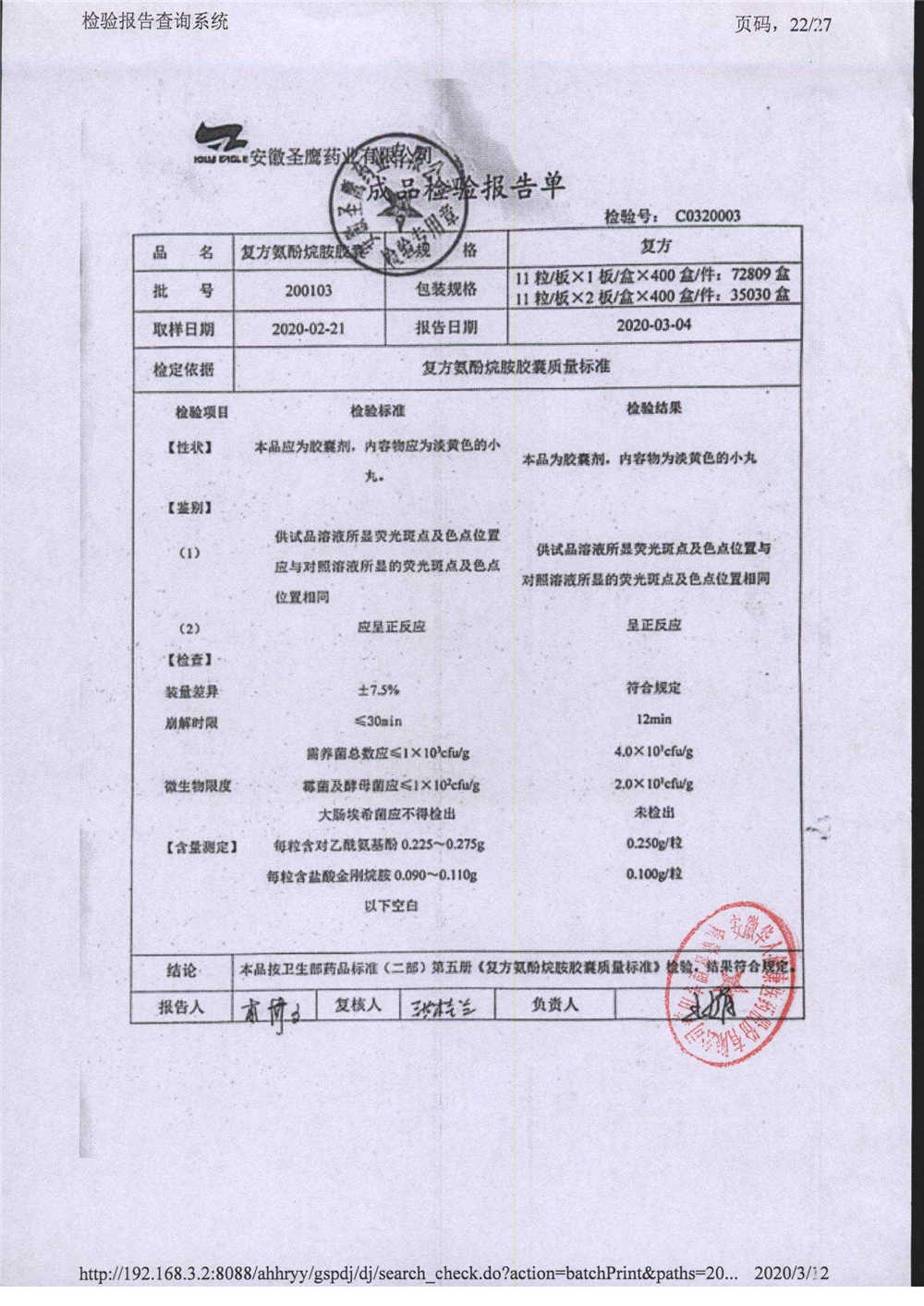 | 復方氨酚烷胺膠囊 | 11s*1 | 200404(2/2) | 查看詳情 |