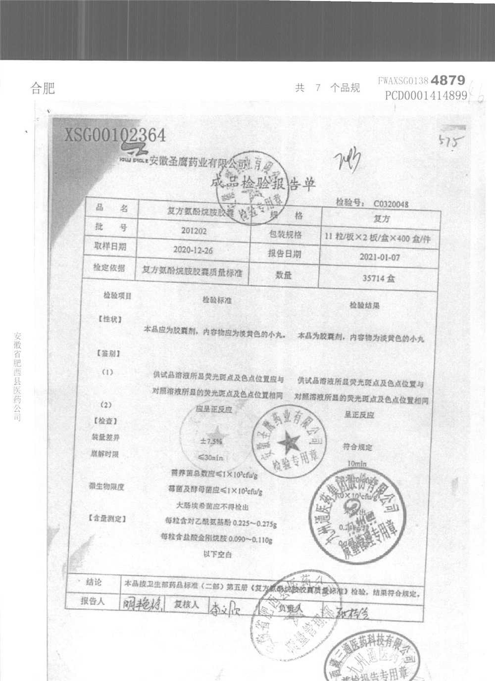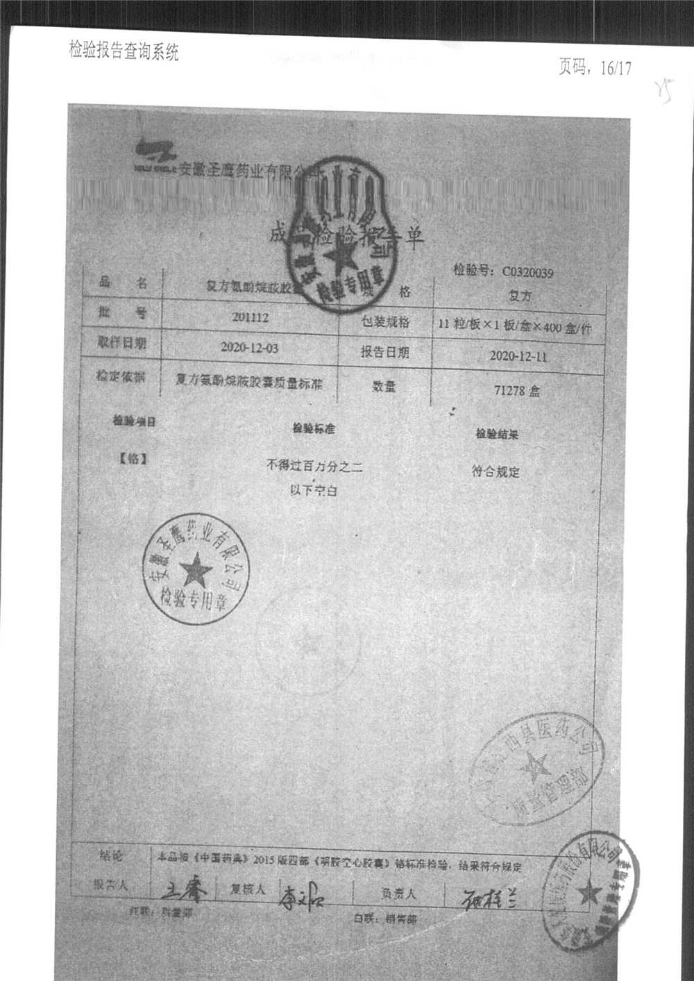 | 復方氨酚烷胺膠囊 | 11s*1 | 201201(1/2) | 查看詳情 |