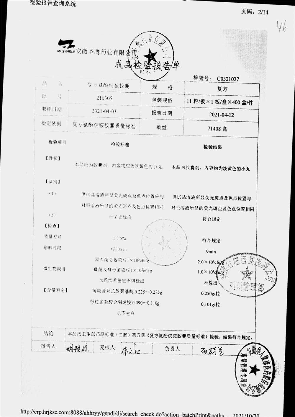 | 復方氨酚烷胺膠囊 | 11s*1 | 210307(1/2) | 查看詳情 |