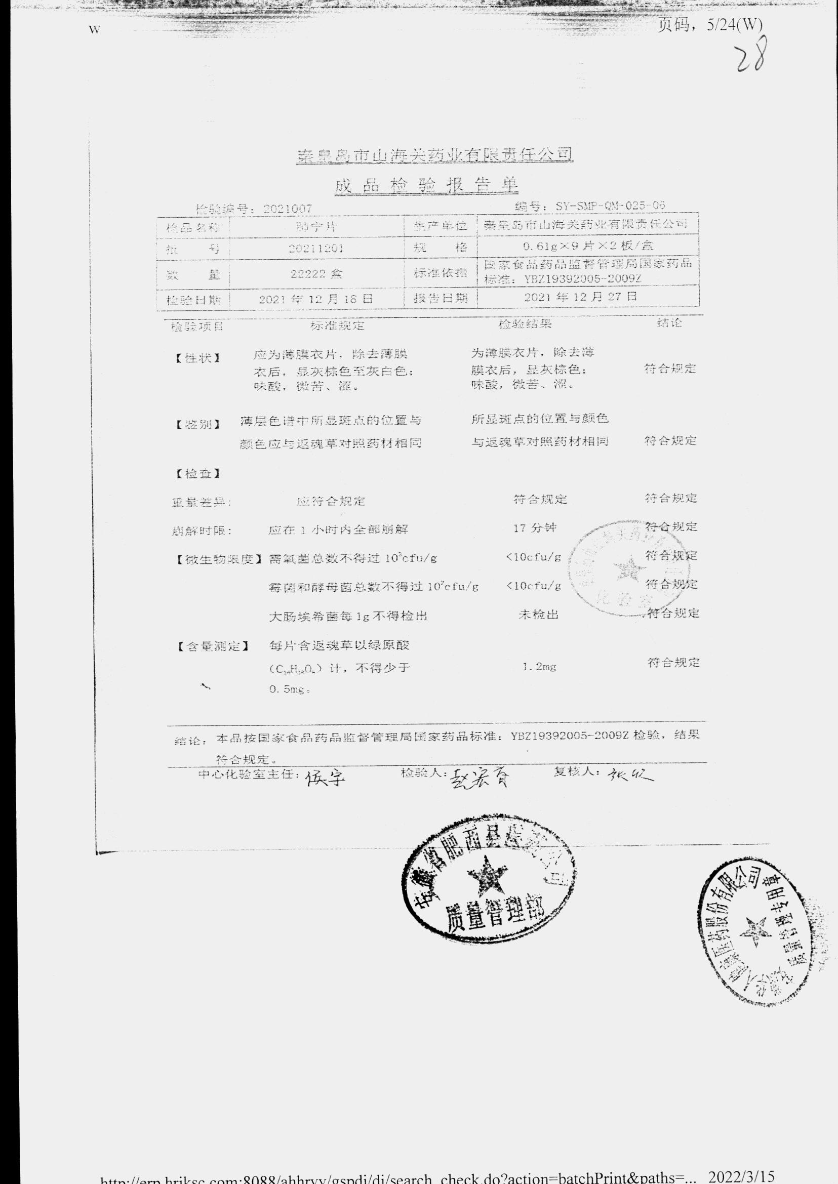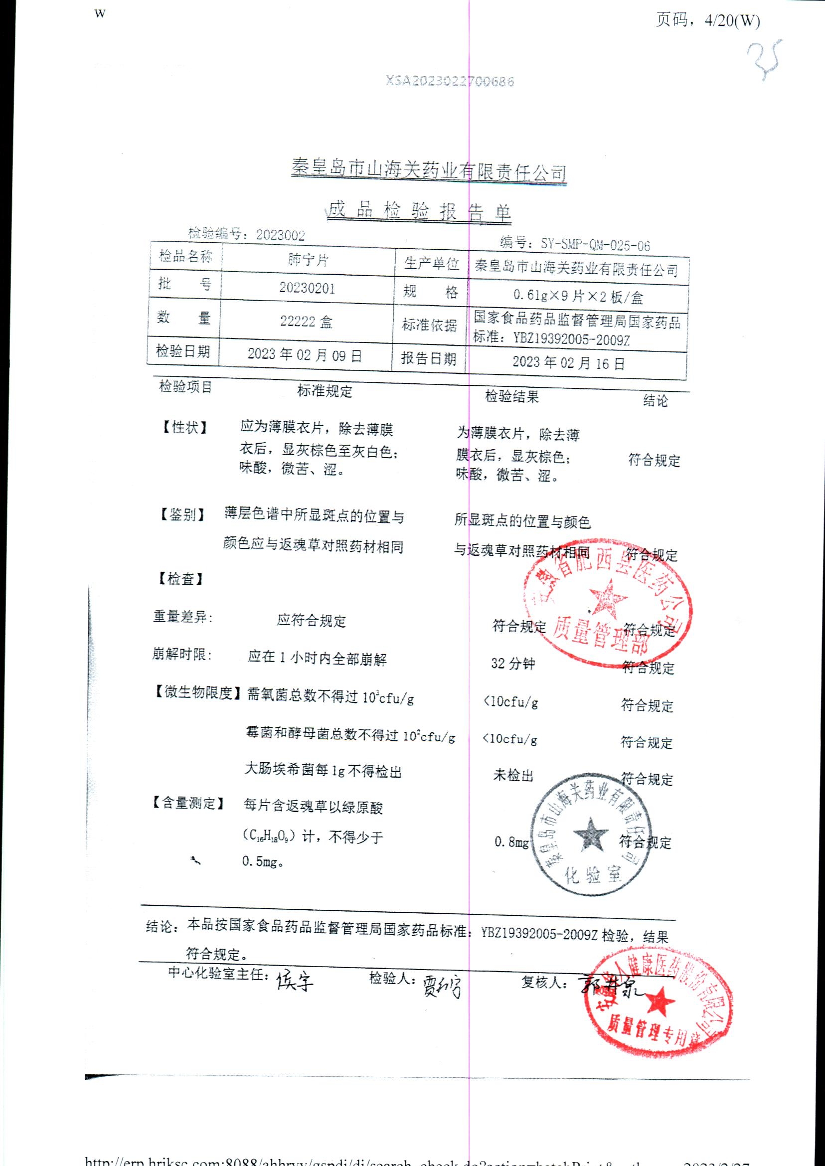 | 肺寧片 | 0.61g*18s | 20221203 | 查看詳情 |