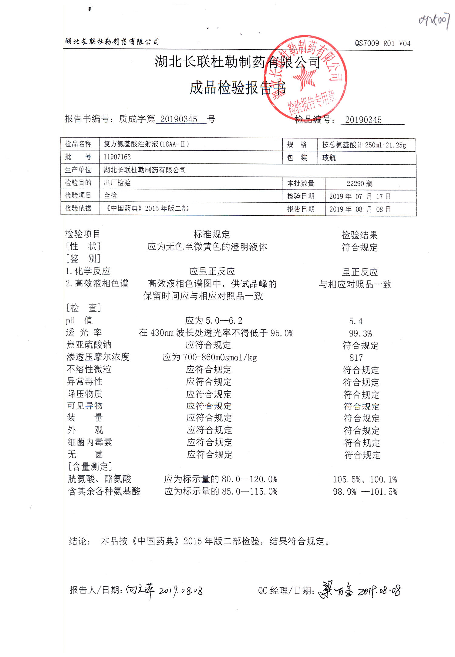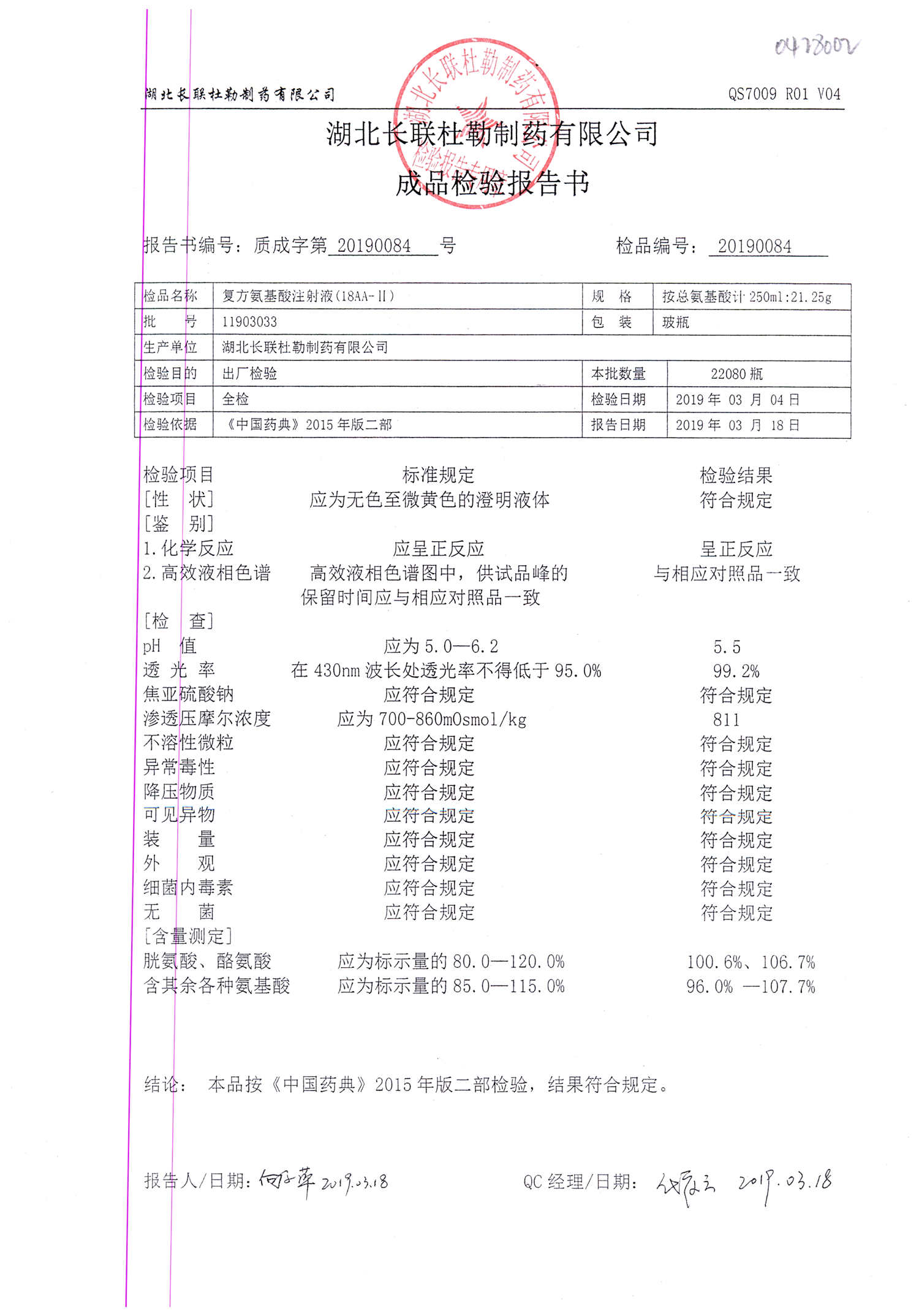 | 復(fù)方氨基酸注射液 | 250ml:21.25g | 11907162 | 查看詳情 |