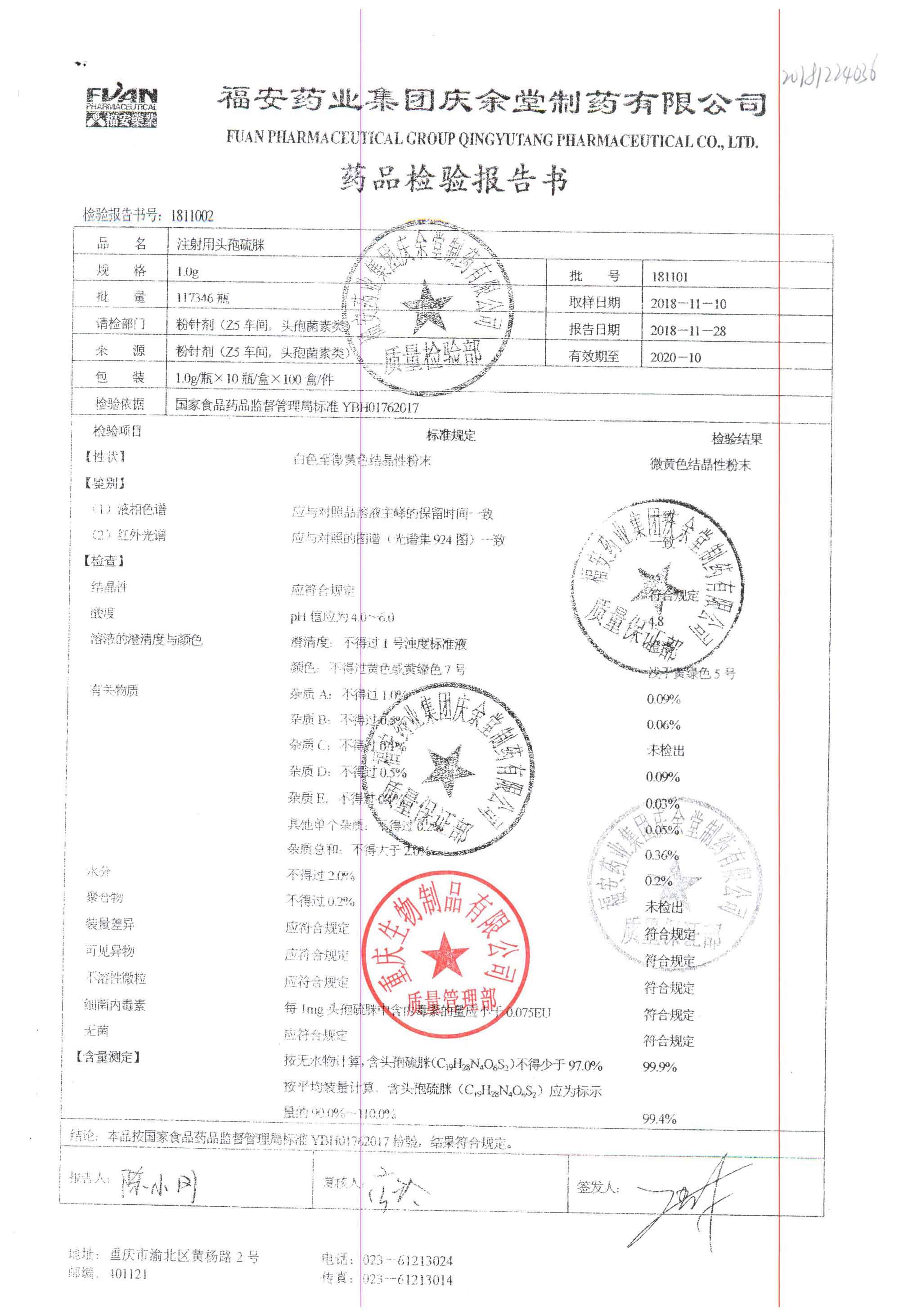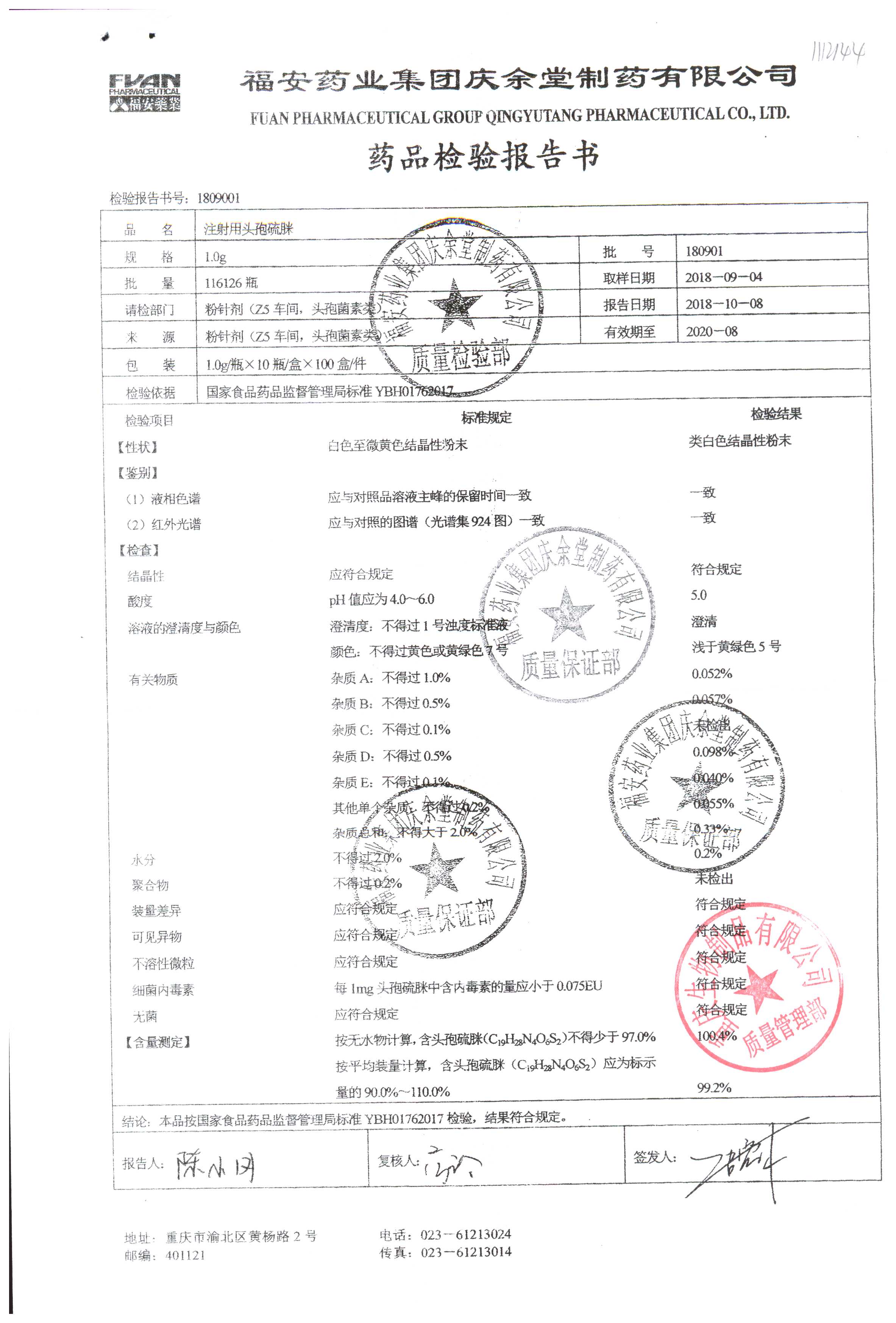 | 注射用頭孢硫脒 | 1g*10瓶 | 180901 | 查看詳情 |
