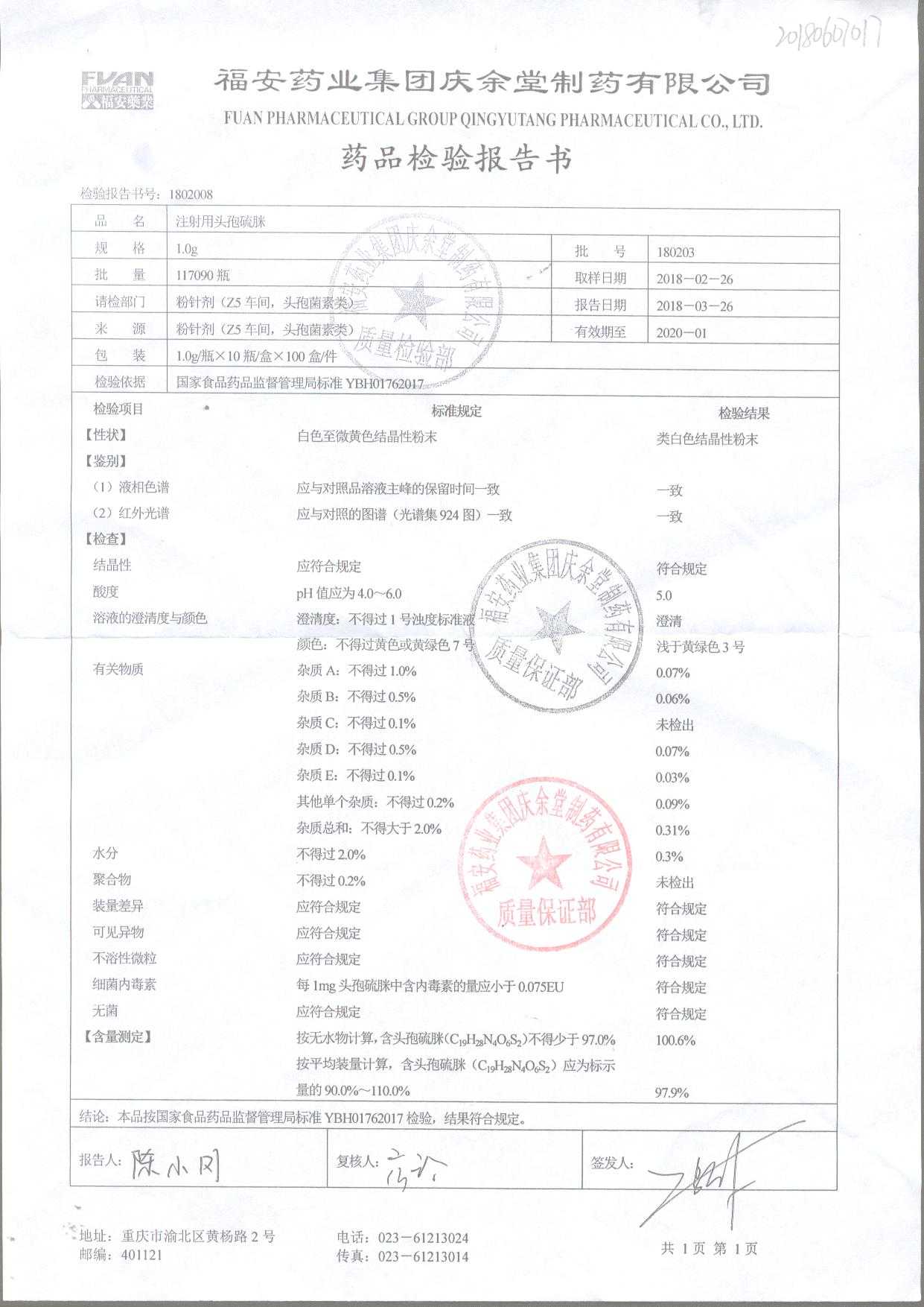 | 注射用頭孢硫脒 | 1g*10瓶 | 180401 | 查看詳情 |