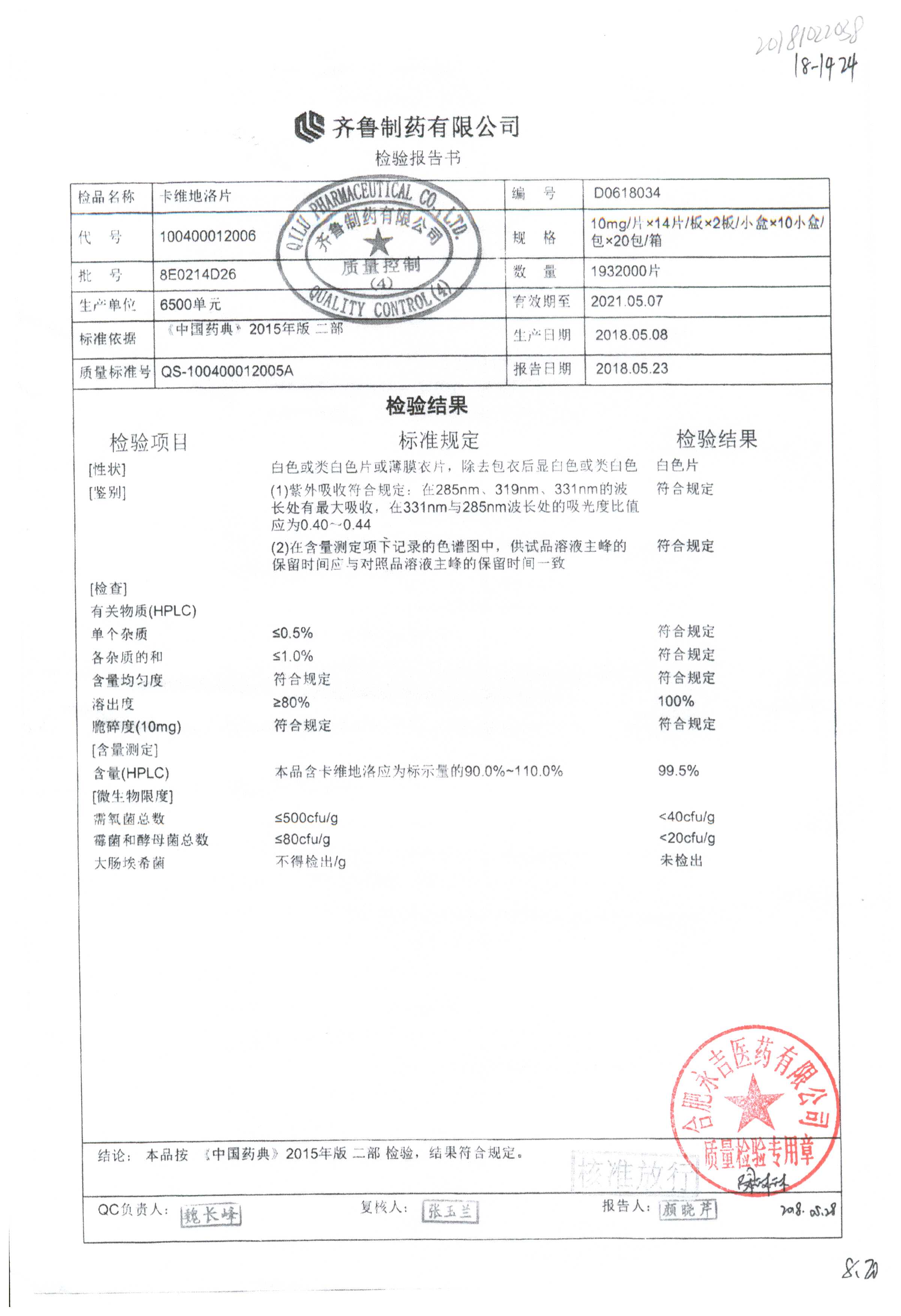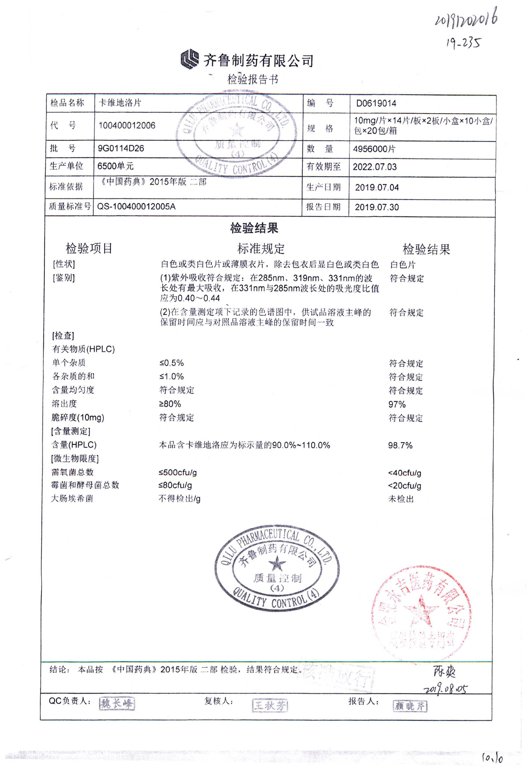 | 卡維地洛片 | 10mg*14*2 | 8C0124D26 | 查看詳情 |