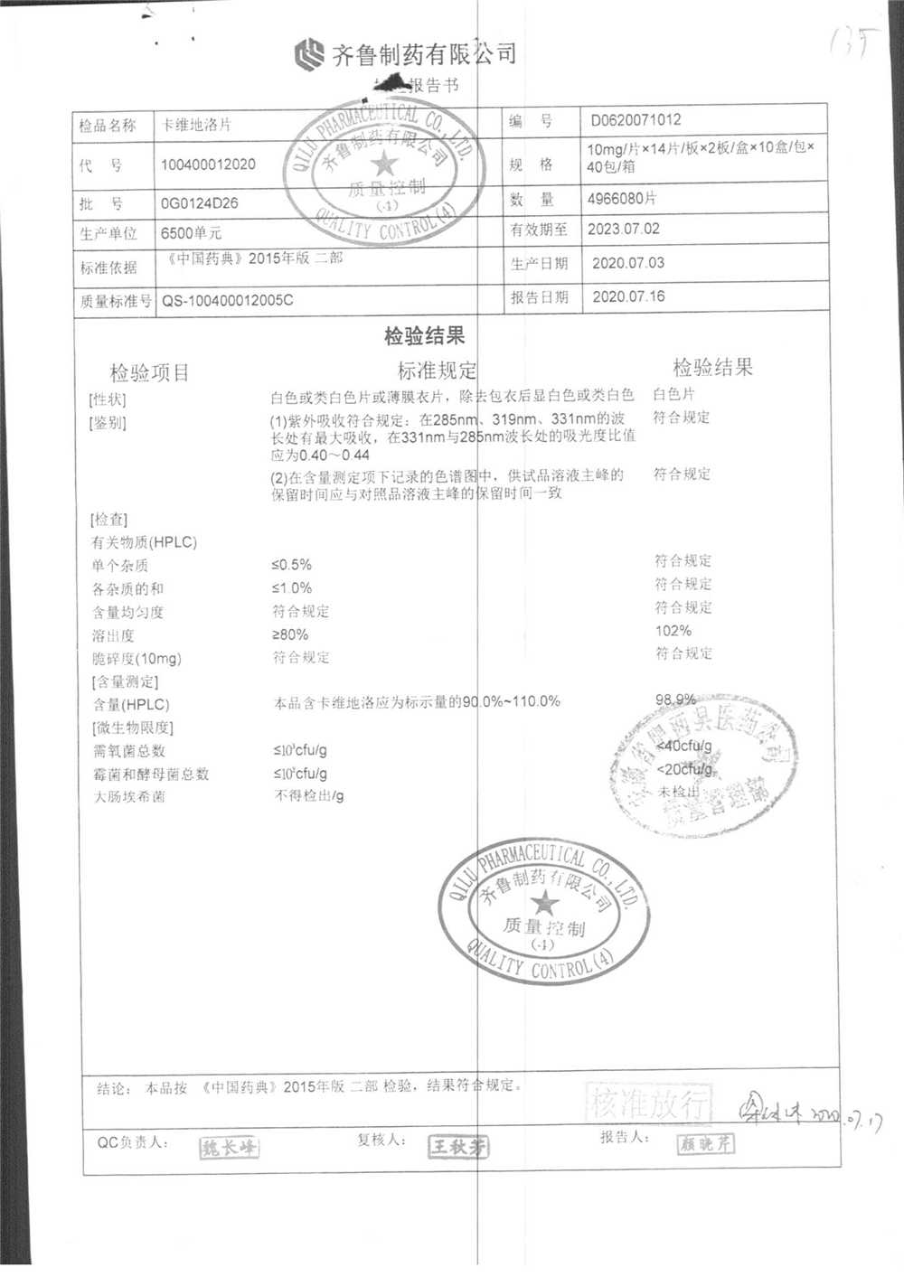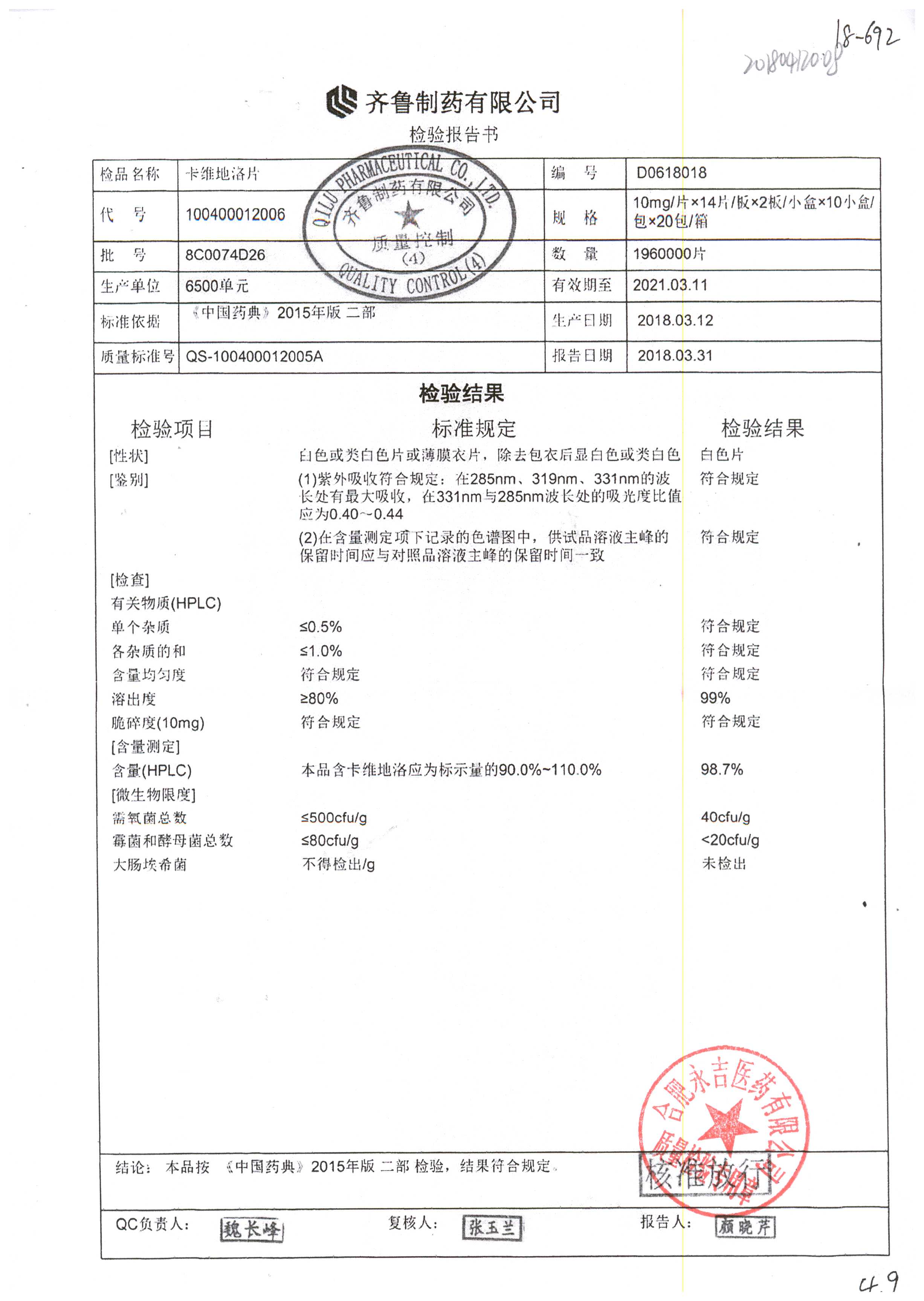 | 卡維地洛片 | 10mg*14*2 | 8C0104D26 | 查看詳情 |
