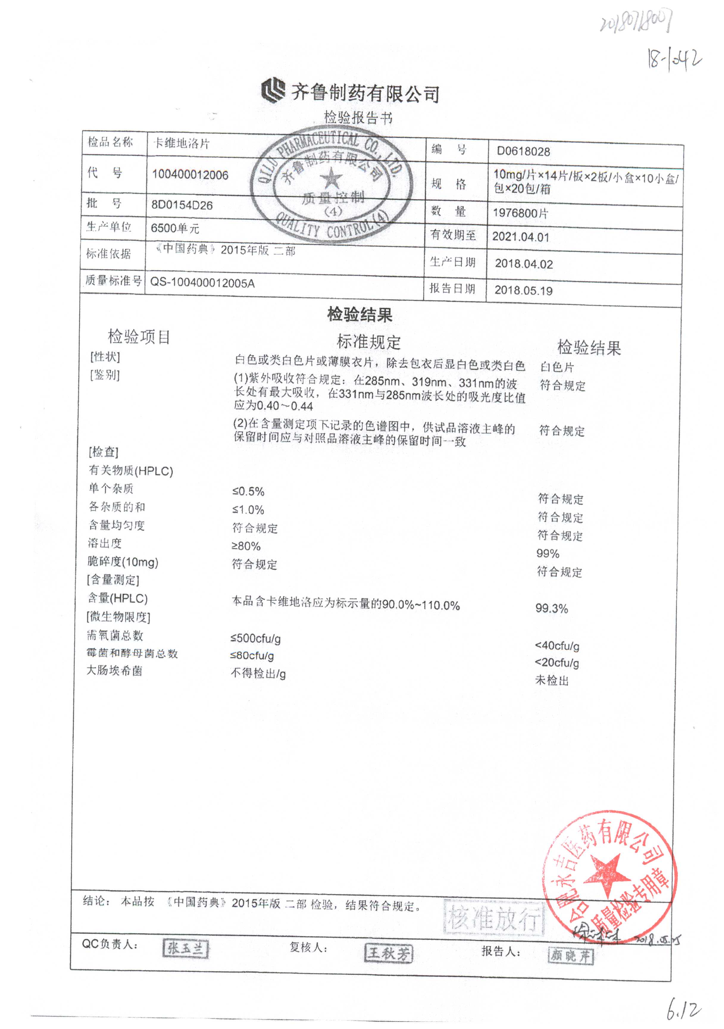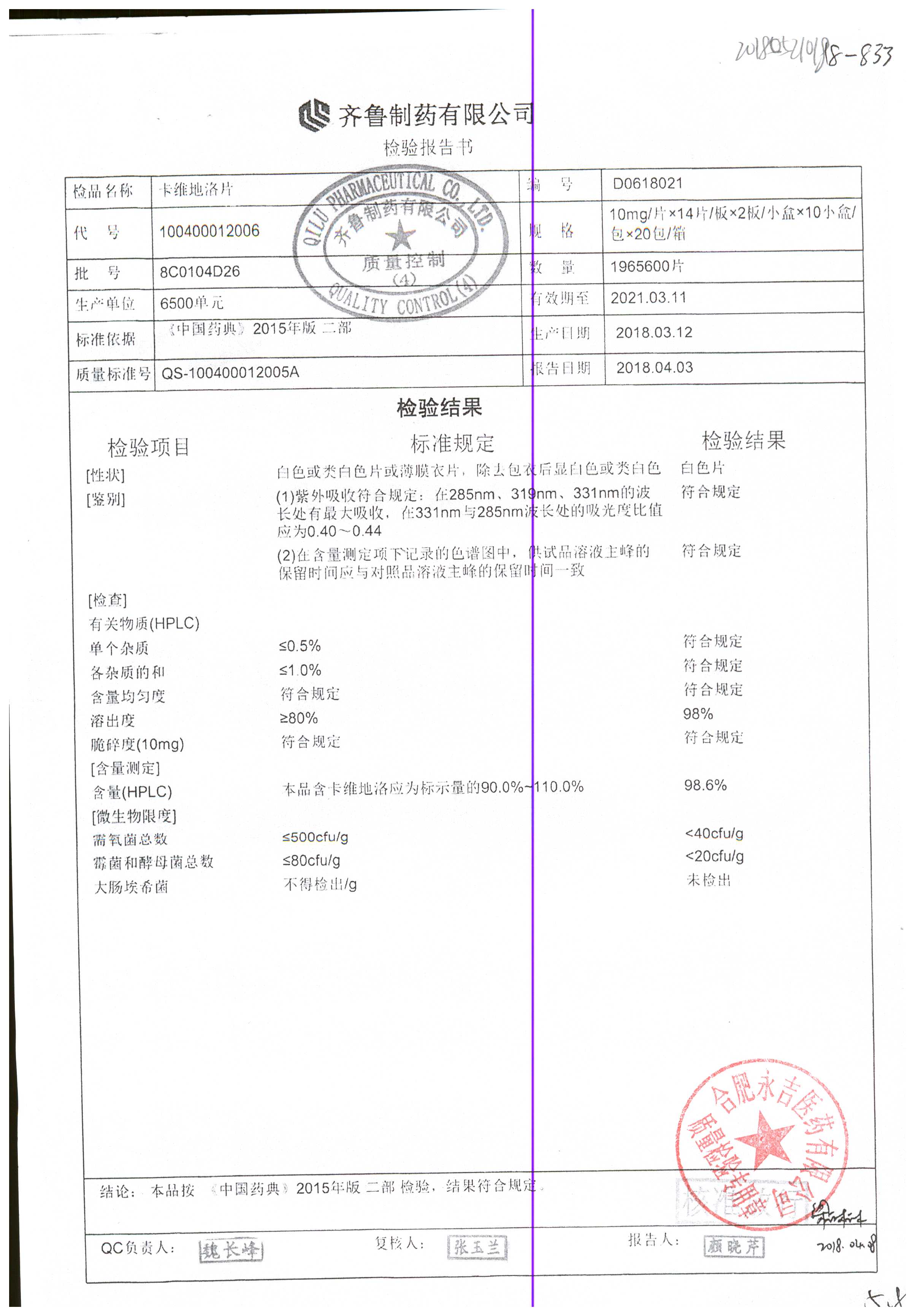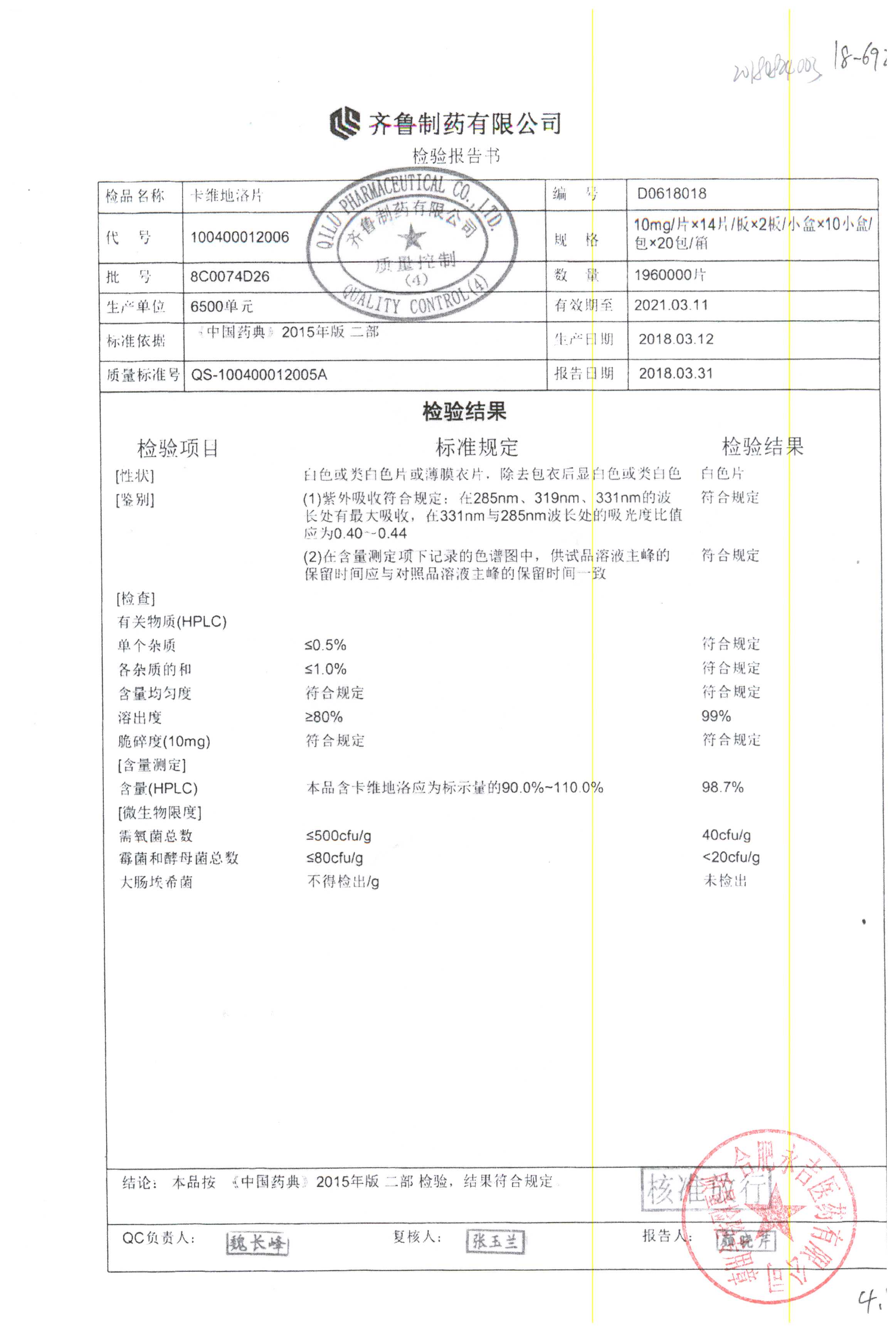 | 卡維地洛片 | 10mg*14*2 | 8D0154D26 | 查看詳情 |