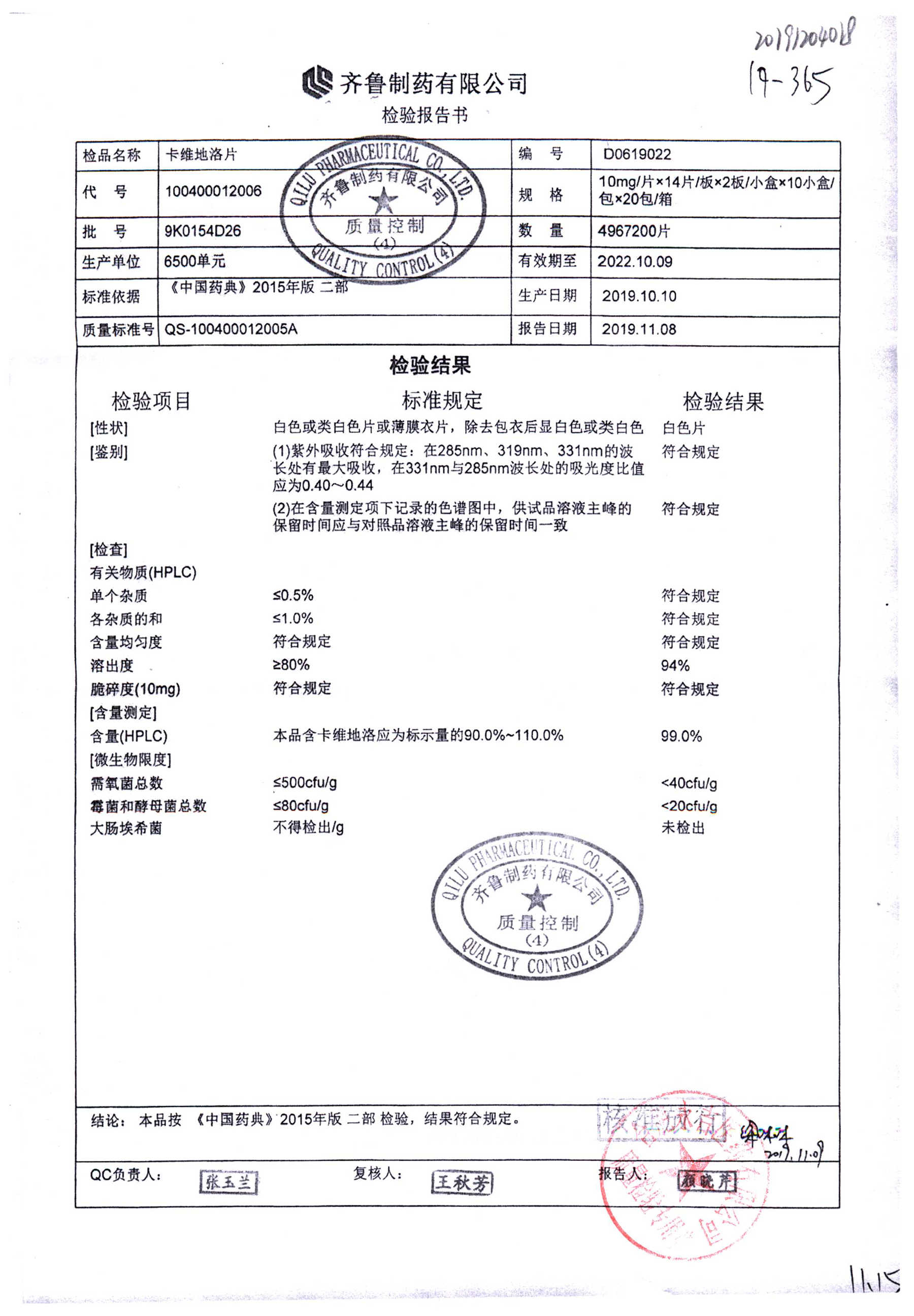 | 卡維地洛片 | 10mg*14*2 | 9G0114D26 | 查看詳情 |