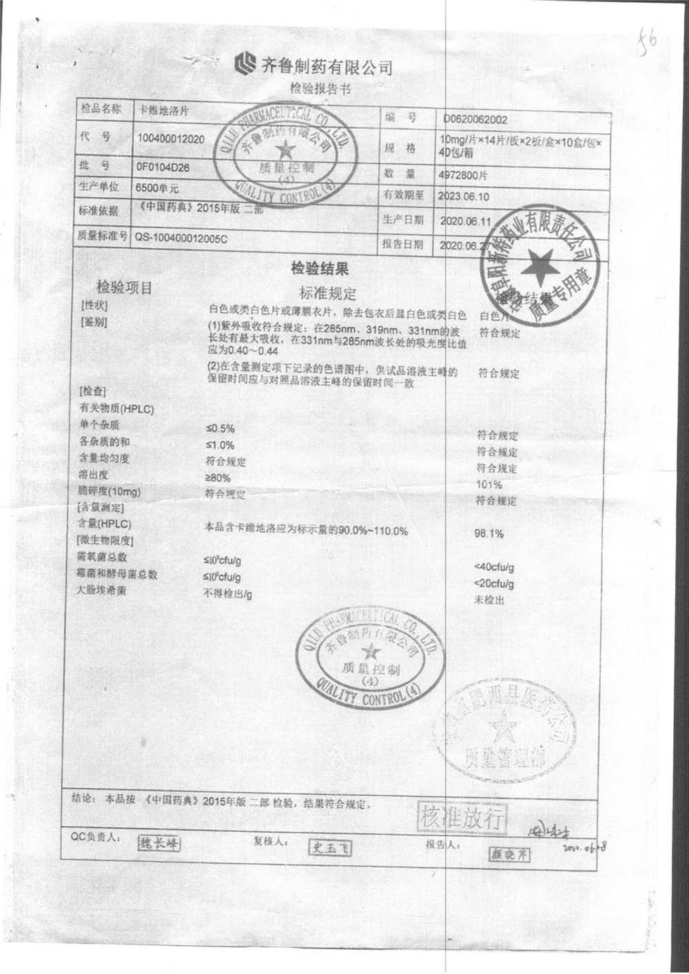 | 卡維地洛片 | 10mg*14*2 | 0F0104D26 | 查看詳情 |
