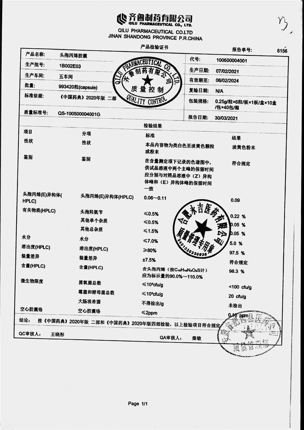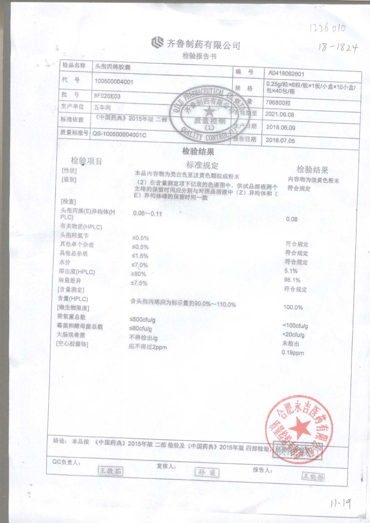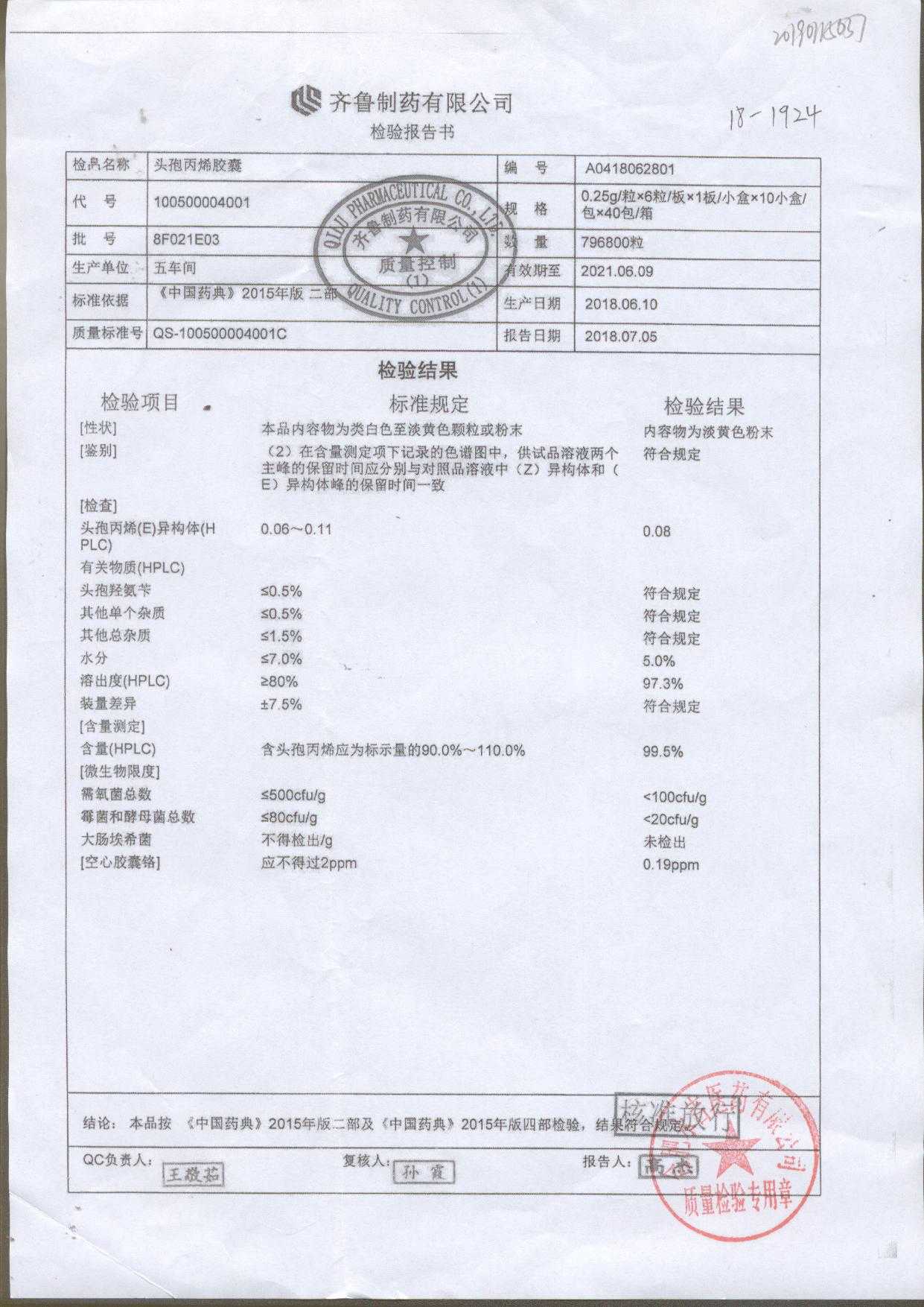 | 頭孢丙烯膠囊 | 0.25g*6s | 8J030E03 | 查看詳情 |