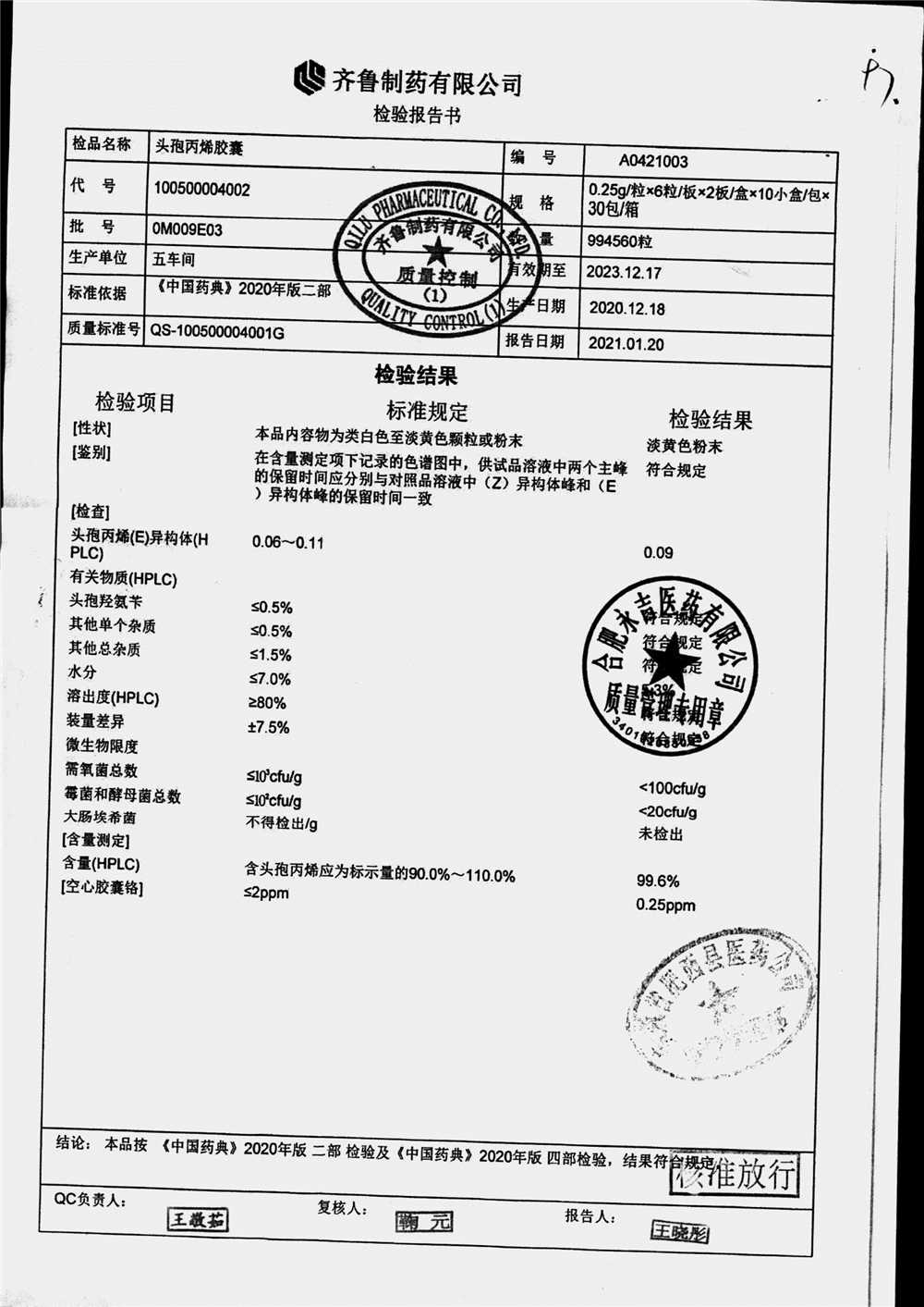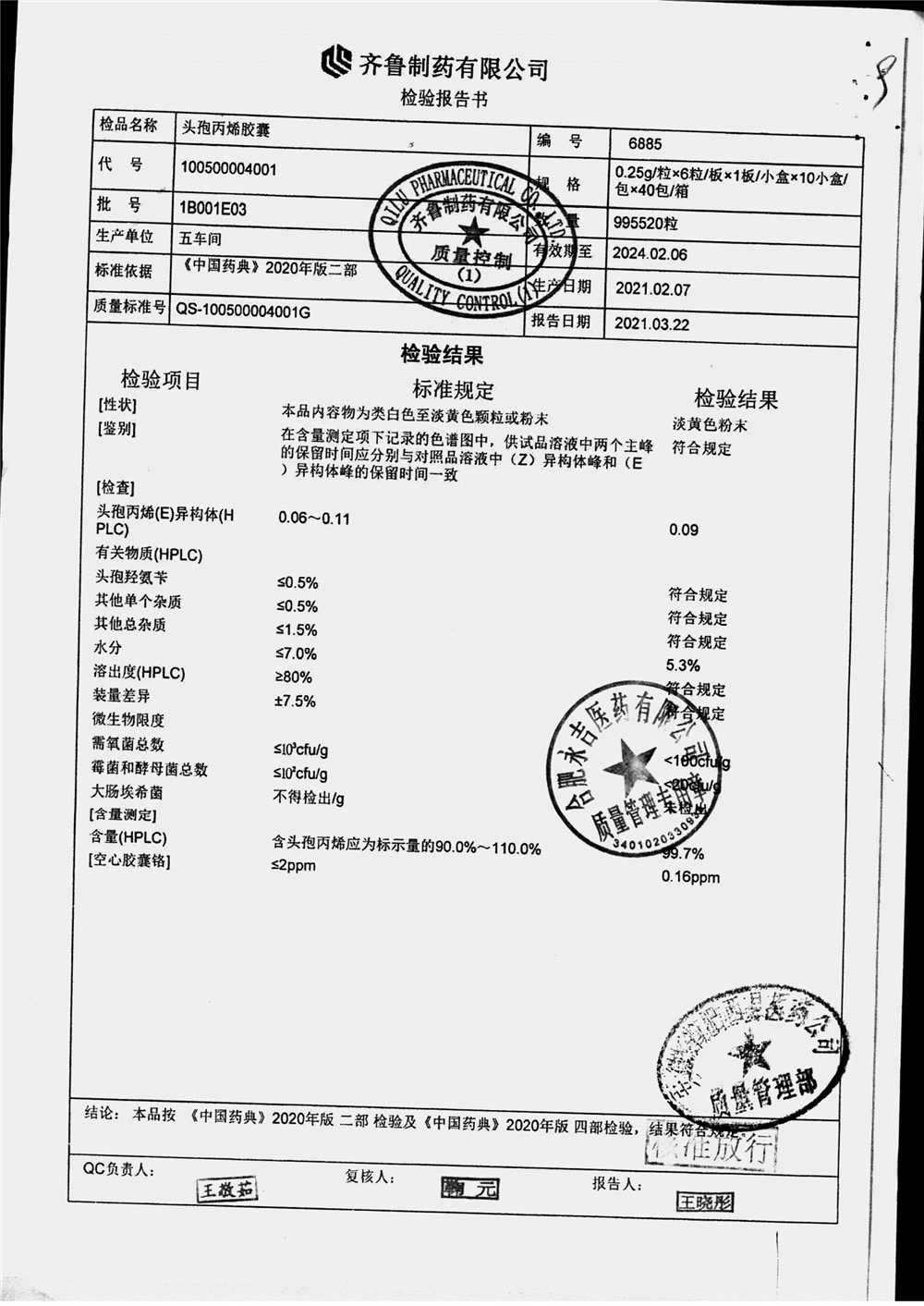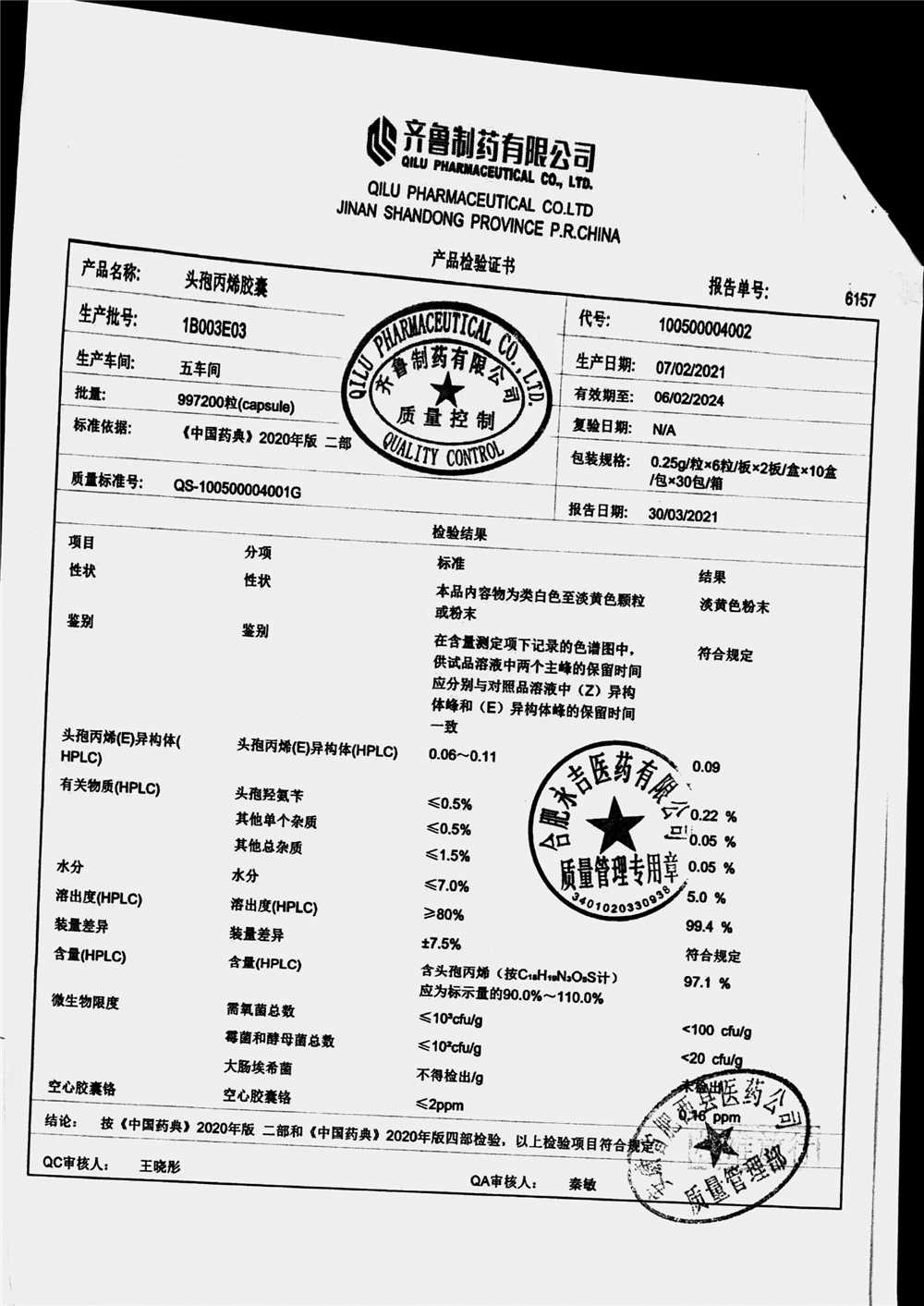 | 頭孢丙烯膠囊 | 0.25g*6s | 8J030E03 | 查看詳情 |