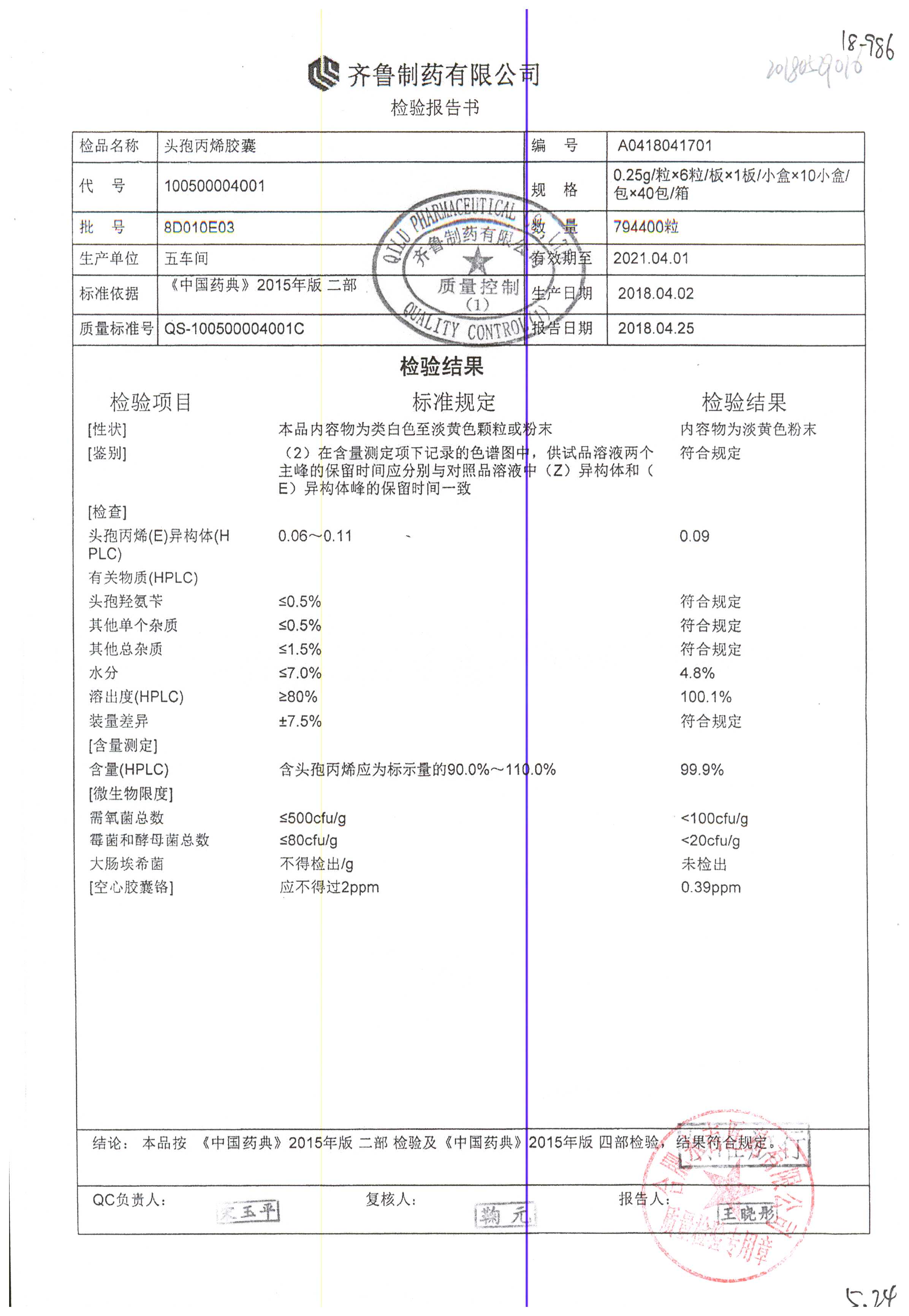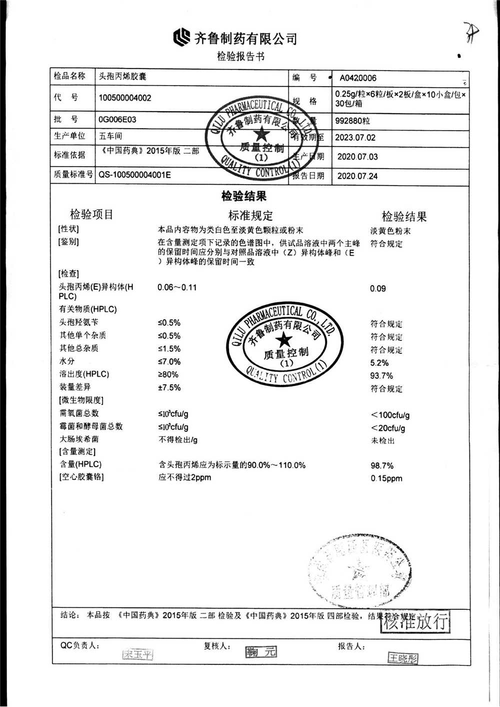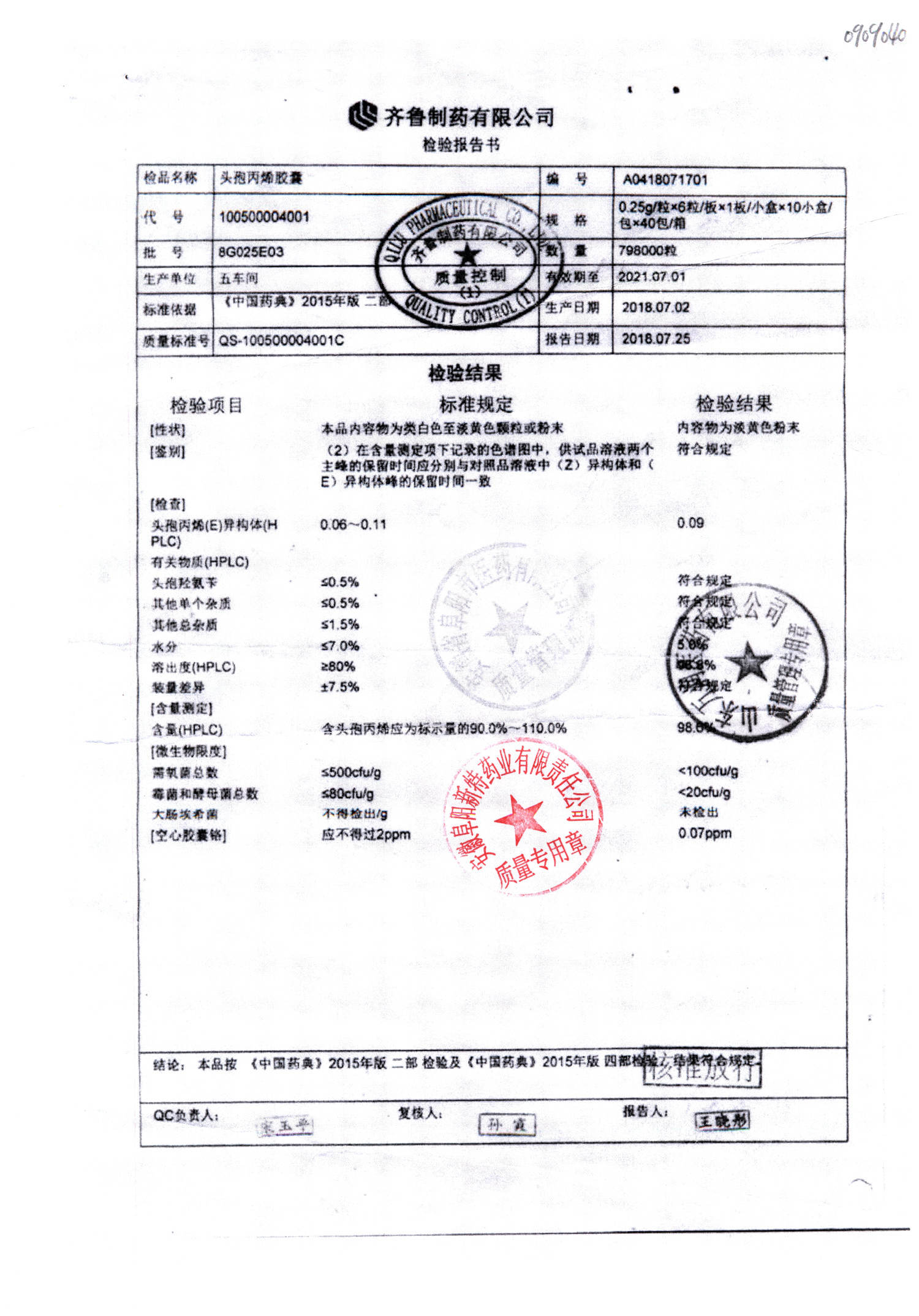 | 頭孢丙烯膠囊 | 0.25g*6s | 8G025E03 | 查看詳情 |