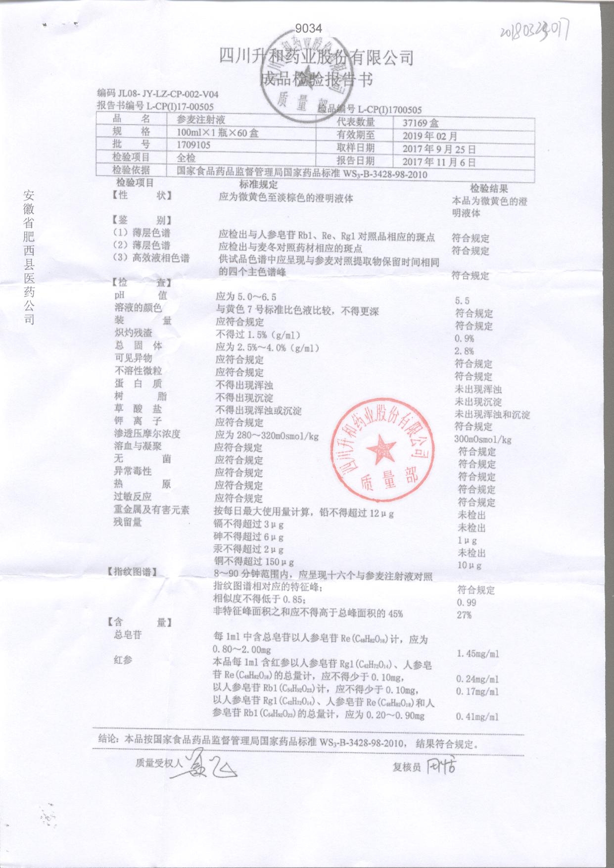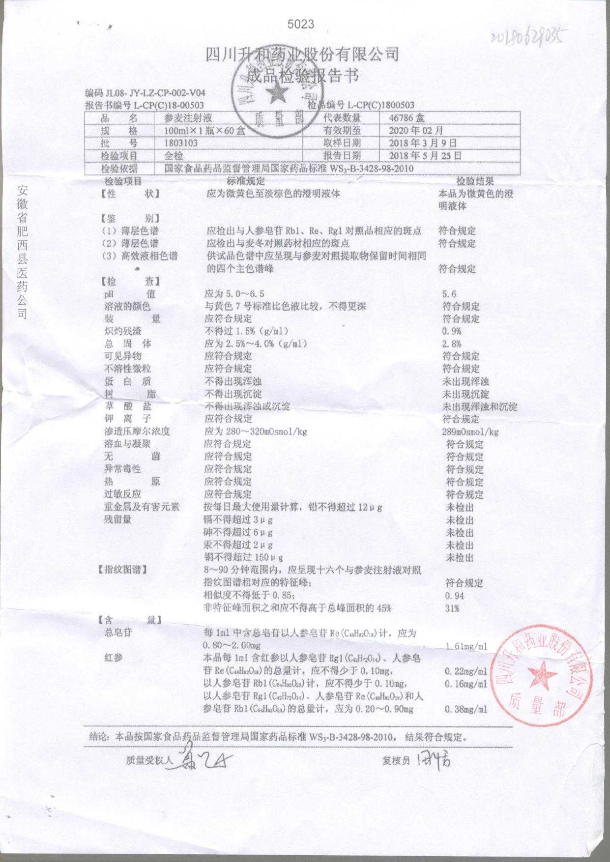 | 參麥注射液 | 100ml*1瓶 | 1803103 | 查看詳情 |