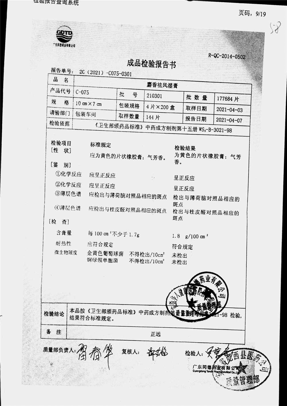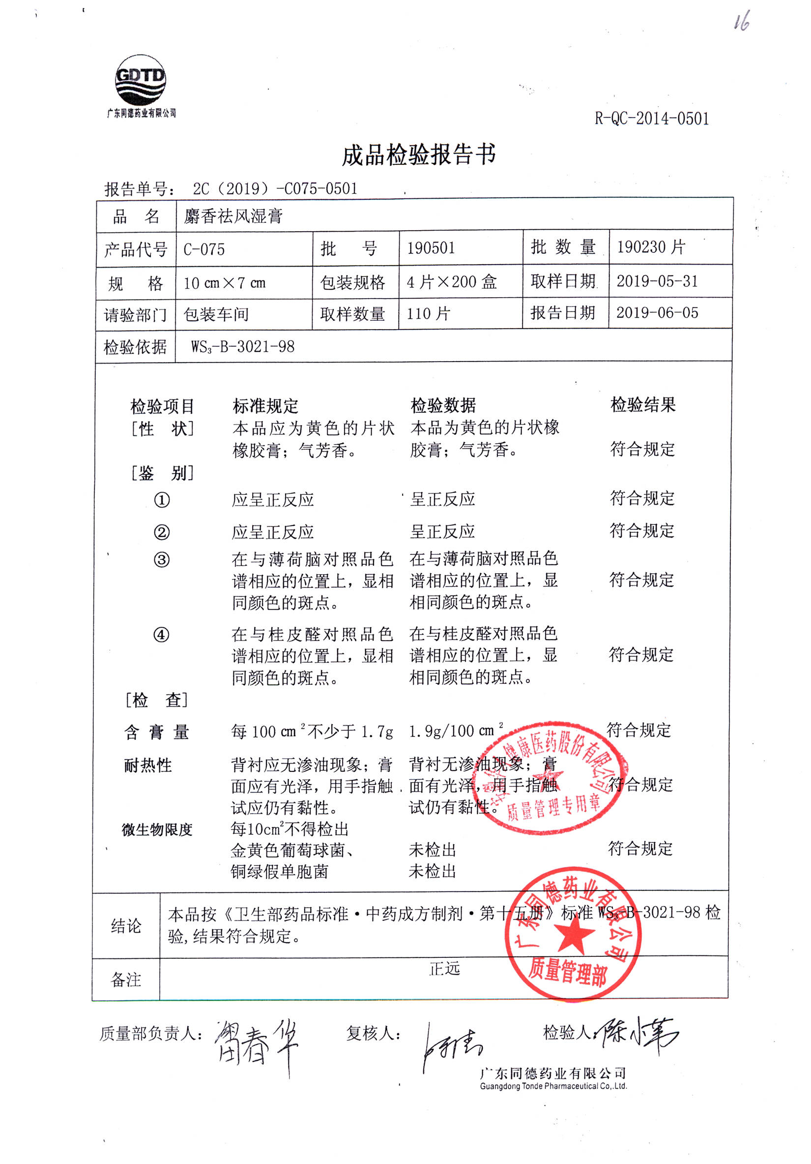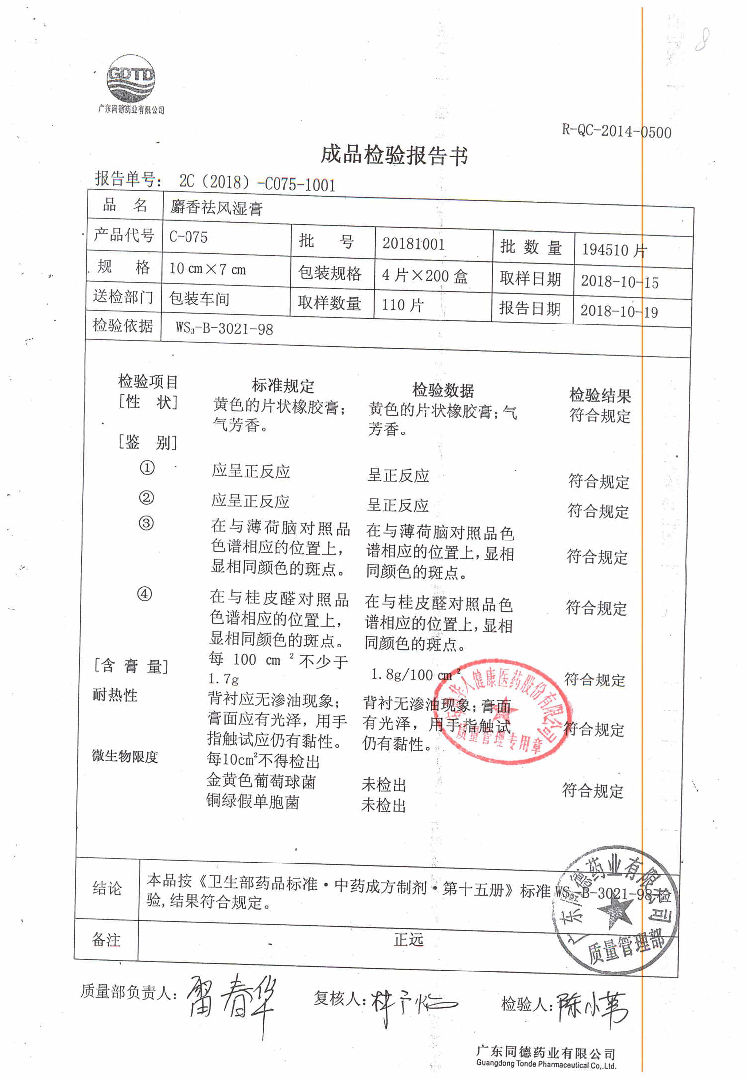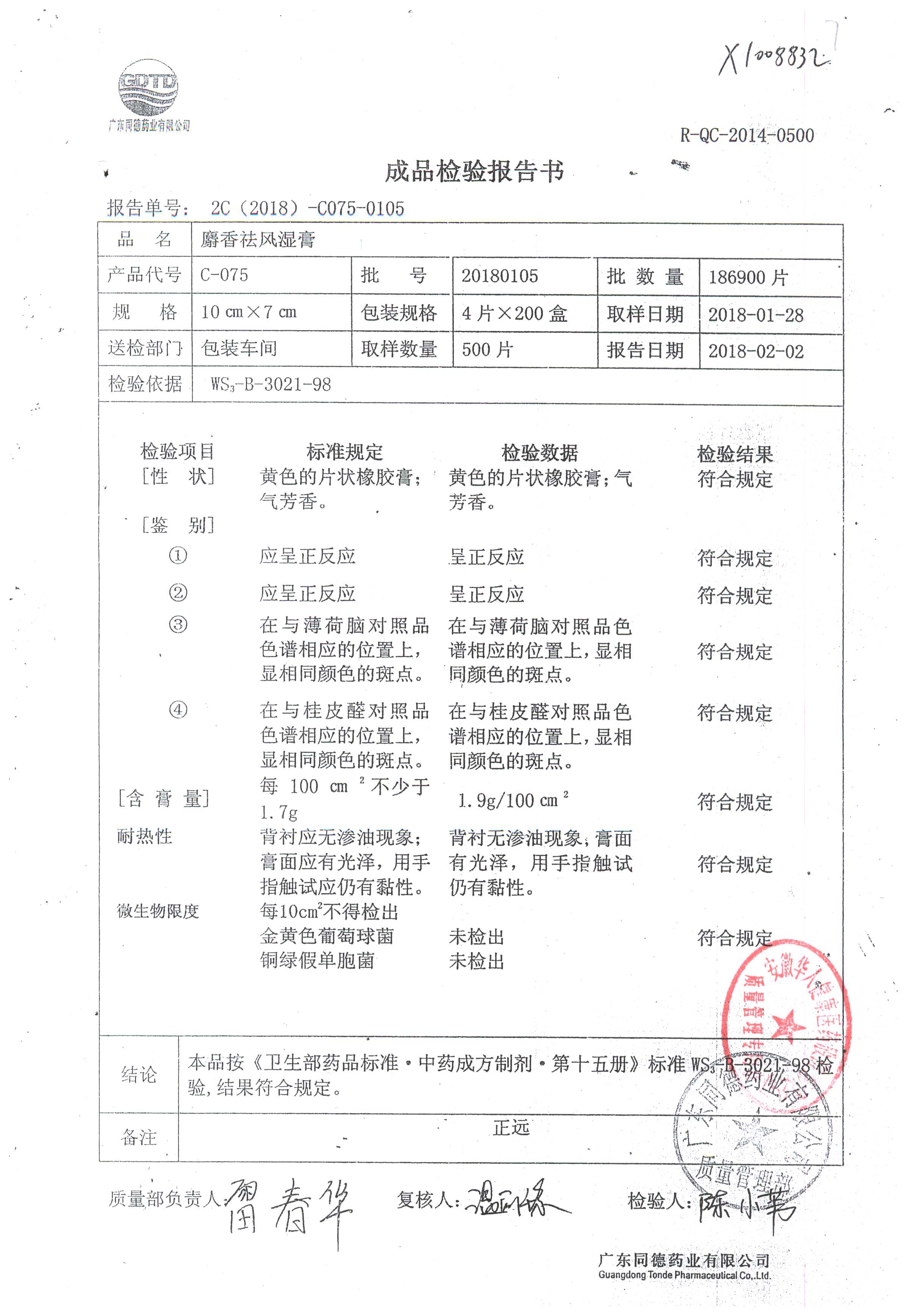 | 麝香祛風濕膏 | 10cm*7cm*4片 | 20181001 | 查看詳情 |